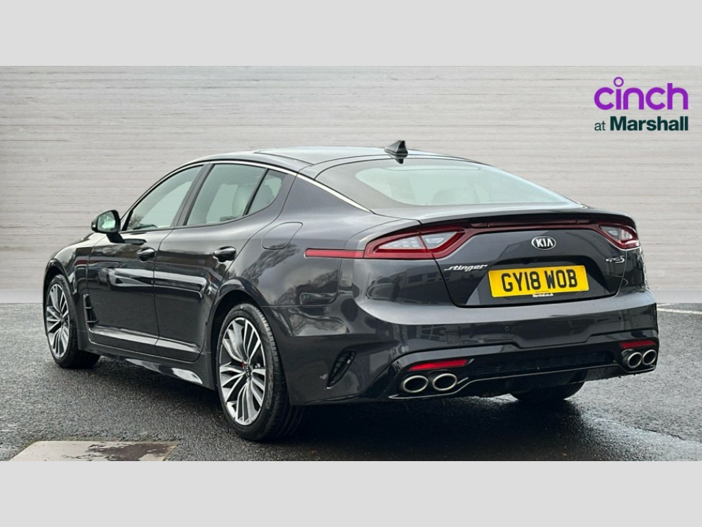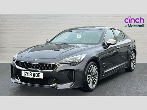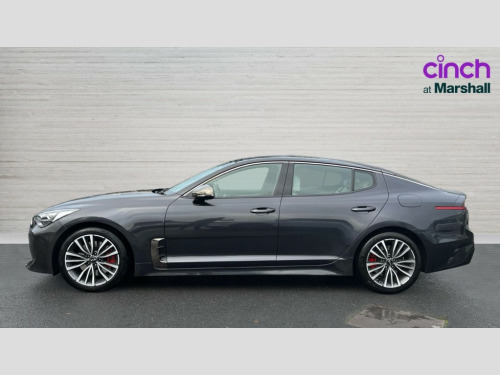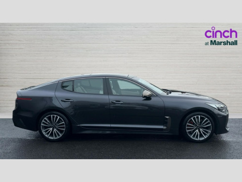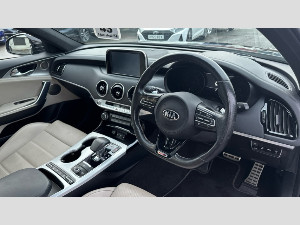 Kia Stinger 2.0 T-GDi GT-Line S 5dr Auto 8" touch screen sat nav with TMC, Adaptive cruise control, Apple car play/Android Auto, Around View Monitor, Attention assist, Blind spot monitoring with rear cross traffic alert, Bluetooth audio streaming with voice recognition, Digital clock, Drive mode selector, Electric power steering, Emergency stop signalling system, Engine start/stop button, European mapping upgrade, External temperature gauge, Front and rear parking sensors, Gear selection indicator, Head up Display, Lane keep assist, Low washer fluid warning light, One touch facility for sunroof, Power tailgate, Rear parking sensor, Satellite navigation with rear view parking camera, Speed limiter, Supervision cluster with 7" TFT display, Tomtom connected services, Trip computer, Wireless Smartphone charger, Limited slip differential, DAB Radio with MP3, Harman/Kardon Premium sound system with 15 Speakers + subwoofer and amplifier, Rear USB port, Steering wheel mounted controls, USB and auxiliary socket, Auto dimming rear view mirror, Automatic headlight levelling, Automatic headlights, Body colour bumpers, Body colour door handles, Body colour side sill mouldings, Chrome door mirrors, Chrome roof line trim, Dark chrome grille surround, Driver's door mirror memory, Driver's side wide angle mirror, Electric adjustable/heated/folding door mirrors, Exterior grab door handles, Front and rear electric windows, Front drivers side windows/one touch up/down, Front fog lights, Heated rear window, High beam assist, LED daytime running lights, LED Headlights, LED indicators in door mirrors, LED rear lights, Privacy glass, Puddle lights, Quad tailpipes, Rain sensing front wipers, Rear wash/wipe, Shark fin roof aerial, Tinted glass, UV-reducing solar glass, Welcome home function, Windscreen wiper de-icer, 12V power points in front + rear centre consoles, 4 way electrically adjustable lumbar support for drivers seat, 60/40 split/folding 2nd row of seats, 8 way electric adjust front seats with memory, 8 way electrically adjustable passenger seat with height, reach,till and backrest, Alloy pedals, Centre console storage box, Cupholders in centre console, Door storage trays, Driver seat memory function, Driver/front passenger seat height adjustment, Driver/passenger sunvisors with illuminated vanity mirrors, Dual zone automatic air conditioning, Front door courtesy lamps, Front map light with sunglasses case, Front seat and rear pockets, Front/rear centre armrests, Gearshift paddles, Glovebox illumination, Heated front seats, Heated outer rear seats, Heated steering wheel, Height adjustable headrests, ISOFIX top tethers and lower anchor points, Leather and chrome trimmed gearshift, Leather trimmed door armrests, Leather trimmed steering wheel, Leather upholstery, LED interior illumination, Luggage area lamp, Luggage compartment cover, Luggage net with hooks, Rear armrests with cupholder, Rear assist grips, Rear coat hooks, Reclining/sliding front seat, Satin chrome interior door handles, Stainless Steel Scuff Plates, Suede cloth headlining, Tilt/telescopic adjustable steering wheel, Ventilated front seats, Ventilation ducts to rear compartment, 3 point seatbelts on all seats, ABS/EBD, Automatic unlocking of doors in case of impact, Autonomous emergency braking, Curtain airbags, Driver/Front Passenger airbags, Drivers knee airbag, Dual front airbags, Electronic parking brake, ESC + BAS + VSM + HAC, Fasten seatbelt reminder, Front passenger airbag deactivation, Height adjustable front seatbelts, Rear door child safety locks, Traction control, Twin front and side airbags, Tyre pressure monitoring system, Alarm system, Deadlocks, Immobiliser, Locking wheel nuts, Smart key entry system, Speed sensitive auto door locking, Aluminium finish to centre console, Leather dashboard, 18" Alloy wheels, Tyre mobility system