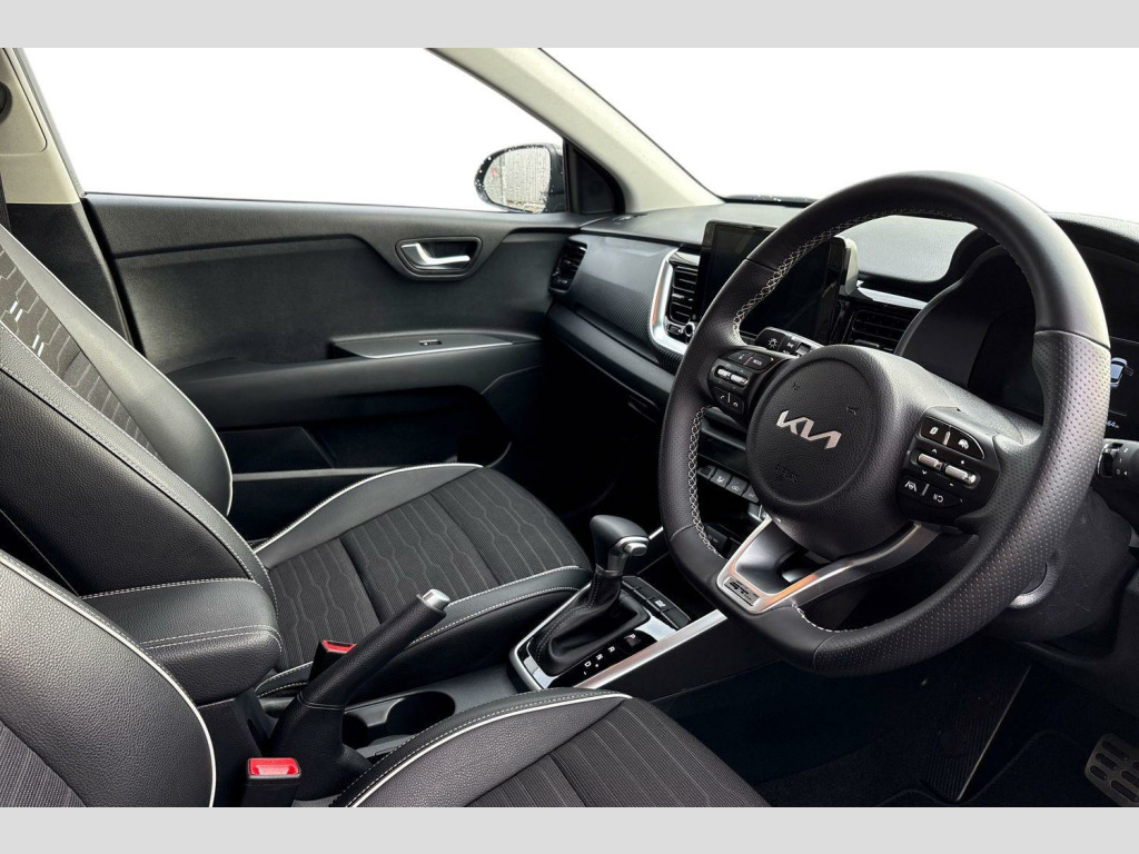 The Kia Stonic T GDi GT Line stands out with its impressive fuel economy, achieving up to 47 miles per gallon, which is a significant advantage over many other vehicles in its class. Furthermore, its low CO2 emissions and low insurance group rating contribute to lower running costs, making it an economical choice for everyday driving. This combination of efficiency, affordability, and desirable features makes this Stonic a compelling option. 17' GT-Line alloy wheels, Black electric folding door mirrors, 8' Touchscreen navigation featuring Free 7-year Kia Connect services, Privacy glass (rear windows & tailgate), GT-Line black cloth and faux leather upholstery, LED Bi-function projection headlights (Multi MFR), LED front fog lights, Alloy pedals, Reversing camera, Automatic air conditioning, GT-Line body-kit, Gloss black door mirrors with matt black lower housing, Black rear spoiler with high-mounted brake light, Chrome side window trim, LED rear combination lights, D-cut perforated leather trimmed steering wheel, Black high gloss centre fascia, Free 7-year Kia Connect services, Drive mode select (DCT only), Apple CarPlay & Android Auto via connectivity, Air conditioning, Forward collision-avoidance assist (FCA) (city/pedestrian/cyclist), Roof rails, Rear parking sensors, LED daytime running lights, Bi-function projection headlights with static bending, Cruise control & speed limiter, High gloss black & satin radiator grille, Electrically adjustable heated and folding door mirrors with LED indicator lights, Black and body coloured bumpers, Black side sills door garnish and wheel arch trims, Front & rear silver skid plates, Front fog lights, Leather trimmed steering wheel and gearshift, 6-Speaker audio system, Bluetooth® with music streaming, Apple CarPlay with voice control, Android Auto with voice control, 4.2' Supervision colour cluster display, Front USB, Rear USB charging port, Steering wheel mounted controls, All-round electric windows (with driver's auto down function)