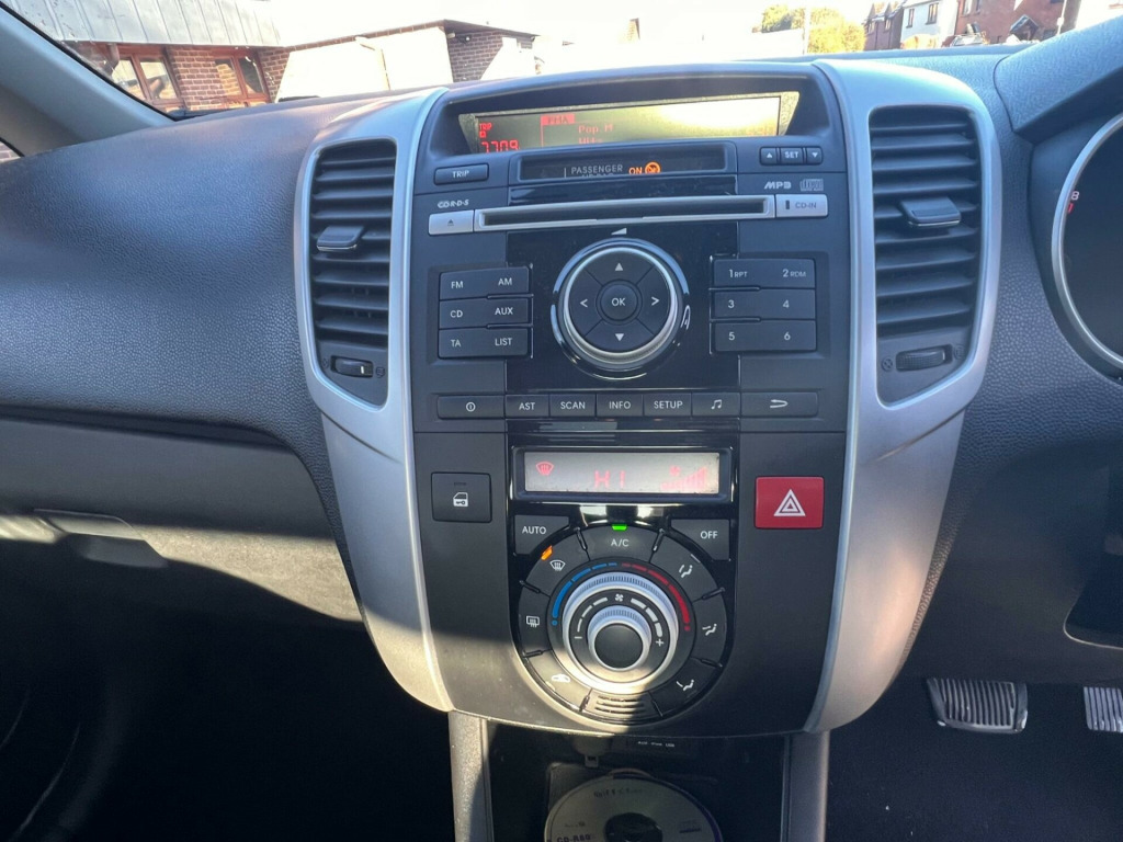 This Kia Venga 3 from 2011 offers a superb ownership history, having been looked after by only two previous owners. Powered by a 1.6 litre petrol engine, this model comes equipped with a desirable panoramic electric sunroof that opens up the cabin, alongside climate control for your comfort. It also features a rheostat for lighting adjustment and twin front airbags for safety, with a useful kick down alert to help you monitor fuel efficiency.The Venga 3 stands out with its generous boot space, providing ample room for all your needs. Furthermore, its placement in a low insurance group indicates that running costs are kept impressively low compared to similar vehicles. This combination of practicality, comfort, and economical ownership makes this Venga a compelling choice. v power socket - front centre console x2, 12v power socket - luggage compartment, 16in alloy wheels, 3 x passenger assist grips, 4 speed ventilation fan, 6 airbags - twin front - front side and full length curtain, 6-speaker system, abs - anti lock braking system, airbags - curtain, airbags - twin front, alarm system, all-round height adjustable headrests, armrest - rear centre, bas - brake assist system, body coloured bumpers, body coloured door mirrors, body coloured exterior door handles, body coloured rear garnish, centre fascia - metallic, child safety rear door locks, climate control, deadlocks, drivers seat height adjuster, esc - electronic stability control, electric windows - front and rear, electrically adjustable and heated door mirrors, engine immobiliser, external temperature display, front fog lights, front passenger airbag cut off switch, front seatback pockets, glovebox, head rests - front active, headlight levelling system, high mounted brake light, hill-start assist control - hac, isofix child seat top tethers and anchor fixings, impact sensing auto door unlocking, interior light delay out function, kick down alert - fuel efficiency feature, leather trimmed gear shift, leather trimmed steering wheel, locking wheel nuts, luggage area light, luggage compartment - hooks, luggage compartment - load cover, luggage under floor tray, metallic parking brake button - interior door handle and air vent knob, motor driven power steering - mdps, panoramic electric sunroof, privacy glass - rear windows and tailgate, rds radio with cd and mp3, remote central locking with folding key, rheostat, seats - 60/40 split folding and dive - sliding and double reclining, steering wheel mounted audio controls, sunvisors with vanity mirrors, temporary spare wheel, tilt and telescopic steering wheel adjustment, tinted glass, usb and aux ports, ipod connectivity, cloth- black