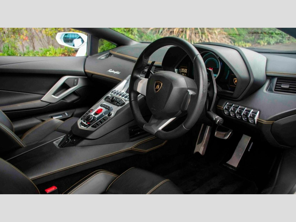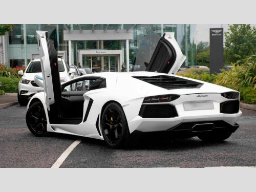 **Great finance packages available** Glass Engine Cover, Suspension Lift, Branding Package, 19/20 Alloys. Beautiful 2011/61 Aventador 6.5 V12 LP 700-4 ISR 4WD kept and maintained fastidiously. Full Lamborghini Service History - last done at HR Owen London 1000miles ago, 3 Former Keepers, HPI Clear, ULEZ Compliant. Current Mileage: 22,853. Bianco Isis with Nero Ade Leather Interior finished with Giallo Stitching. Factory Options: 19 Front & 20 Rear Iperione Alloy Wheels - Shiny Black Rims, Transparent Glass Engine Cover, Suspension Lift, Lamborghini Interior Branding Package, Vehicle Tracking System - VTS, Yellow Calipers - Black, Embroidered Logo on Headrest, Ceramic Brakes, Optional Stitching on Steering Wheel Multi Function Heated Steering Wheel in Smooth Leather, Compass, Bonnet Air Vents in Shiny Black, Lamborghini Navigation, Adaptive Bi-Xenon Headlights, Ambient Lighting, Limited Slip Differential, Sun Protection Glass, Cruise Control, Bluetooth, Tyre Pressure Display, Keyless Go, Extended Leather to Dash and Door Cards, LED Rear Lamps with Dynamic Turn Signal, Climate Control, Multi Functional Steering Wheel, Electric Lumbar Support, Auto Lights & Wipers, iPod/Usb interface. Please feel free to contact us if you have any questions or would like to arrange a test drive. We are an AutoGuard approved dealer, all of our cars undergo an 82 point check and are prepared cosmetically and mechanically to premium industry standards. Every car comes with a 3 month warranty for your peace of mind with the option of extending to a fully comprehensive AutoGaurd warranty for 12, 24 or 36 months. We strive to pay the best part exchange prices. Finance available with zero deposit.