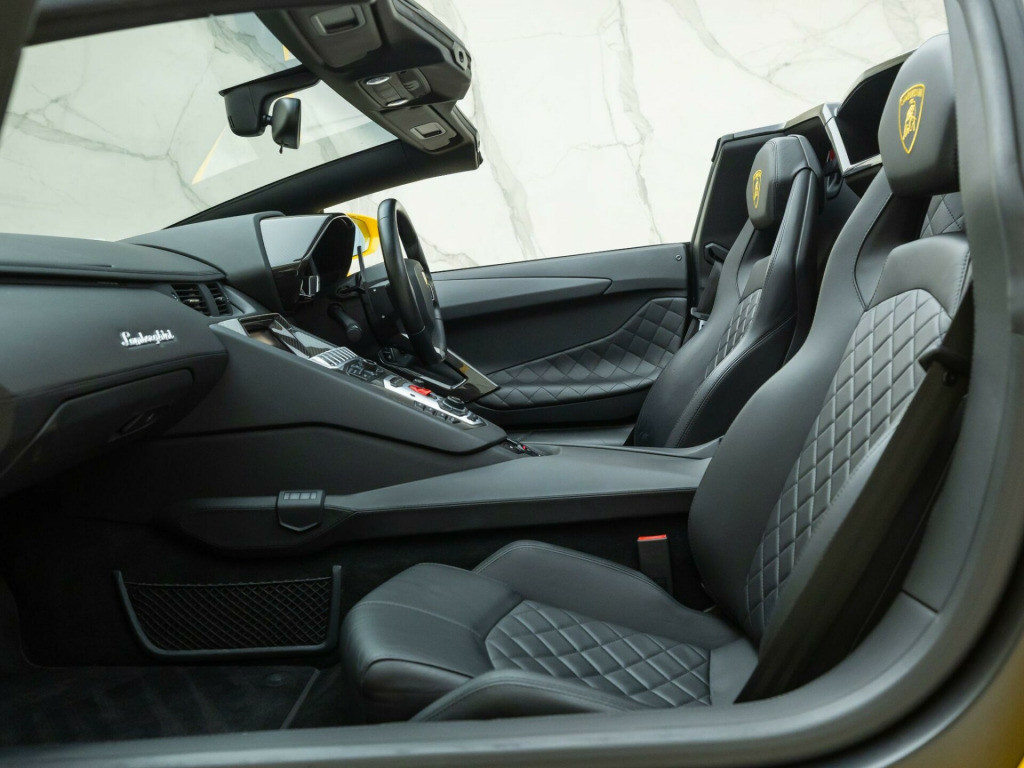Finished in 'New Giallo Orion' Pearlescent Paint with Nero Ade Leather - VAT Qualifying Example - Believed to be One of the Very Highest Spec Aventador Roadsters - Original List Price of £358,855 including £70K of Extras - Recently Serviced By Lamborghini and Extensive Documented Service History File - Supplied with Romans International Platinum Warranty - Paint Protection Film (PPF) Applied to Whole Car - UK SuppliedOptional Extras:20/21-Inch Dione Forged Wheels in High-Gloss BlackPearlescent Paint - New Giallo OrionFront Exterior Carbon Fibre Pack (Including: Front Splitter + Front Bumper Air Intake Frames + Bonnet Vents)Rear Exterior Carbon Fibre Pack (Including: Rear Diffuser + Air Vent Frames + Side Air Intake)Exterior Details in Carbon FibreHard Top in Visible Carbon FibreCarbon Fibre Engine Bay TrimCarbon Fibre Engine X-FrameCarbon Fibre T-Shaped Engine CoverInterior Carbon Fibre Package (Including: Door Sills + Door Handles + Centre Console + Instrument Cluster Frame)Transparent Engine BonnetSensonum Premium Sound SystemLamborghini Exhaust Sound UpgradePassive Suspension with Yellow Rear SpringFull Electric & Heated SeatsLamborghini Radio with DABPark Assist (Including: Front & Rear Sensors + Rear View Camera)HomelinkInterior Q-Citura on LeatherRear Bench & Rocker Covers in LeatherPillars in LeatherMultifunction Steering Wheel in Smooth LeatherTravel Package (Including: Cup Holder + Travel Net)Branding Package in Leather Including: Lamborghini Logo Embroidered on HeadrestsAd Personam Interior - Giallo Taurus Bulls Stitched into HeadrestsOptional StitchingYellow Brake CalipersPaint Protection Film (PPF) Applied to Whole CarStandard Features:Bluetooth Mobile Phone ConnectionCarbon Ceramic Braking SystemElectrically Adjustable & Folding MirrorsLifting SystemNavigation SystemTyre Pressure Monitoring System. 20/21-Inch Dione Forged Wheels in High-Gloss Black, Pearlescent Paint - New Giallo Orion, Front Exterior Carbon Fibre Pack (Including: Front Splitter + Front Bumper Air Intake Frames + Bonnet Vents), Rear Exterior Carbon Fibre Pack (Including: Rear Diffuser + Air Vent Frames + Side Air Intake), Exterior Details in Carbon Fibre, Hard Top in Visible Carbon Fibre, Carbon Fibre Engine Bay Trim, Carbon Fibre Engine X-Frame, Carbon Fibre T-Shaped Engine Cover, Interior Carbon Fibre Package (Including: Door Sills + Door Handles + Centre Console + Instrument Cluster Frame), Transparent Engine Bonnet, Sensonum Premium Sound System, Lamborghini Exhaust Sound Upgrade, Passive Suspension with Yellow Rear Spring, Full Electric & Heated Seats, Lamborghini Radio with DAB, Park Assist (Including: Front & Rear Sensors + Rear View Camera), Homelink, Interior Q-Citura on Leather, Rear Bench & Rocker Covers in Leather, Pillars in Leather, Multifunction Steering Wheel in Smooth Leather, Travel Package (Including: Cup Holder + Travel Net), Branding Package in Leather Including: Lamborghini Logo Embroidered on Headrests, Branding Package in Leather (Including: Lamborghini Logo Embroidered on Headrests), Ad Personam Interior - Giallo Taurus Bulls Stitched into Headrests, Optional Stitching, Yellow Brake Calipers, Paint Protection Film (PPF) Applied to Whole Car.