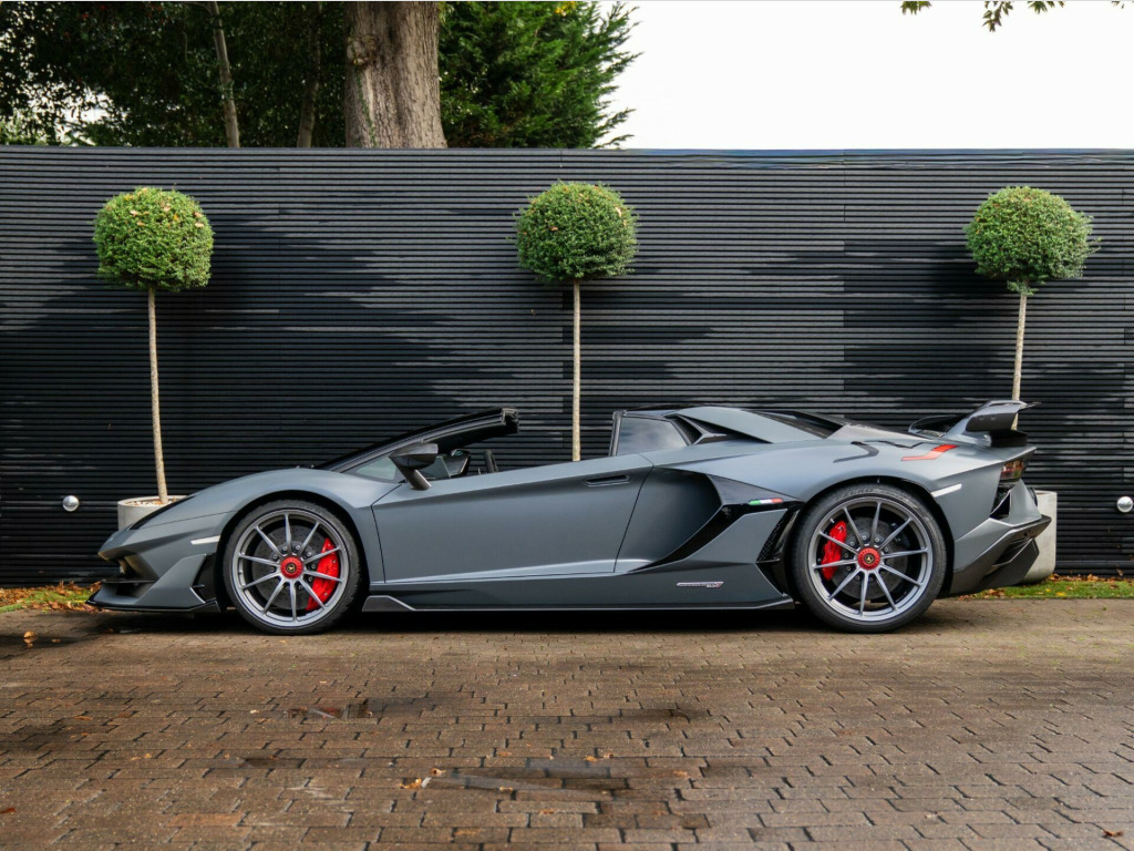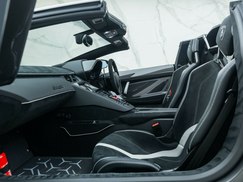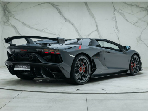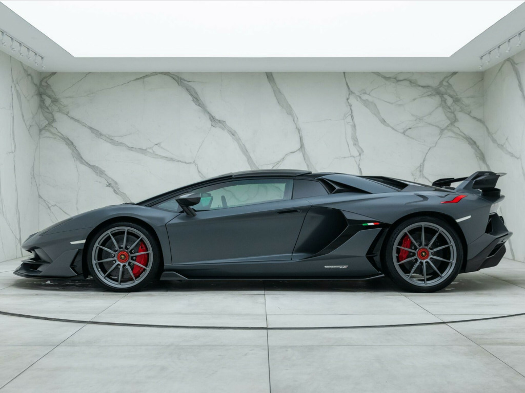 Finished in Ad Personam Grigio Telesto Pearl Effect Paint (£11,124) with Nero Cosmus Alcantara - Desirably Equipped with Style Package (£6,300) & Removable Hard Top in Carbon Fibre (£4,200) - Supplied with Romans International Platinum Warranty - Satin Paint Protection Film (PPF) Applied to Whole Car - UK SuppliedOptional Extras:20/21-Inch Nireo Forged Matt Titanium WheelsAd Personam Grigio Telesto Pearl Effect PaintStyle Package (Including: High-Gloss Black Exterior Components)Exterior Details in Shiny CarbonRemovable Hard Top in Visible Carbon FibreShiny Carbon Mirror HousingsShiny Carbon Rocker CoverVisible Carbon Fibre Wheel Cap CoversSensonum Premium Sound SystemRed Springs with Lifting SystemPark Assistance with Rear View Camera & Rear Parking SensorsTravel Package (Including: Cup Holder + Storage Beside Central Tunnel on Passenger’s Side + Net Behind Driver's Seat)Navigation & Infotainment System with DAB RadioVisibility & Light Package (Including: LED Kick Plate Lights + LED Footwell Lights + LED Light in Door Handles + Auto-Dimming Rear-View Mirror)Garage Door OpenerFire ExtinguisherMFSW Full AlcantaraColoured Footplate in AluminiumSVJ Contrast Cross StitchingBlack SV Logo StickerRed Central LockingRed Brake CalipersSatin Paint Protection Film (PPF) Applied to Whole CarStandard Features:4WD with Haldex Generation IVALA 2.0 (Activa Lamborghini Aerodynamica) with Aero-VectoringAluminium Front Bonnet + Fenders + DoorsCarbon Ceramic Brakes (CCB)Carbon Fibre Monocoque with Aluminium Front & Rear SubframesDrive Select Modes (Including: Strada + Sport + Corsa + EGO)Four-Wheel SteeringHeated Electrically Adjustable & Folding External MirrorsLDS (Lamborghini Dynamic Steering)Push-Rod Magneto-Rheologic Active Front & Rear Suspension. 20/21-Inch Nireo Forged Matt Titanium Wheels, Ad Personam Grigio Telesto Pearl Effect Paint, Style Package (Including: High-Gloss Black Exterior Components), Exterior Details in Shiny Carbon, Removable Hard Top in Visible Carbon Fibre, Shiny Carbon Mirror Housings, Shiny Carbon Rocker Cover, Visible Carbon Fibre Wheel Cap Covers, Sensonum Premium Sound System, Red Springs with Lifting System, Park Assistance with Rear View Camera & Rear Parking Sensors, Travel Package (Including: Cup Holder + Storage Beside Central Tunnel on Passenger’s Side + Net Behind Driver's Seat), Navigation & Infotainment System with DAB Radio, Visibility & Light Package (Including: LED Kick Plate Lights + LED Footwell Lights + LED Light in Door Handles + Auto-Dimming Rear-View Mirror), Garage Door Opener, Fire Extinguisher, MFSW Full Alcantara, Coloured Footplate in Aluminium, SVJ Contrast Cross Stitching, Black SV Logo Sticker, Red Central Locking, Red Brake Calipers, Satin Paint Protection Film (PPF) Applied to Whole Car.