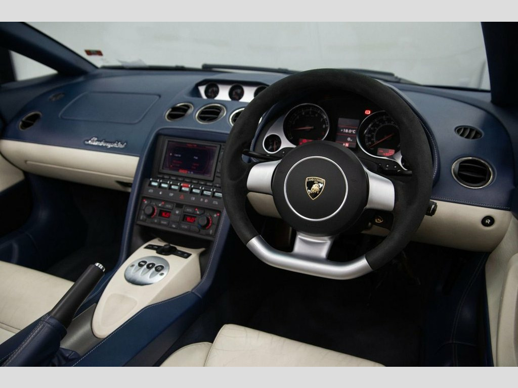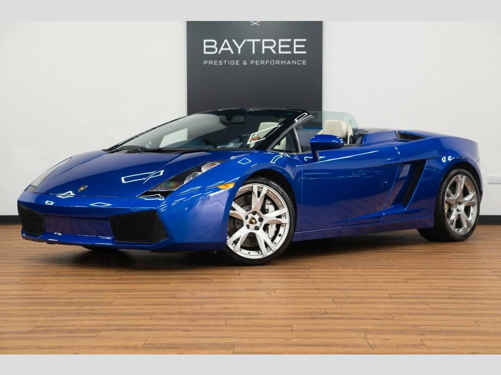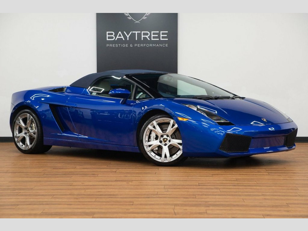 Baytree are delighted to offer for sale this exceptional November 2021 registered Lamborghini Gallardo 5.0 V10 Convertible, elegantly presented in Custom Colour - TVR Red Bull Blue with a sleek Dual Colour Interior of Blu Scylla & Bianco Polar. This car comes with a set of striking 20" Callisto Alloy Wheels. This vehicle has travelled just 43,000 miles. This Lamborghini boasts an impressive array of features, some of which include: Electric Operated and Heated Front Seats, Lifting System, Rear View Camera, Sports package, SatNav, Branding Package, On Board Computer, plus much more. For further details or to schedule a viewing, don't hesitate to contact us. Leather- Avorio Lilium, Sports Package, Lifting System, On board computer, Heated Wing Mirrors, Rear view camera, SatNav, Branding Package, Interior Leather Package I - Small, Coloured brake calipers, Electric operated & Heated Front Sea, Heated Seats, Alloy Wheels - Callisto Rims, Leather- Dual colour Leather, Leather- Blu Scylla, Manual Seats with Electric backrest
