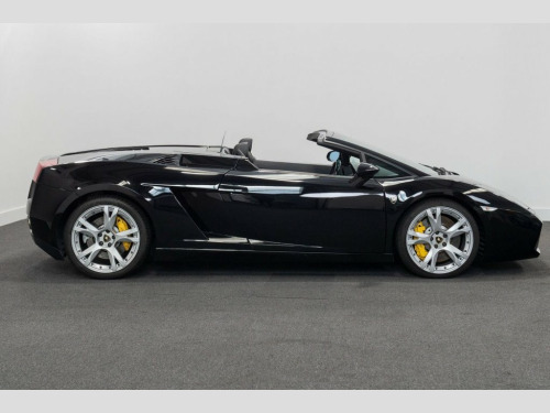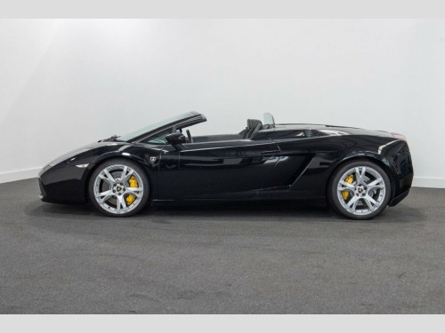 2006, Lamborghini Gallardo Spyder V10 4WD Egear, Finished in Nero Serapis metallic paintwork with black interior, Showing 40220 miles with main dealer and Lamborghini specialist service history, Specification includes, Electrically operated heated black leather seats with contrasting yellow stitching and logo on headrests, Dual zone climate control, DVD, 6x Cd multi changer, Ipod connection, Electric folding door mirrors, Electric hood, Sport button, Xenon lights, Larrini sports cats, 19" Calisto split rim alloy wheels with yellow brake calipers, Electric windows, Electric door mirrors, comprehensive Lamborghini main dealer and Lamborghini specialist service history. Coloured brake calipers, TV reception, Calisto Silver rims with standard Tyres, Electric operated & Heated Front Sea, Heated Seats, Leather- Nero Perseus, Nero Serapis, SatNav, Paint- Metallic, Manual Seats with Electric backrest