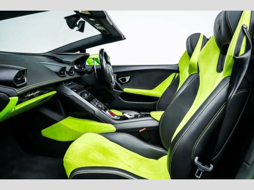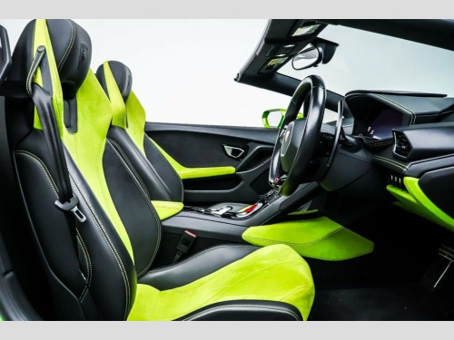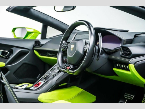 This Lamborghini Huracan comes with the following specification - Front Lift system | Fully Electric & Heated seats | Sports exhaust system | Bluetooth | Magneto Rheological suspension | Cruise control | Rear-View Camera | Front & Rear Park Assist | Style package | Windscreen frame in High gloss Black | DAB Radio | Branding package | Brake calipers in Green | 20" Giano wheels. 20in Alloy Wheels - Rims Giano High Glos, 20in Alloy Wheels - Rims Giano Silver, 3-points Seat Belts with Pre-tensioner-F, 4 Speakers - 2 Woofers and 2 Tweeters, Airbag - Front Dual Stage Driver, Airbag - Front Dual Stage Passenger, Alcantara Multilayer on Upper Dashboard , Autolock, Automatic Dual-Zone Air Conditioning Sys, Branding Package, Carbon Ceramic Brakes with Green Painted, Carbon Ceramic Brakes with Silver Painte, Collapsible Steering Column, Colour TFT Clima Display Showing Main In, Dark Tinted Glass in Windows and Windscr, Deformation Zones at Front and Rear with, Door Handles - Flush-mounted, Door Storage Compartments, Double Wishbone Independent Suspension w, Driving Dynamics