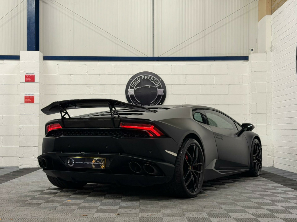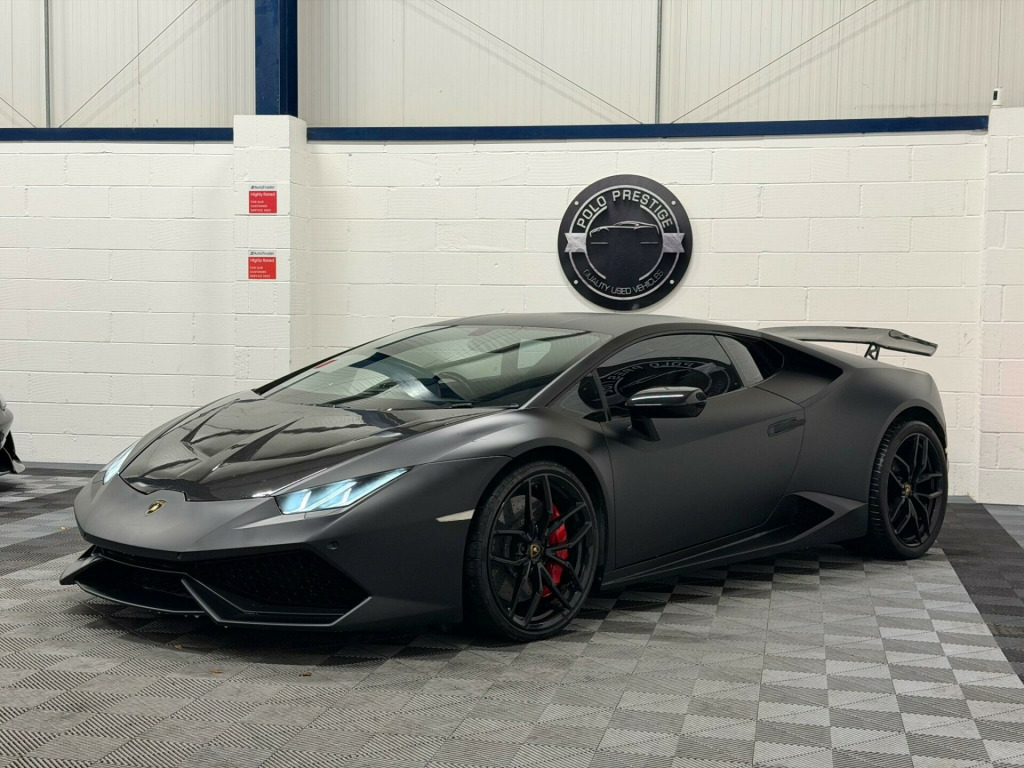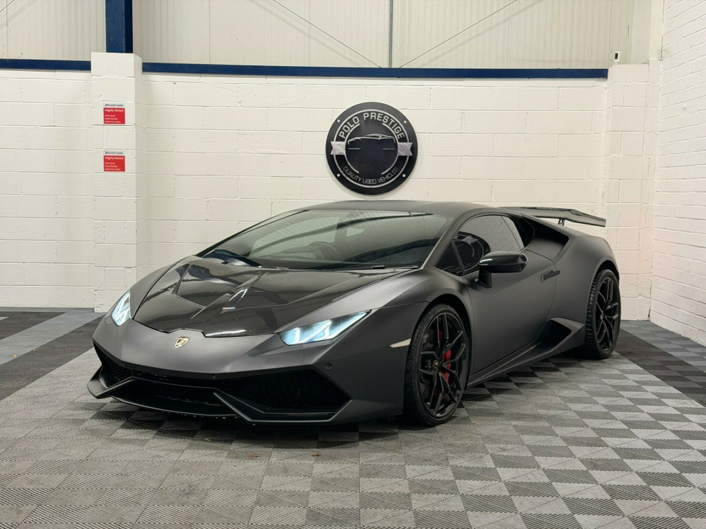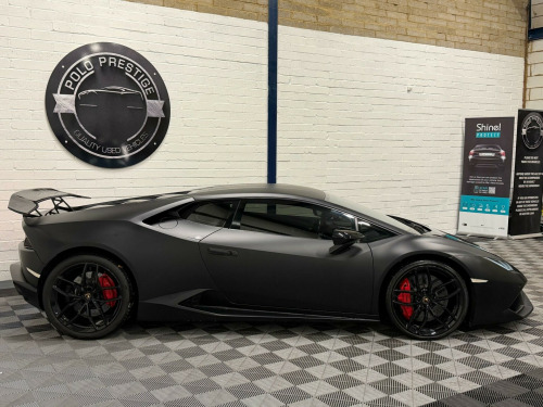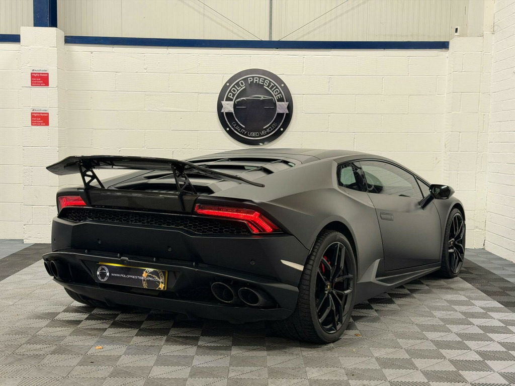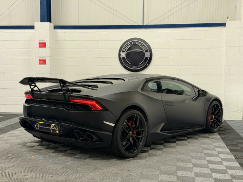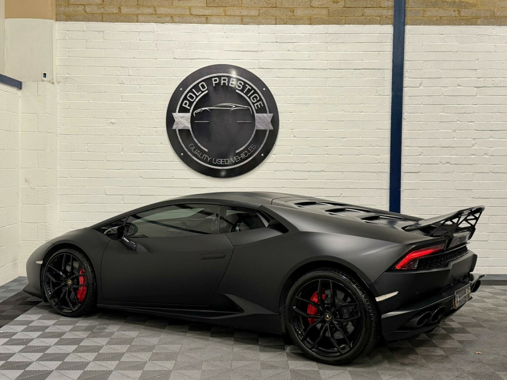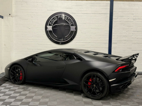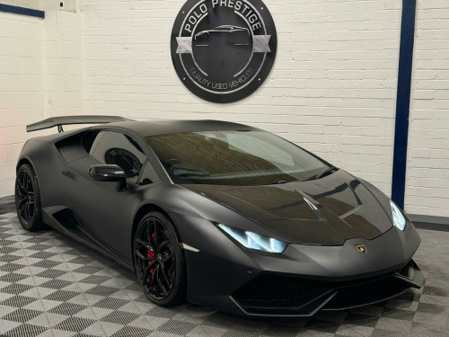 CAPRISTO EXHAUSTCARBON BONNET AND REAR SPOILERFULL SERVICE HISTORYSATIN WRAP (gloss black paint) This 2014 Lamborghini Huracan V10 LP 610-4 is a remarkable example of Italian engineering. Featuring a powerful 5.2 litre petrol engine and a sophisticated four wheel drive system, this model is presented in the LP 610-4 trim. It meets Euro 6 emission standards, reflecting its modern design. Notable features include advanced LED headlights for superior visibility and automatic air conditioning, also known as climate control, ensuring a comfortable cabin environment in all conditions.The performance of this Lamborghini Huracan is truly exceptional, capable of accelerating from 0 to 62 miles per hour in just 3.2 seconds. This impressive acceleration demonstrates its superior performance capabilities when compared to other vehicles in its class. The combination of its potent V10 engine, advanced drivetrain, and aerodynamic design makes it a standout choice for those seeking exhilarating driving dynamics and a truly engaging experience. in alloy wheels - rims giano silver, 3-points seat belts with pre-tensioner-force limiters and height adjustment, abs - anti-lock braking system, asr - anti slip regulation, active carbon filter, airbag - front dual stage driver, airbag - front dual stage passenger, airbag - head, airbag - thorax, alcantara multilayer on upper dashboard and upper central door panel, autolock, automatic air conditioning, brake calipers - silver painted, carbon-ceramic brake discs - internally ventilated and cross-drilled, collapsible steering column, dark tinted glass in windows and windscreen, daytime running lights - led, deformation zones at front and rear with integral aluminium alloy bumpers, dimming interior lights - led, door mirrors - body coloured, door mirrors - electrically adjustable-heated and folding, door storage compartments, double wishbone independent suspension with anti-roll bars on front and rear axles, ebd - electronic brake distribution, eps - electric power-assisted steering with variable steering ratio, esc - electronic stability control, electronic traction control, floor mats with nubuck edge, headlights - led, immobiliser, instrument cluster integrated 12.3in tft colour display, interior closed glove compartments in the dashboard and rear centre panel, lamborghini infotainment system, lamborghini warranty 4th year, launch control functions - thrust mode in corsa and race start in sport, leather dashboard and centre parts of the door panels, licence plate lights - led, radio - cd-dvd - mp3 compatibility, remote central locking, rooflining in technical fabric, seats - electrically adjustable backrest, seats - height adjustable driver, seats - height adjustable passenger, seats - sports, side impact bars in the door structure, side lights - led, speakers x4, steering wheel - leather, steering wheel - multifunction, storage compartment under front centre console, tpms - tyre pressure monitoring system, tail lights - led, tone on tone stitching, trip computer, tyre sealing compound with electric air compressor, usb and ipod-iphone connections, vanity mirrors in sun visors, wheel hub with coloured lamborghini crest, windows - electric front, windscreen washer system with 2 wiper speeds and adjustable intermittent wiper