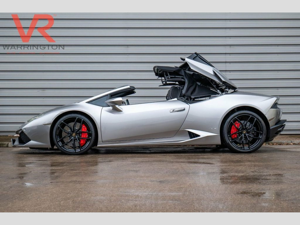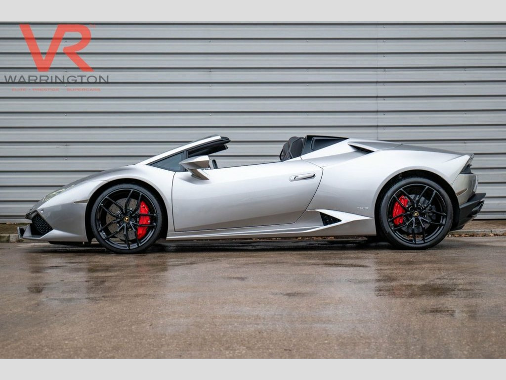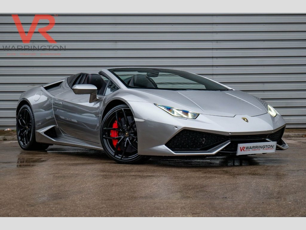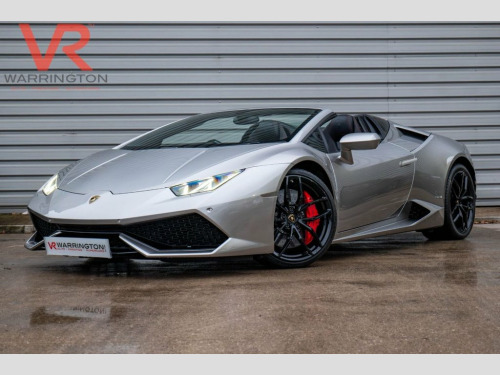 Here at VR EPS Warrington, we are pleased to offer the stunning 2017 Lamborghini Huracan 5.2 V10 LP 610-4 Spyder 2dr Petrol LDF 4WD finished in Grigio Antares with Uni-Colour Sportivo Nero Ade Leather and Alcantara. First registered in January 2017, this vehicle has 7 previous owners and comes with... 20" Mima Rims in Gloss Black | Fully Electric and Heated Seats | Magneto Rheological Suspension | Lifting System | Sports Exhaust | Bluetooth | Front and Rear Park Assist | Rear View Camera | Style Package | DAB | Navigation | Floor Mats with Leather Piping and Double Stitching | Roof Lining and A Pillars in Alcantara | Branding Package | MF Steering Wheel in Smooth Leather | Stitching in Rosso Alala | Callipers in Red | Also boasting Full Main Dealer Lamborghini Service History, this vehicle has had no expense spared; - New Front Shocks - Add personum colour at £15,000 - 4 New Tyres - New Rear Shocks - New Battery - New belt tensioner - New Driveshaft bolts - Full Major Service within 300 miles - Recent Full Clean Health Check at Lamborghini Manchester At VR EPS Warrington you can enjoy a buying experience like no other! You can either... Visit our Boutique showroom in Warrington Cheshire or order directly through our website and arrange delivery to your door. Or as most of our customers have done… Do both!! Our talented team of advisors are available to provide their knowledge and match you to your dream car. All our cars are supplied with two keys, a Bluetooth Preparation - Hands Free Profi, Lifting System and Magneto-Rheological S, Carbon Ceramic Brakes with Red Painted B, DAB - Digital Audio Broadcasting Tuner, Unicolour Leather - Nero Ade, Evo Sportivo Alcantara Unicolour - Nero , Front and Rear Parking Sensors and Rear , Rooflining and A-Pillars in Alcantara, Branding Package, Floor Mats with Leather Piping and Doubl, Multi Function Steering Wheel in Suede L, Style Package, Sport Exhaust System, 20in Alloy Wheels - Rims Mimas Forged Hi, 20in Alloy Wheels - Rims Giano Silver, 3-points Seat Belts with Pre-tensioner-F, 4 Speakers - 2 Woofers and 2 Tweeters, Airbag - Front Dual Stage Driver, Airbag - Front Dual Stage Passenger, Alcantara