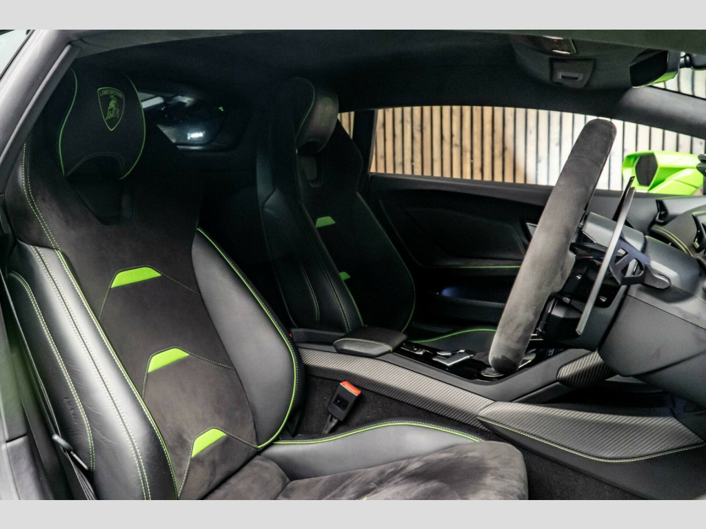 This 2019 Lamborghini Huracan V10 LP 640-4 EVO is a remarkable example of Italian engineering. Powered by a potent 5.2 litre petrol engine and featuring a sophisticated four wheel drive system, this Euro 6 compliant supercar offers exhilarating performance. The LP 640-4 EVO trim level ensures you experience the pinnacle of the Huracan's capabilities, making it a truly special vehicle.The Huracan V10 LP 640-4 EVO stands out with its impressive acceleration, achieving 0-62mph in a mere 2.9 seconds. This rapid acceleration demonstrates its superior performance compared to many other vehicles in its class, offering a driving experience that is both thrilling and precise. Its advanced engineering and design contribute to its exceptional road presence and dynamic handling.. 20in Alloy Wheels - Rims Giano Silver, ABS - Anti-lock Braking System, Airbag - Driver, Airbag - Passenger, Brake Calipers - Silver Painted, Branding Package, Electromechanical Power Steering, Multifunction Steering Wheel in Smooth Leather, Roof Lining and A-Pillars in Alcantara, Windows - Electric Front, Carbon Skin Package, Roof lining and A-pillars in Alcantara, Multifunctional steering wheel in Alcantara, Optional stitching on steering wheel, Rims Aesir diamond cut 8.5J x 20 front, 11J x 20 rear, CCB Brake calipers in black, Transparent Engine Bonnet, Electro-chromatic exterior mirrors, Style Package - High Gloss Black, Lifting system with Magneto-rheologic suspension, Digital radio reception (DAB), Ambient Light package, Rear View Camera, Front and rear parking sensors.
