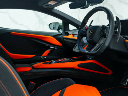 Finished in Ad Personam 'Verde Turbine' Tecnica Matt Paint (£13,284) with Nero Ade & Arancio Dryope Sportiva Trim - Lamborghini Maintenance Package until May 2029 - Lamborghini Manufacturer's Warranty until May 2028 - Satin Paint Protection Film (PPF) Applied to Whole Car - UK SuppliedOptional Extras:21/22-Inch Altanero Shiny Black Forged Alloy WheelsAd Personam 'Verde Turbine' Tecnica Matt Paint High Gloss Black Style PackagePassenger DisplayFully Electric & Heated SeatsRear View CameraSurround Assistance Pack (Including: Blind Spot Detection + Front Intersection Assist + Side Assist + Rear Cross Traffic Alert)Highway Assistant - Adaptive Cruise ControlSteering Wheel Carbon Package Leather (Including: Steering Wheel in Carbon with Leather Sides + Gearshift Paddles in Matt Carbon)Nero Ade & Arancio Dryope Sportiva TrimQ-Citura on Roof & Sportiva Door PanelsEmbroidered Lamborghini Shield on HeadrestsInverted StitchingFloor Mats with Leather Border & Double StitchingCarbon Wheel CapsTitanium Engine GridShiny Black Front Bumper with Body Colour Bocca NeraWindscreen Frame of Front Bonnet in Shiny BlackEngine Frame Inserts of Cofango in Shiny BlackLamborghini Rear Logo In Shiny BlackExhaust Tailpipes In Matt BlackArancio CCB Brake CalipersTitanium Wheel BoltsSatin Paint Protection Film (PPF) Applied to Whole CarStandard Features:Active Aero SpoilerCarbon Ceramic BrakesCarbon Fibre Monocoque - Extending it All the Way to the Front EndDigital InterfaceExposed Engine BayFront Axle Driven by Electric MotorsHuman Machine Interface (HMI)Lamborghini Integrated Vehicle Dynamics (LDVI) 2.0Suspension Lifter. 21/22-Inch Altanero Shiny Black Forged Alloy Wheels, Ad Personam Verde Turbine Tecnica Matt Paint, High Gloss Black Style Package, Passenger Display, Fully Electric & Heated Seats, Rear View Camera, Surround Assistance Pack (Including: Blind Spot Detection + Front Intersection Assist + Side Assist + Rear Cross Traffic Alert), Highway Assistant - Adaptive Cruise Control, Steering Wheel Carbon Package Leather (Including: Steering Wheel in Carbon with Leather Sides + Gearshift Paddles in Matt Carbon), Nero Ade & Arancio Dryope Sportiva Trim, Q-Citura on Roof & Sportiva Door Panels, Embroidered Lamborghini Shield on Headrests, Inverted Stitching, Floor Mats with Leather Border & Double Stitching, Carbon Wheel Caps, Titanium Engine Grid, Shiny Black Front Bumper with Body Colour Bocca Nera, Windscreen Frame of Front Bonnet in Shiny Black, Engine Frame Inserts of Cofango in Shiny Black, Lamborghini Rear Logo In Shiny Black, Exhaust Tailpipes In Matt Black, Arancio CCB Brake Calipers, Titanium Wheel Bolts, Satin Paint Protection Film (PPF) Applied to Whole Car.