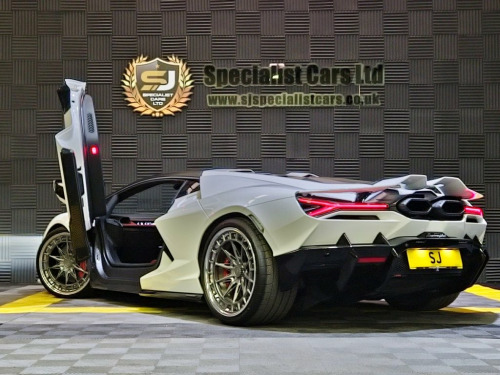 325k plus V A T Ex Mat Armstrongs vehicle, please watch YouTube videos for full information and transparency. Fully HPI clear 2024 74 Lamborghini Revuelto which has covered 4,300 miles of which 1,000 we have covered personally. The car drives absolutely faultless and has no issues whatsoever. All parts fitted were purchased directly through Lamborghini. On completion of repairs the car was returned to Lamborghini where the car underwent a full check and had all latest software updates carried out. In summary the rebuild was Carried out to an exceptional standard with just under 200k spent on genuine new Lamborghini parts. During the rebuild process a few subtle modifications were carried out, firstly the catalytic converters were removed in order to greatly enhance the exhaust note and give it a slight BHP increase. (Original catalytic converters come with the vehicle). Three piece Custom alloy wheels and finally a vented custom bonnet. Alongside this the car also has: front axle lift, passenger display, apple car play, carbon interior, exterior gloss black Pack and adaptive cruise control. Car also comes with all keys, original car cover and wall mounted charging port. As mentioned the car is fully HPI clear and the full Repair has been fully documented and filmed. This is a rare opportunity to acquire probably the most famous Revuelto in the world at a very sensible price. All usual dealer facilities available, please contact for more information. 20in Front and 21in Rear Alloy Wheels - , Airbags, Brake Calipers - CCB - Nero Opaco, Carbon Ceramic Brakes, EPS - Electric Power-Assisted Steering, ESC - Electronic Stability Control, Engine Grid - Matt Black, Engine Manifold - Alu Matt Black, Floor Mats - Match to Basic Colour, Floor Mats with Nubuk Piping and Tone on, Front Lifting System, Lamborghini Warranty 4th Year, Maintenance Pack - 5 Years, Seat Belts in Black, Standard ADAS Package, Standard Rim Bolts, Steering Wheel - Full Leather, Wheel Cap - Standard, Windows - Electric Front
