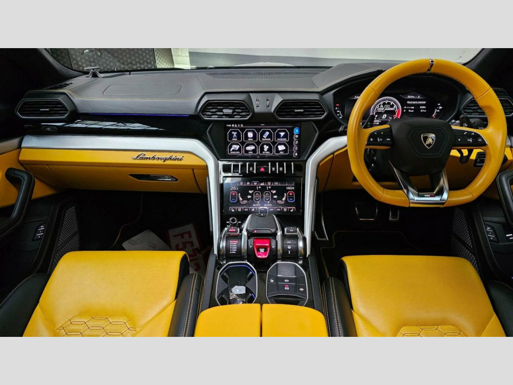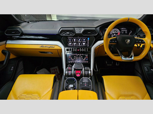 Lamborghini Urus 4.0 V8 BiTurbo Auto 4WD, STUNNING 1 OWNER URUS WITH FULL LAMBORGHINI SERVICE HISTORY. WITH A RECENT SERVICE!, FULL URBAN NERO KIT WITH 24†ALLOYS AND CARBON BONNET!, HUGE FACTORY SPEC, Adas pack with top view camera , Heads up display , Massage seats , Heated/cooled seats , Bang and Olufsen sound , Panoramic roof , Ambient lighting , Contrasting yellow interior, brake callipers finished in yellow , Heated steering wheel , Side steps , Tracker , Drives like new.