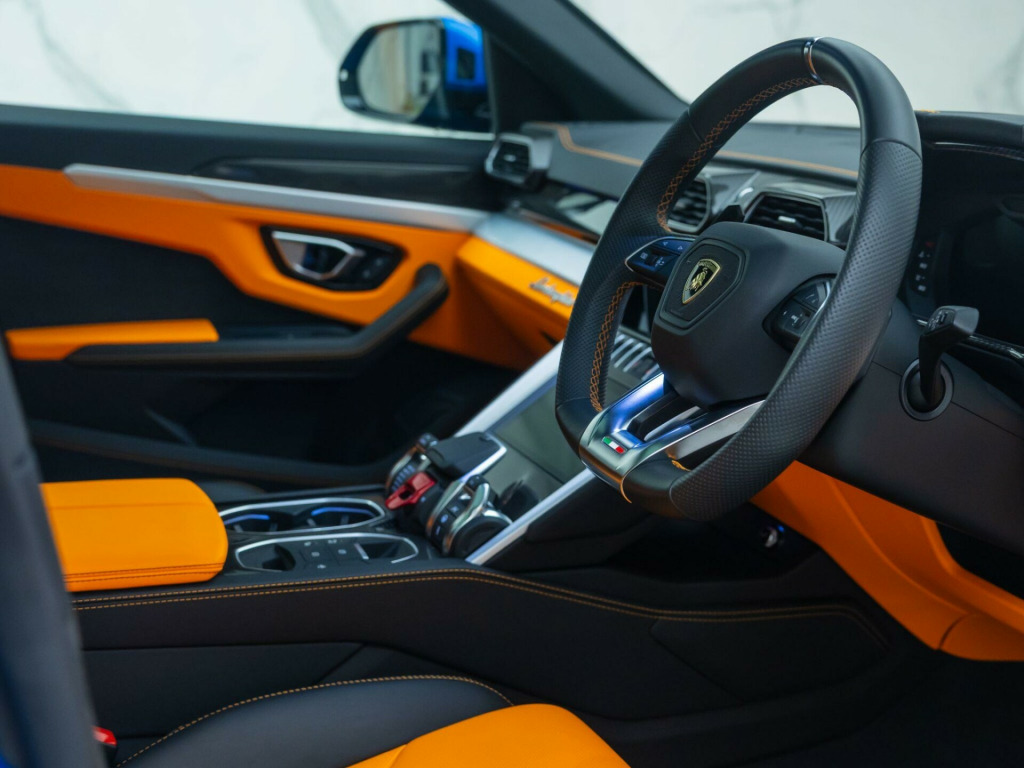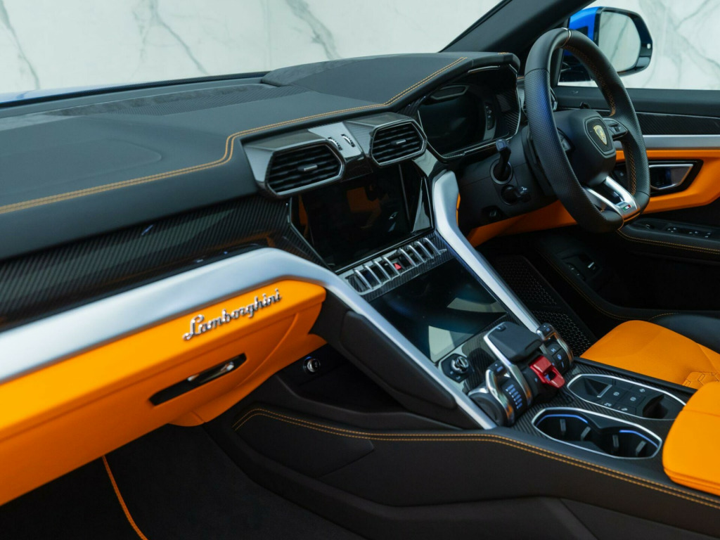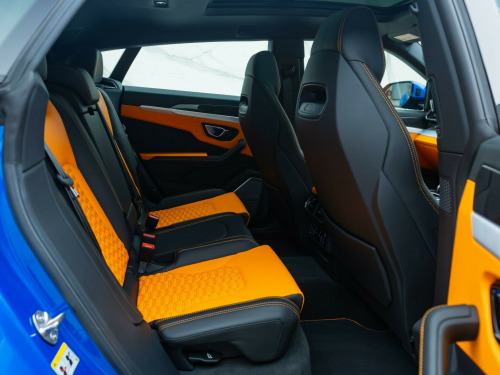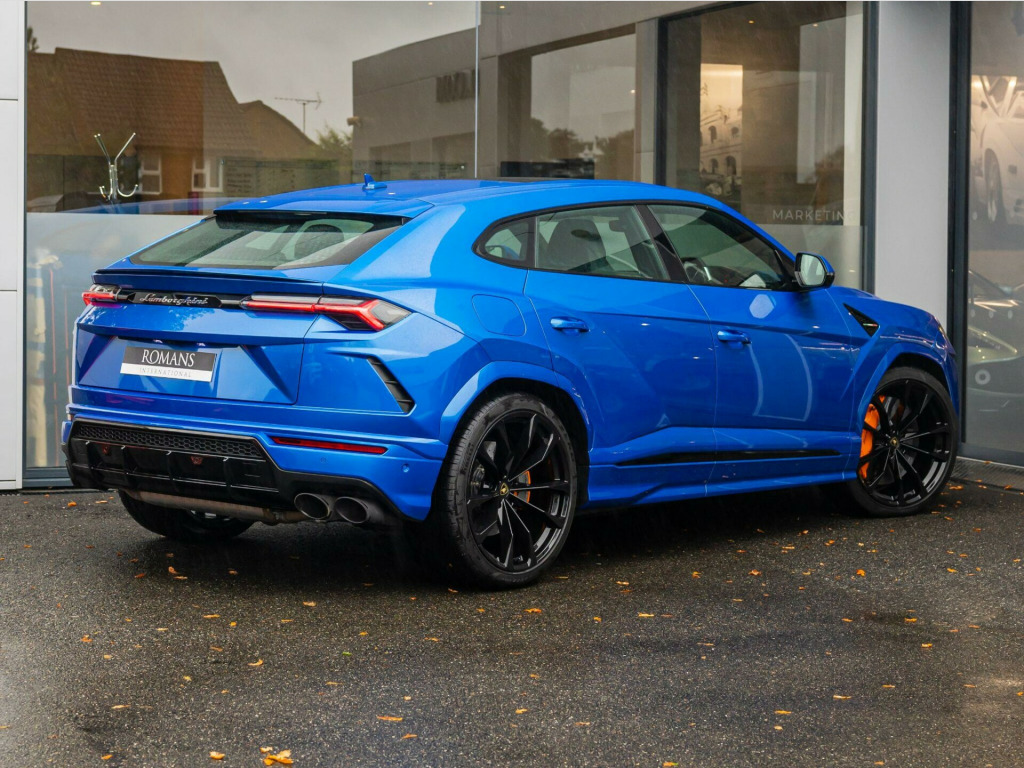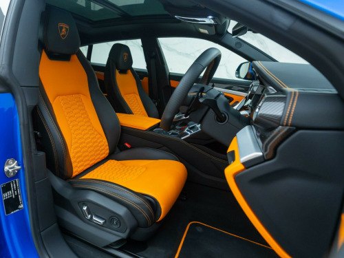 Finished in Blu Eleos Metallic Paint with Arancio Leonis & Nero Ade Bicolour Sportivo Leather - 1 Owner From New - Desirably Equipped with Full ADAS Package & Big Interior Carbon Package - Full Lamborghini Service History - Supplied with Romans International Platinum Warranty - UK SuppliedOptional Extras:23-Inch Taigete Shiny Black Alloy WheelsBlu Eleos Metallic PaintBody Colour Style Package (Including: Lower Area of Front & Rear Bumper + Under-door Moulding + Wheel Arches)Full ADAS Package (Including: Urban Road Assistance Pack + Highway Assistance Pack + Head-Up Display + Park Assistance Pack with Remote Park Assist)Advanced 3D Bang & Olufsen Sound SystemBig Interior Carbon Package (Including: Upper Dashboard Trim + Upper Door Panel Trim + Instrument Cluster + Air Vents on Dashboard and Tunnel + Front Centre Console)Q-Citura Interior on LeatherSliding Panoramic RoofFull Electric Front Seats with Ventilation and MassageLamborghini ANIMA with Off-Road ModesHeated Leather Multi-Function Steering Wheel with Perforated Leather InsertsAmbient Light PackageWashing Package (Including: Washers for Windscreen + Headlamps + Rear View Camera)Arancio Leonis & Nero Ade Bicolour Sportivo Leather InteriorUpper Leather PackageEmbroidered Lamborghini Shield on HeadrestsOptional StitchingContrast Stitching on Steering WheelFloor Mats with Leather Piping and Double StitchingMatt Black Exhaust TailpipesOrange Brake CalipersStandard Features:3 TFT Screens (Instruments + Infotainment + Comfort)4-Wheel SteeringActive TorqueVectoringAlcantara HeadliningCarbon Ceramic BrakesElectronic Air SuspensionLamborghini Infotainment System III (LIS III)Lamborghini Smartphone Interface (Apply CarPlay/Android Auto)Permanent 4-Wheel DriveRear Wheel SteeringSoft Close DoorsVirtual Keyboard Feature + Handwriting Recognition. 23-Inch Taigete Shiny Black Alloy Wheels, Blu Eleos Metallic Paint, Body Colour Style Package (Including: Lower Area of Front & Rear Bumper + Under-door Moulding + Wheel Arches), Full ADAS Package (Including: Urban Road Assistance Pack + Highway Assistance Pack + Head-Up Display + Park Assistance Pack with Remote Park Assist), Advanced 3D Bang & Olufsen Sound System, Big Interior Carbon Package, Q-Citura Interior on Leather, Sliding Panoramic Roof, Full Electric Front Seats with Ventilation and Massage, Lamborghini ANIMA with Off-Road Modes, Heated Leather Multi-Function Steering Wheel with Perforated Leather Inserts, Ambient Light Package, Washing Package (Including: Washers for Windscreen + Headlamps + Rear View Camera), Arancio Leonis & Nero Ade Bicolour Sportivo Leather Interior, Upper Leather Package, Embroidered Lamborghini Shield on Headrests, Optional Stitching, Contrast Stitching on Steering Wheel, Floor Mats with Leather Piping and Double Stitching, Matt Black Exhaust Tailpipes, Orange Brake Calipers.