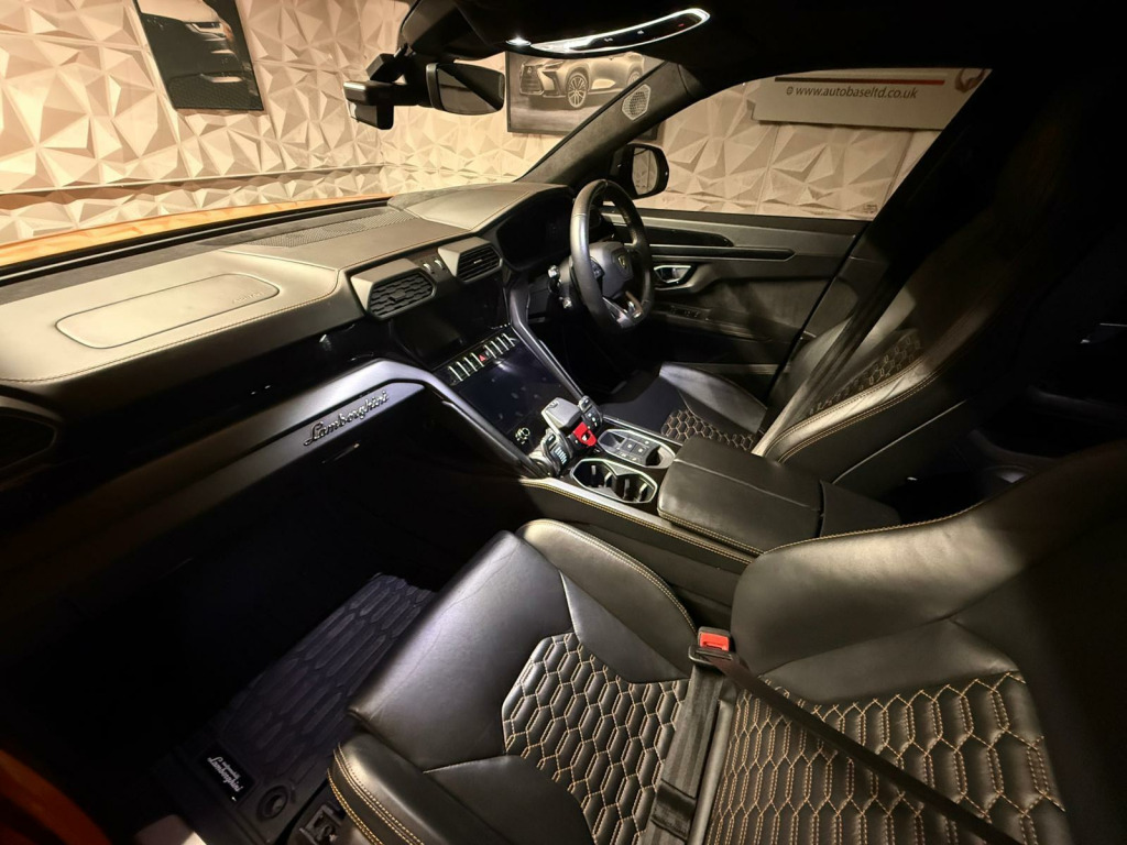This 2021 Lamborghini Urus V8 BiTurbo presents an exceptional ownership proposition with its full service history and a clear vehicle history check, ensuring peace of mind. Powered by a potent 4.0L petrol engine and featuring a sophisticated Four Wheel Drive system, this Euro 6 compliant SUV offers exhilarating performance. Inside, you'll find comfort and connectivity with the Automatic Dual-Zone Air Conditioning System, complete with an active carbon filter and climate control, alongside LED headlights for superior visibility. The Lamborghini Smartphone Interface, supporting both Apple CarPlay and Android Auto, keeps you seamlessly connected on every journey.With a remarkably low mileage of just 19,000 miles for its age, this Urus stands out from similar vehicles. Its impressive acceleration, capable of reaching 0-62mph in a mere 3.6 seconds, demonstrates its superior performance capabilities. Furthermore, the generous boot space ensures practicality without compromising on the Urus's signature blend of luxury and sportiness, making it a truly versatile and desirable machine.. 21in Alloy Wheels - Alcione Silver Rims, ABS - Anti-lock Braking System, ASR - Anti Slip Regulation, Airbag - Driver, Airbag - Passenger, Airbag - Side, Anti-Theft Alarm, Auto Headlights and Rain Wipers, Automatic Dual-Zone Air Conditioning System with Integrated Active Carbon Filter, Bluetooth, Carbon Ceramic Brakes with Silver Painted Brake Calipers, Colour Touch Screen, Cup Holder, Daytime Running Lights - LED, Door Mirrors - Electrically Adjustable-Heated and Folding, EBD - Electronic Brake Distribution, ESC - Electronic Stability Control, Electric Front and Rear Windows, Electromechanical Power Steering, Electronic Traction Control, Headlights - LED, Headliner Alcantara, HiFi Base, Lamborghini Smartphone Interface - Apple Carplay and Android Auto, Multifunction Steering Wheel in Smooth Leather, Navigation System, Remote Central Locking, Voice Activating System for Phone and Navigation System. Full service history