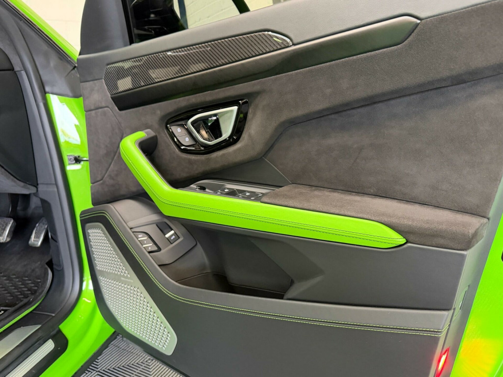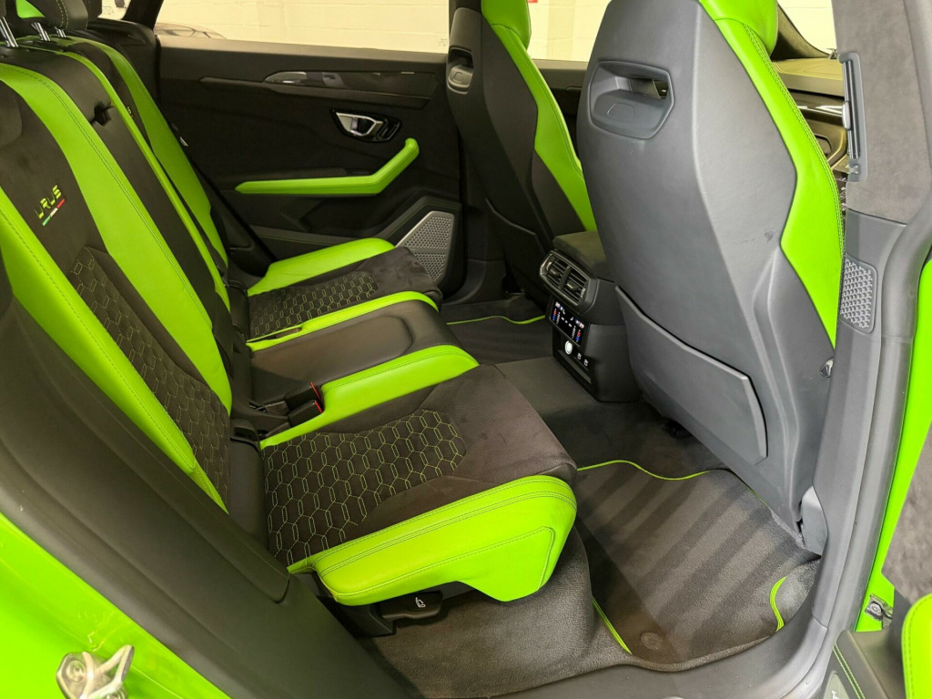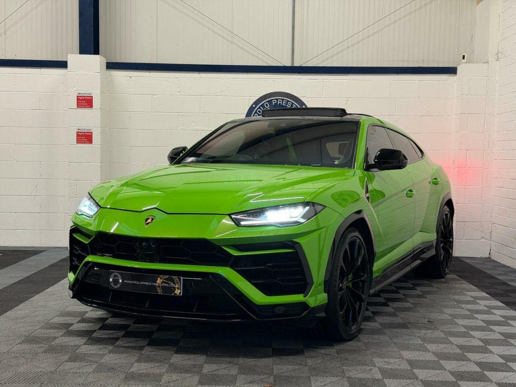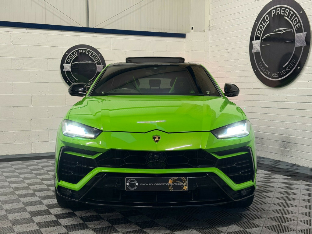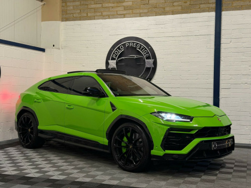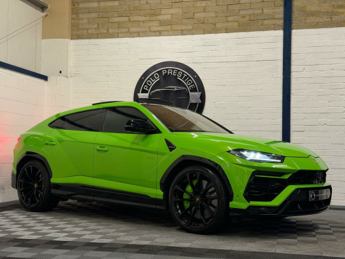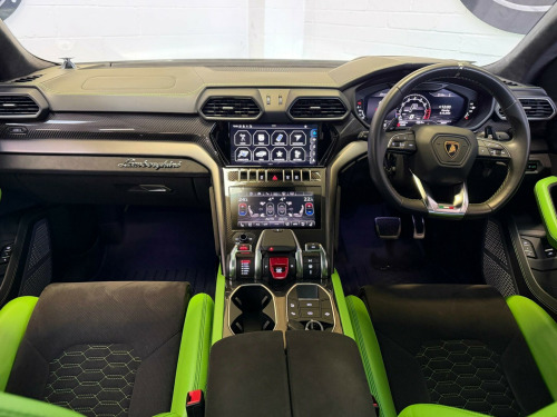 This 2022 Lamborghini Urus V8 BiTurbo Pearl Capsule is a remarkable example of Italian automotive engineering. Finished in the striking Pearl Capsule trim, this four wheel drive SUV boasts a powerful 4.0 litre petrol engine, meeting Euro 6 emission standards. Inside, you will find a luxurious Bang and Olufsen Advanced 3D Audio System, an electric panorama roof with an opening sunroof, and heated rear seats for enhanced comfort. The striking green painted brake calipers on the carbon ceramic brakes add a distinctive visual touch, complemented by an ambient light package that creates a sophisticated atmosphere.The Urus offers an exceptional driving experience, highlighted by its impressive acceleration of 0-62mph in just 3.6 seconds, demonstrating its superior performance compared to other vehicles in its class. Furthermore, this model provides generous boot space, making it a practical choice for both everyday use and longer journeys. ng and olufsen advanced 3d audio system, 23in alloy wheels - taigete shiny black rims, electric panorama roof, privacy glass - acoustic and double glazing, ambient light package, pearl capsule alcantara - leather - verde mantis, rear seats heated, carbon ceramic brakes with green painted brake calipers, offroad modes, 23in alloy wheels - taigete shiny black with body colour accent, 4th year maintenance package, abs - anti-lock braking system, asr - anti slip regulation, airbag - driver, airbag - passenger, airbag - side, anti-theft alarm, auto headlights and rain wipers, automatic dual-zone air conditioning system with integrated active carbon filter, bluetooth, carbon ceramic brakes with black painted brake calipers, colour touch screen, cup holder, dab radio, daytime running lights - led, door mirrors - electrically adjustable-heated and folding, ebd - electronic brake distribution, esc - electronic stability control, electric front and rear windows, electromechanical power steering, electronic traction control, head up display - hud, headlights - led, headliner alcantara, hifi base, highway assistant package, lamborghini smartphone interface - apple carplay and android auto, lamborghini warranty 4th year, multifunction steering wheel in smooth leather, navigation system, pearl capsule exterior package, pearl capsule interior package, remote central locking, urban road assistant package