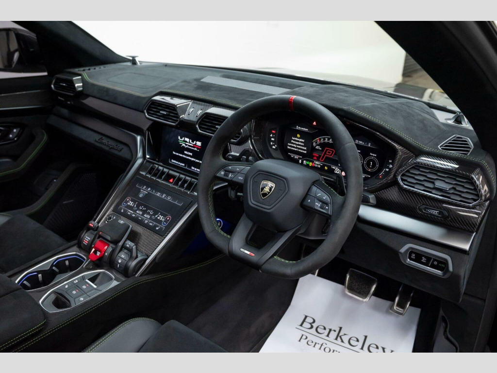 Berkeley Performance are proud to present this stunning Lamborghini Urus 4.0 V8 BiTurbo Performante finished in Nero Helene complimented by a Nera Ade/ Verde Fauns interior. This particular vehicle is covered in full body paint protection film (PPF), finished with a Pearlescent White wrap. This very well mainted example comes with the following optional extras;, Unicolour Alcantara with Performante Trim - Nero Cosmus, Optional Stitching, Optional Stitching on Steering Wheel, Floor Mats with Leather Piping and Double Stitching, Sport Steering Wheel in Full Alcantara with Dark Chrome Bezel and Red Marker - Heated, 23in Alloy Wheels - Pelope Rims with Titanium Bolts - Diamond Finished Bronze, Brake Calipers - Green, Electric Panorama Roof, Privacy Glass - Acoustic and Double Glazing, Bonnet in Visible Carbon Fibre, Full Exterior Carbon Fibre Package - Rocker Covers - Side Mirrors - Lamborghini Frame, Rear Lamborghini Logo in Matt Black - Ad Personam, Upper Interior Carbon Package - Air Vents & Instrument Cluster Cover, Q-Citura - Extended Performante Trim Pack on Alcantara, Dark Package on Alcantara, Ambient Light Package, Full ADAS Package, Bang and Olufsen Advanced 3D Audio System, Head Up Display - HUD, Vehicle Tracking System - VTS, This vehicle has manufacturers warranty until May 2027 and a 4 year service plan. Finance available from 8.9% apr subject to status, All viewings by appointment only. Visit www.berkeleyperformance.co.uk