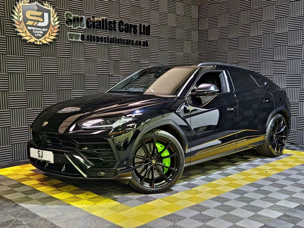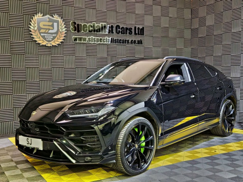 2019 / 19 Lamborghini Urus V8 Bi-Turbo. Finished in Nero Aldebaran (Gloss Black) with Black Leather stitched in Green. 47000 Miles, Full Lamborghini Service History. Over 22K in Options inc : 23" Taigete Gloss Black Alloys, Head-Up-Display, Green Callipers, Embossed Headrests, Sliding Panoramic Sunroof, Driver assistance pack with Blind Spot Assist, B&O Surround Sound, Privacy Glass, 360 Surround Cameras, Privacy Glass, Black Roof Rails, Adaptive Cruise, Heated Steering Wheel in Alcantara, Bespoke Finance , Warranties and Part Exchange Available. Highway Assistant Package, Multi Function Heated Steering Wheel wit, Bang and Olufsen Advanced 3D Audio Syste, Full Electric Front Seats with Ventilati, Black Roof Rails, Contrast Stitching on Steering Wheel, Coloured Stitching, Black Matte Exhaust Tailpipes, Electric Panorama Roof, Embroidered Logo on Headrest, Style Package - High Gloss Black, 23in Alloy Wheels - Taigete Shiny Black , 21in Alloy Wheels - Alcione Silver Rims, ABS - Anti-lock Braking System, ASR - Anti Slip Regulation, Airbag - Driver, Airbag - Passenger, Airbag - Side, Anti-Theft Alarm, Auto Headlights and Rain Wipers, Automatic Dual-Zone Air Conditioning Sys, Bluetooth, Carbon Ceramic Brakes with Silver Painte, Colour Touc