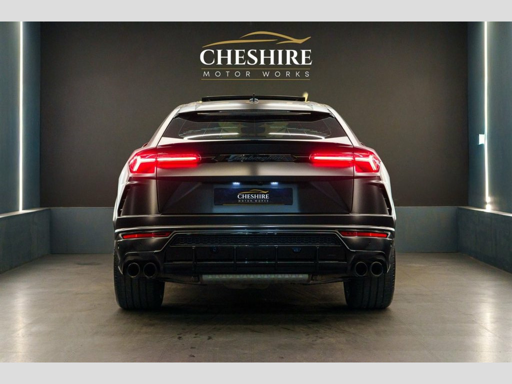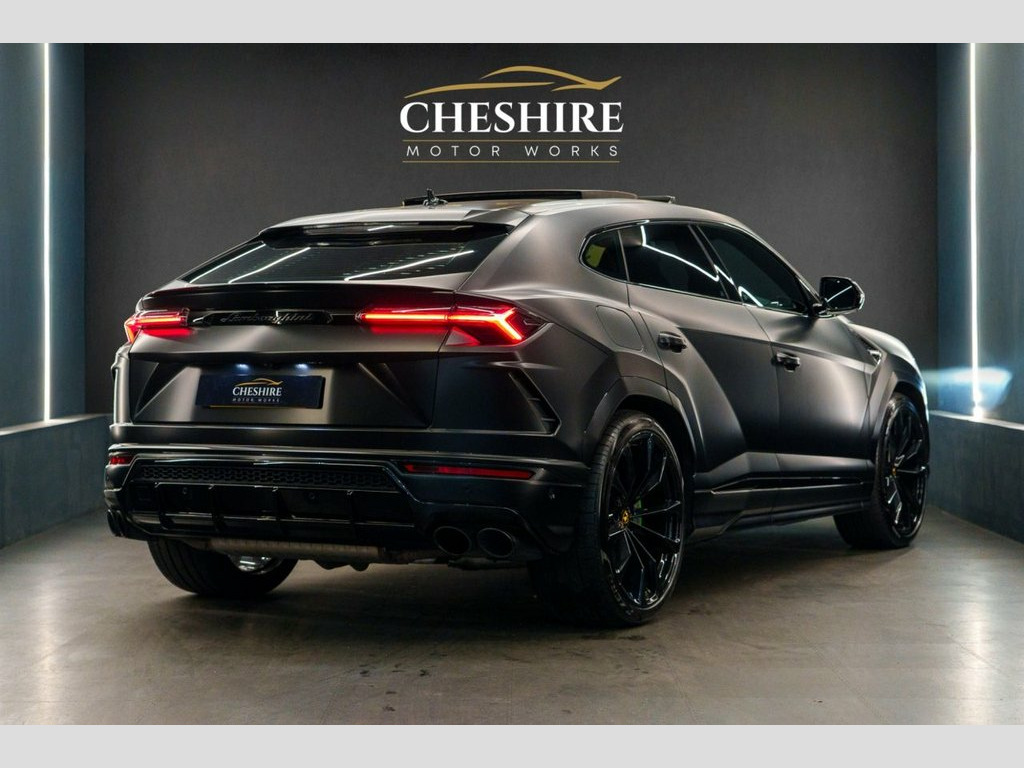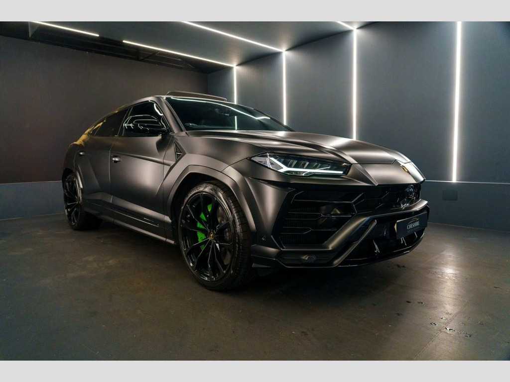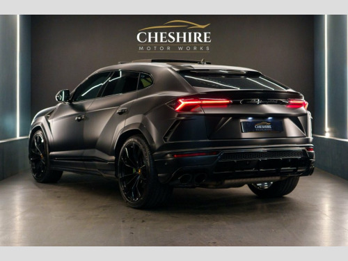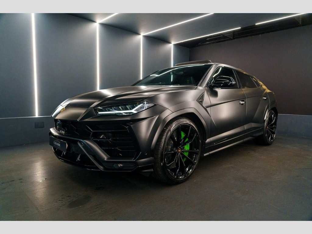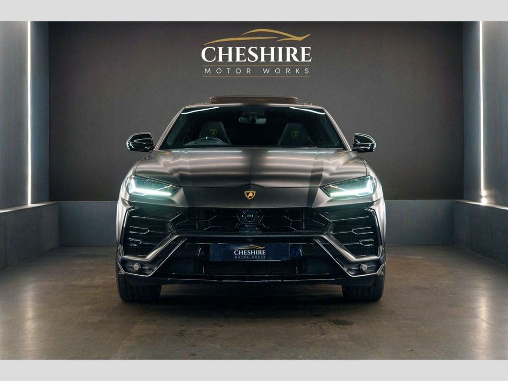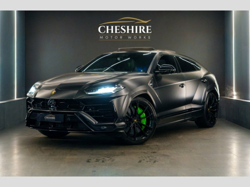 Cheshire Motor Works are delighted to present this stunning Lamborghini Urus finished in the exclusive Nero Helene Metallic Black Paint, wrapped in full stealth PPF (Paint Protection Film £6,00) . This vehicle features 4.0 V8 petrol engine paired with an automatic gearbox. The Urus meets the latest Euro 6 emission requirements. This vehicle was first registered in 2023. This Lamborghini Urus is comprehensively equipped with a range of sought-after features including; * Nero Helene Metallic Black Paint * Stealth Paint Protection Film * Panoramic Sunroof * Adaptive Cruise Control * Advanced 3D Bang & Olufsen Sound System * Carbon Ceramic Brakes with matching Callipers * Apple CarPlay & Android Auto Connectivity * Blind Spot Assist * 360 Camera * Parking Assist * Multi-Colour Ambient Interior Lighting * Heated Front Seats * Ventilated Front Seats * Massage Seats * 23" Gloss Black Alloys wrapped in New Pirelli P-Zero Tyres * 4 Zone Climate Controls * Black Leather Seats With Green Contrasting Stitching * Soft Close Doors * Electric Adjustable Seats & Steering Wheel With Memory Functions * HUD (Heads Up Display) * Bluetooth/DAB Connectivity * Wireless Phone Charging *Additionally offering a high level of specification as standard, ensuring both luxury and practicality. For added peace of mind, At Cheshire Motor Works, we take exceptional care in our vehicle preparation standards. This Urus has passed an extensive 156-point inspection heath check and has b Stealth PPF