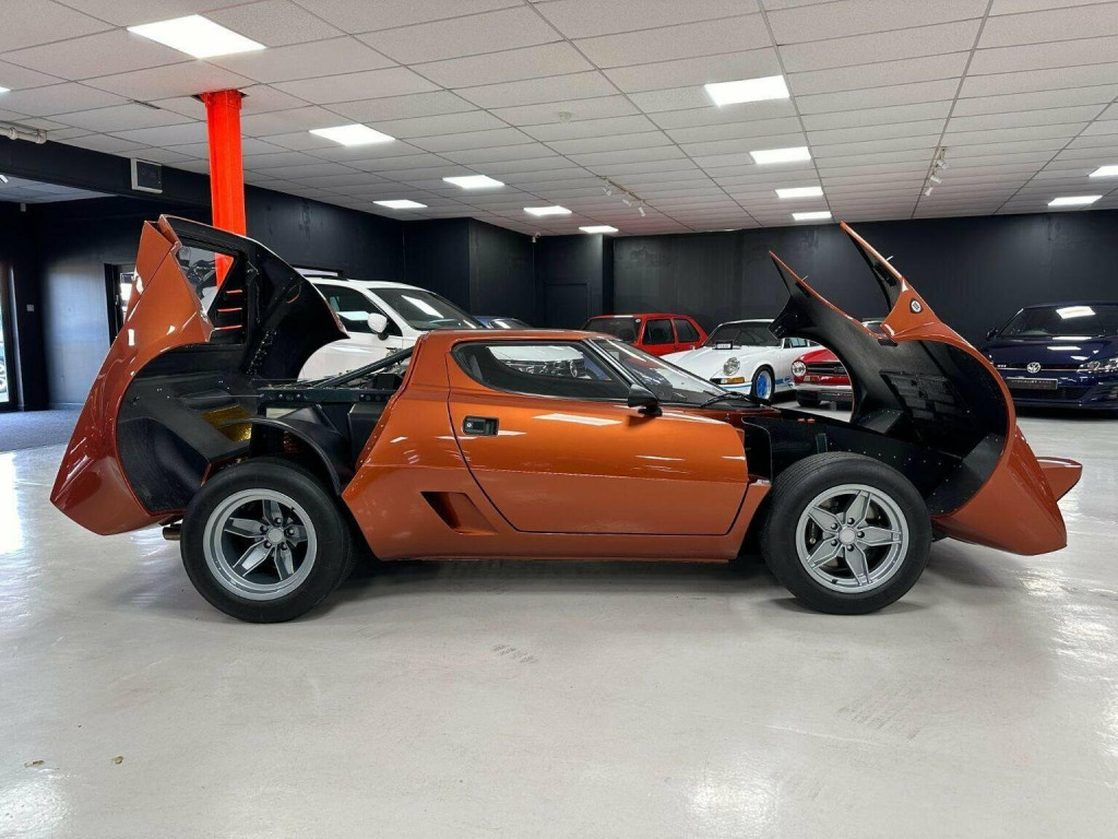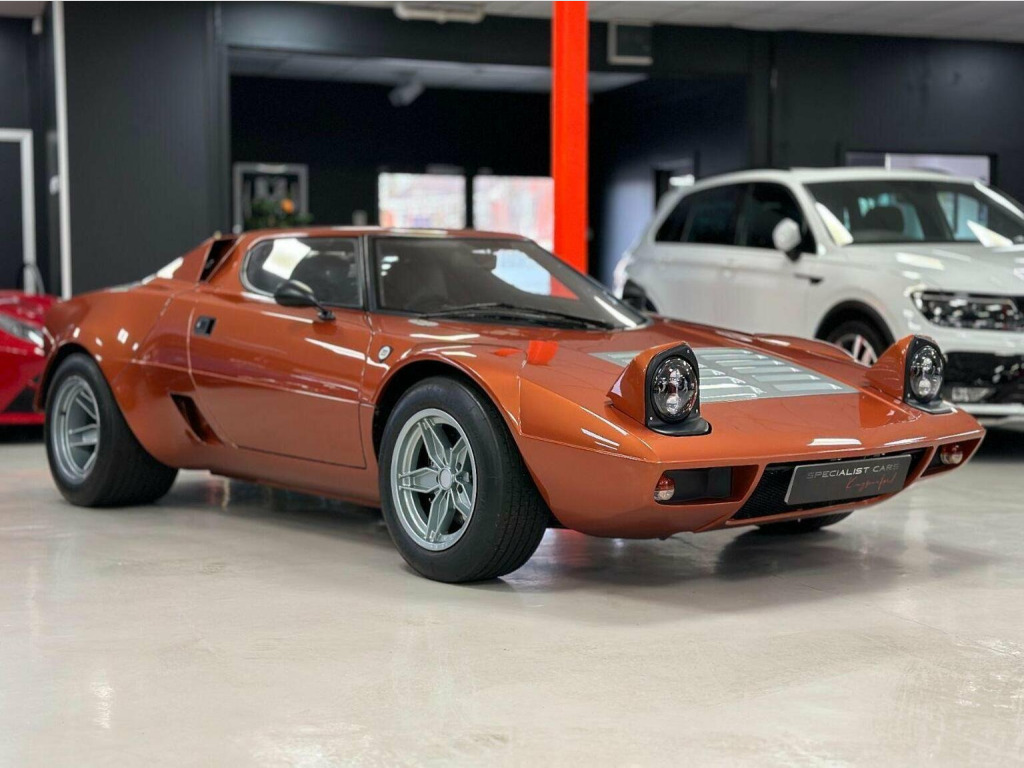 This is the Lancia Stratos HF Volumex built by the famed bespoke UK car builders Retro Power this car was crafted using a Lister Bell kit, recognised for its superior quality and design. The body showcases a unique bronze-gold-orange colour inspired by the Lancia Stratos Zero concept car, its appearance is streamlined with internally mounted fixtures, avoiding awkward exterior-mounted metal catches for a smoother look. The headlights are upgraded to JW Speaker projector type, while the rear lights are aftermarket units from the Lotus Evora, this all adds to the distinctive design. The car is equipped with cooling vents ears for efficient engine temperature control, complemented by custom alloy wheels—8x17in at the front and a substantial 12x17in at the rear. Make no mistake this whole build was over 2 years in the making and the standard and build quality is impeccable. Under the bonnet, the power is sourced from an Alfa Romeo Busso 3.2 V6 24v. The engine has undergone a complete rebuild with forged components and low-compression pistons. An Eaton M112 supercharger from a Jaguar XJC, along with a custom charge-cooled inlet manifold, contributes to the performance enhancement. The modified Ford Mondeo V6 tensioner and idler assembly, along with a billet mount and bespoke crank pulley all add to a very robust setup, and all done to achieve at least 400bhp at 1bar. The gearbox is from a Toyota MR2, its imbued with trick Quaife internals, chosen for its strength and end-on configuration. The exhaust system is a custom one-off stainless steel by Simpson. It was a demand from the client that the car be fitted with air conditioning, traction control and an ABS braking system, all of which have most likely never been seen in a car of this type.