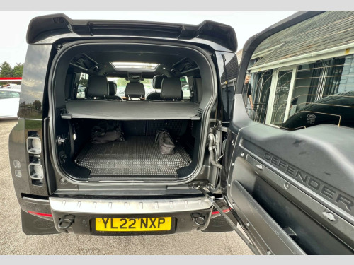 This 2022 Land Rover Defender 110 P400e X Dynamic HSE is a superb example, boasting a clear vehicle history check and having had only one owner. It features a powerful 2.0 litre petrol plug in hybrid engine, paired with a capable four wheel drive system, and meets Euro 6 emissions standards. The X Dynamic HSE trim level ensures a premium experience, enhanced by features such as Blind Spot Assist, Keyless Entry, a Heated Steering Wheel for those colder mornings, and striking Matrix LED Headlights with Signature Daytime Running Lights.The impressive acceleration of 0-60mph in just 5.4 seconds demonstrates the dynamic performance of this plug in hybrid, setting it apart from many other vehicles in its class. Furthermore, the 3D Surround Camera system, including 360 degree camera functionality and towbar integration, offers exceptional visibility and ease when manoeuvring or towing up to 3500 kg. The generous boot space also provides ample room for all your luggage or equipment, making this Defender 110 a practical and sophisticated choice. cure tracker pro, 20in alloy wheels - style 6011- 6 spoke - gloss black, 10in touchscreen, 12v socket in loadspace, 14-way heated and cooled electric memory front seats with 4-way manual headrests, 2-zone automatic climate control, 20in alloy wheels - style 5098 - 5 spoke - satin dark grey, 20in full size spare wheel, 360 degree parking aid, 3d surround camera, 40-20-40 folding rear seats with centre armrest, abs - anti lock braking system, acc - adaptive cruise control, adaptive dynamics, air quality sensor, airbags - driver, airbags - front passenger, all season tyres, alpine lights, android auto, apple carplay, assisted tailgate with soft close, auto-dimming interior rear view mirror, automatic headlight levelling, automatic headlights and rain sensing wipers, black exposed rear recovery eyes, black roof rails, blind spot assist, body coloured roof, brake hold, brake pad wear indicator, cbc - cornering brake control, cabin air ionisation, carpet mats, centre console with armrest, centre high mounted stop light, clear exit monitor, click and go integrated base unit, cross car beam in light grey powder coat brushed finish, customer configurable autolock, dsc - dynamic stability control, digital audio broadcast radio - dab, driver condition monitor, durable rubber cabin flooring, durable rubber loadspace flooring, eba - emergency brake assist, ebd - electronic brake-force distribution, epas - electric power assisted steering, etc - electronic traction control, electric cabin pre-conditioning, electric parking brake, electric windows with one-touch open-close and anti-trap, electrically adjustable steering column, electronic air suspension, emergency braking, extended leather upgrade, follow me home lighting, footwell lights - front, front airbags with passenger seat occupant detector, front fog lights, front passenger seat isofix, glovebox storage, hdc - hill descent control, headlining - ebony morzine, heated electric power fold door mirrors with approach lights and auto-dimming driver side, heated rear window with timer, heated steering wheel, heated windscreen, hill launch assist, illuminated metal treadplates with brand-name script, interactive driver display, intrusion sensor, keyless entry, led tail lights, less wireless charger, lane keep assist, leather gearshift, leather steering wheel, loadspace cover, loadspace hooks, locking wheel nuts, low traction launch, matrix led headlights with signature drl, meridian sound system, non smokers pack, online pack with data plan, overhead stowage for sunglasses, p400e badge, pivi pro - connected, power operated child locks, premium cabin lighting, privacy glass, public charging cable, puddle lights, push button start, rsc - roll stability control, rear collision monitor, rear fog lights, rear isofix, rear reading lights, rear traffic monitor, rear wash wiper, remote, seat belt reminder, seats - rear centre head restraint, secure tracker (12 month subscription from new), side-hinged tailgate, signature graphic - with interior storage, sliding panoramic roof, solar attenuating windscreen, sun visors - illuminated vanity mirrors, tpms - tyre pressure monitoring system, tsa - trailer stability assist, terrain response, three-zone climate control, traffic sign recognition and adaptive speed limiter, trip computer, twin front cupholders with cover, twin speed transfer box - high-low range, wade sensing, x-dynamic badge, x-dynamic exterior pack