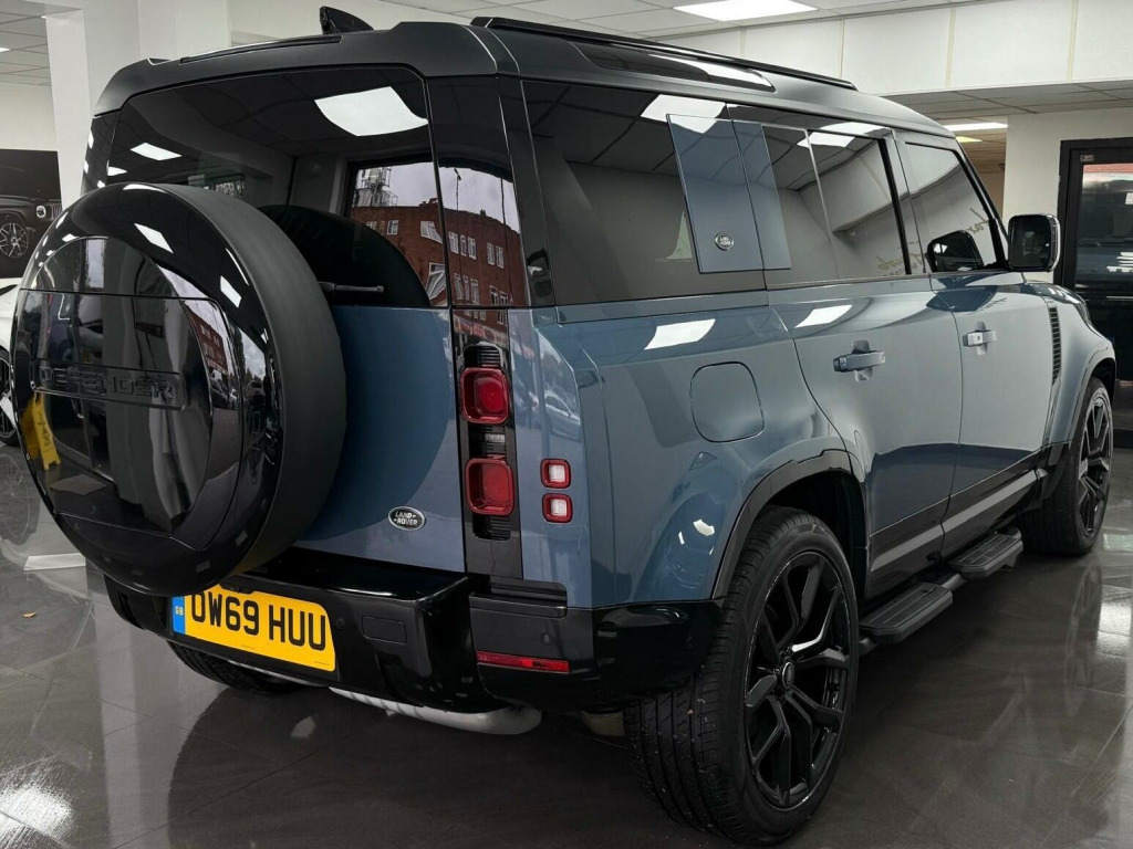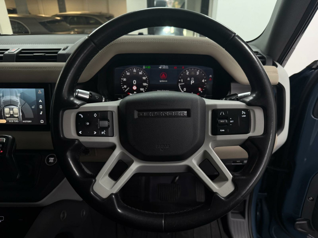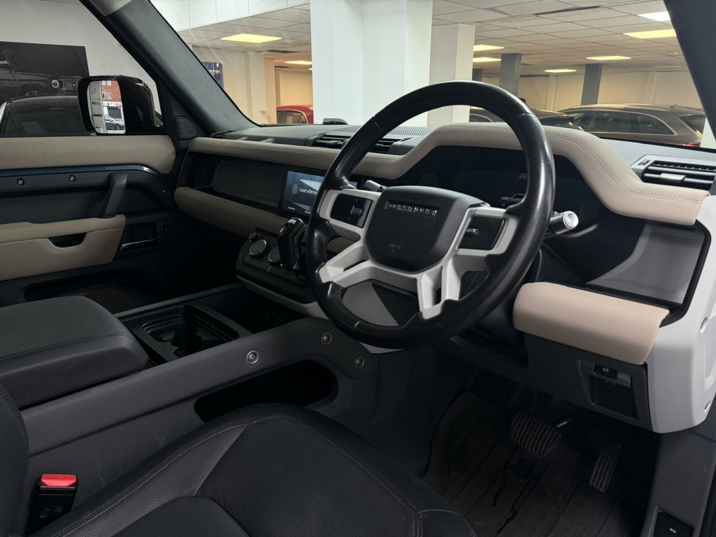 This 2020 Land Rover Defender 110 SD4 S presents an exceptional opportunity with its remarkably low mileage of just 27,000 miles. This Euro 6 compliant, four wheel drive model is powered by a capable 2.0L diesel engine, offering a towing weight of 3500 kg. Equipped with distinctive LED headlights, the S trim level also boasts a 3D Surround Camera system and 360 Degree Parking Aid, making manoeuvring effortless. Inside, you'll find the convenience of Android Auto and a Two Zone Climate Control system, ensuring comfort for all occupants.The Defender 110 SD4 S excels with its impressive acceleration, reaching 0-60mph in a swift 8.7 seconds, a performance that sets it apart. Its generous boot space is a significant advantage for those needing ample storage, whether for everyday tasks or adventurous getaways. These highlights demonstrate how this particular Defender 110 offers a superior experience compared to other vehicles in its class. yless entry, 22in alloy wheels - style 5098 - 5 spoke - gloss black, 22in full size spare wheel, black contrast roof, privacy glass, 10in touchscreen, 12-way heated semi-powered front seats, 19in alloy wheels - style 6010 - 6 spoke - gloss sparkle silver, 19in full size spare wheel, 360 degree parking aid, 3d surround camera, 40-20-40 folding rear seats with centre armrest, abs - anti lock braking system, ahba - auto high beam assist, adaptive dynamics, airbags - driver, airbags - front passenger, all season tyres, android auto, apple carplay, auto-dimming interior rear view mirror, automatic headlight levelling, body coloured roof, cabin lighting, carpet mats, centre console with armrest, click and go integrated base unit, connected navigation pro, core exterior pack, cross car beam in light grey powder coat brushed finish, cruise control and speed limiter, d240 badge, digital audio broadcast radio - dab, door mirrors - heated - power fold with approach lights and auto-dimming, driver condition monitor, electric windows - front and rear, electronic air suspension, emergency braking, headlining - light oyster morzine, heated windscreen, interactive driver display, intrusion sensor, led headlights, led tail lights, less roof rack or rails, lane keep assist, leather gearshift, loadspace cover, locking wheel nuts, manually adjustable steering column, non smokers pack, online pack with data plan, power assisted steering, rear isofix, remote, s badge, signature graphic - with interior storage, sound system, standard roof, standard treadplates, steering wheel - leather wrapped with pu dab, sun visors - illuminated vanity mirrors, tpms - tyre pressure monitoring system, terrain response, traffic sign recognition and adaptive speed limiter, two-zone climate control, wade sensing
