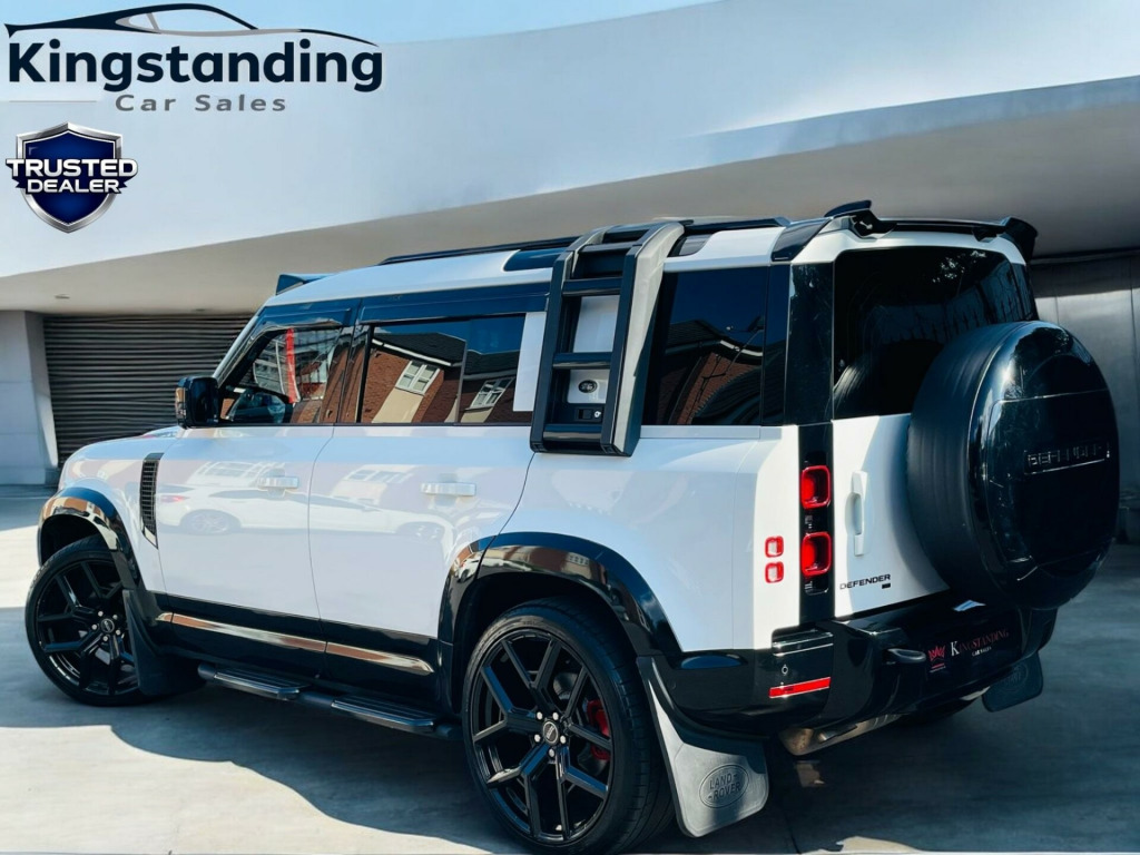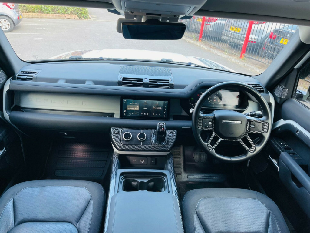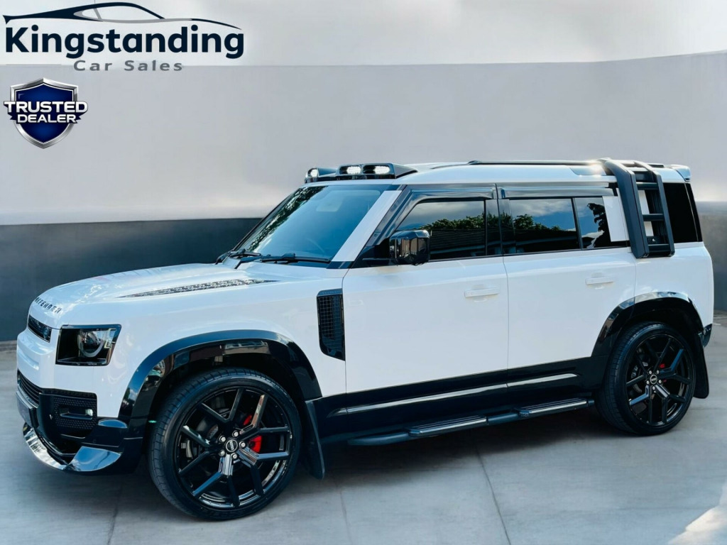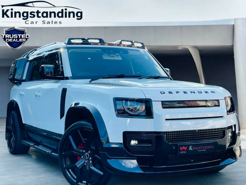WELCOME TO THIS AMAZING SALE OF A ONE OFF LAND-ROVER DEFENDERONLY 2 FORMER KEEPERS FROM NEWWARRANTED MILES JUST BEEN SERVICEDTHIS HAS UNDER-GROWN A FULL URBAN STYLE BODY-KIT MAKING THIS STANDOUT23 inch SVR ALLOYS WITH LOWERING LINKSTHIS AMAZING DEFENDER HAS POSSIBLY ALL THE EXTRAS NEEDED FRONT LED GRILLTOP MOUNT LED LIGHTSFULL CARBON PACKFULL GHOST ALARM WITH TRACKER AND KILL OFF SWITCHALL USUAL DEFENDER EXTRAS FROM 3D CAMERAS TO TOP MOUNT REVERSE CAMERASMERIDIAN SOUND SYSTEMTHEY DON'T GET ANY BETTER THEN THIS NO EXPENSE SPAREDPREVIOUS CAT-NCOMES WITH A 6 MONTHS PARTS AND LABOUR WARRANTY FOR A PEACE OF MINDWE TAKE ANY CAR IN PART EXCHANGE AT TRADE PRICEVIEWING STRICTLY BY APPOINTMENTS AS DIRECTORS PERSONAL CARNO TIME WASTERS IF YOU WANT THE BEST DEFENDER THEN GET IN TOUCH WITH OUR TEAM TO BOOK A VIEWING in touchscreen, 12-way heated - electric memory front seats with 2-way manual headrests, 20in alloy wheels - style 5094 - 5 spoke - gloss sparkle silver, 20in full size spare wheel, 360 degree parking aid, 3d surround camera, 40-20-40 folding rear seats with centre armrest, abs - anti lock braking system, ahba - auto high beam assist, adaptive dynamics, airbags - driver, airbags - front passenger, all season tyres, android auto, apple carplay, automatic headlight levelling, blind spot assist, body coloured roof, cabin lighting, carpet mats, centre console with armrest, clear exit monitor, clearsight interior rear view mirror, click and go integrated base unit, connected navigation pro, core exterior pack, cross car beam in light grey powder coat brushed finish, cruise control and speed limiter, digital audio broadcast radio - dab, door mirrors - heated - power fold with approach lights and auto-dimming, driver condition monitor, electric windows - front and rear, electrically adjustable steering column, electronic air suspension, emergency braking, front fog lights, front passenger seat isofix, headlining - light oyster morzine, heated windscreen, interactive driver display, intrusion sensor, keyless entry, led tail lights, less roof rack or rails, lane keep assist, leather gearshift, loadspace cover, locking wheel nuts, meridian sound system, non smokers pack, online pack with data plan, power assisted steering, premium led headlights with signature drl, rear isofix, rear traffic monitor, remote, se badge, signature graphic - with interior storage, standard roof, standard treadplates, steering wheel - leather wrapped with pu dab, sun visors - illuminated vanity mirrors, tpms - tyre pressure monitoring system, terrain response, traffic sign recognition and adaptive speed limiter, two-zone climate control, wade sensing