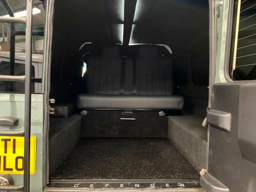 DEFENDER 110 IN KESWICK GREEN WITH BLACK BONNET & ROOF, EXTENDED WHEEL ARCHES IN BLACK, UPGRADED EXTERIOR LIGHTING, BLACK LEATHER SPORTS SEATS, ALL TERRAIN WHEELS & TYRES, QUICK SHIFT GEARBOX, STAGE 1 REMAP, ALCANTARA HEADLINING, DETACHABLE STEERING WHEEL, BLUETOOTH STEREO WITH DAB, PRIVACY GLASS, WIND DIFFUSERS, ALARM, SIDE STEPS, CHEQUER PLATE, DEFENDER KICK PANELS, FULL PANORAMIC GLASS CONVERSION WITH INTERIOR BLINDS, REAR FACING REAR SEATS WITH 2 SEAT BELTS WHICH FOLDS FLAT INTO A DOUBLE BED, INTERNAL LED LIGHTING, ROOF RACK TO TAKE A ROOF TENT IF 4 BERTH REQUIRED, REAR LADDERS, REAR AWNING ATTACHMENT WITH A FURTHER 2 ROOMS TO CHANGE COOK AND A SEPERATE TOILET COMPARTMENT, USB CONNECTIVITY, SERVICE HISTORY - AN INCREDIBLE BIT OF KIT WHICH LOOKS AWESOME IN THE CITY OR UP IN THE MOUNTAINS arm system - perimetric/volumetric w. inmobilise, glass - tinted, front and side