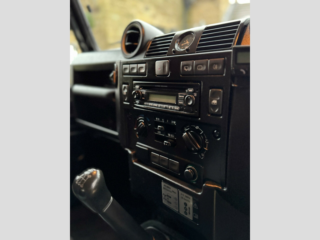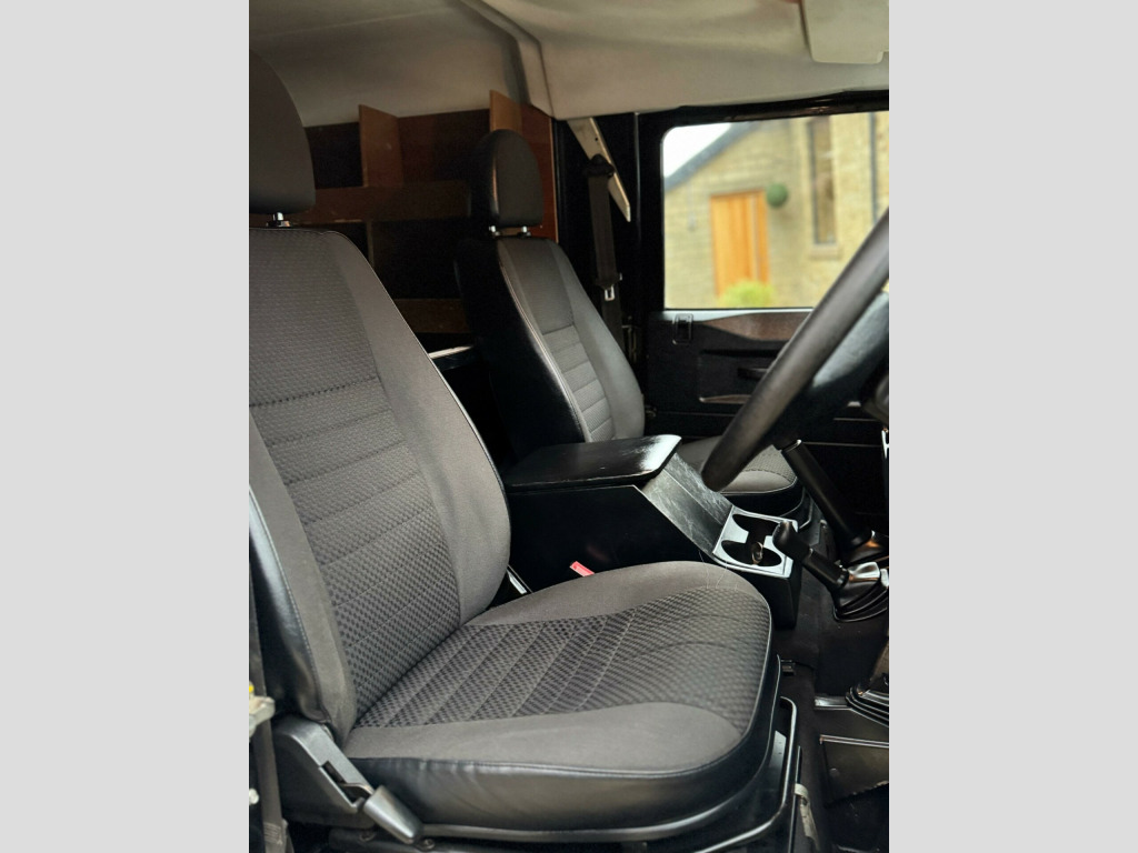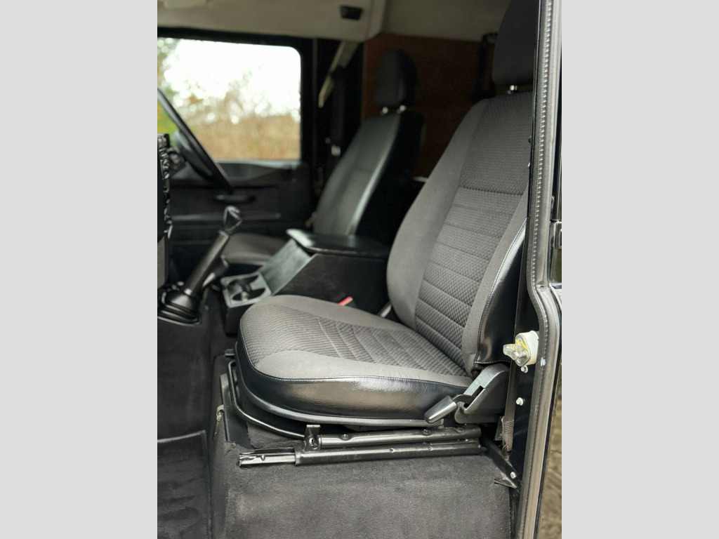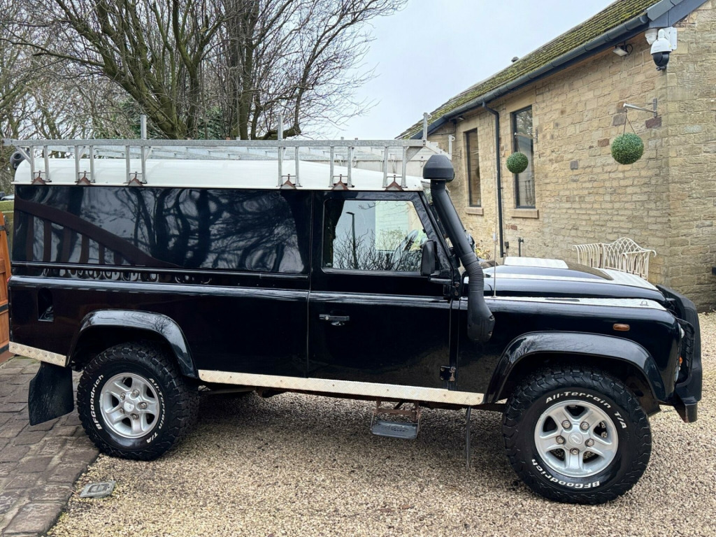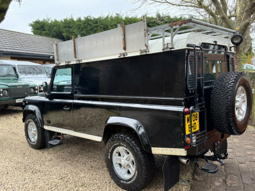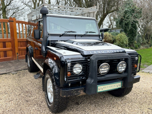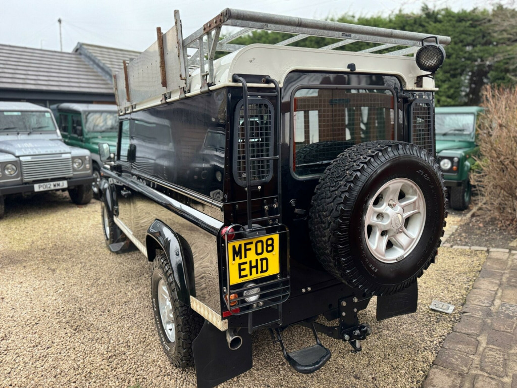 2008 08 Land Rover Defender 110 County hard top 2.4TDCi finished in Java black, full length roof rack, boost alloy wheels with BF Goodrich tyres, front A bar and spots, steering guard, chequerplate kit, black county cloth interior, electric windows, parrot handsfree, Mantec spare wheel carrier, rear ply lined, great workhorse, drives superb