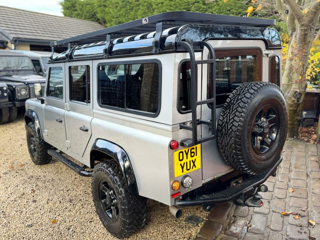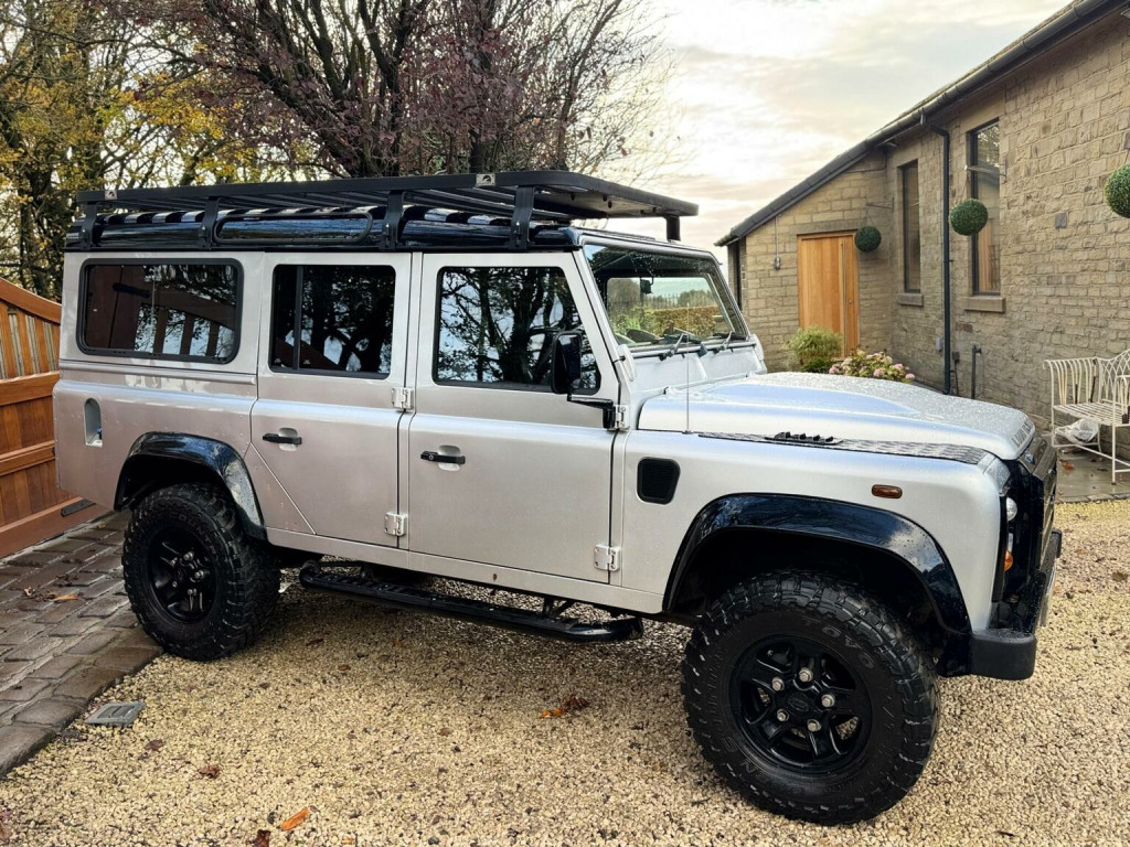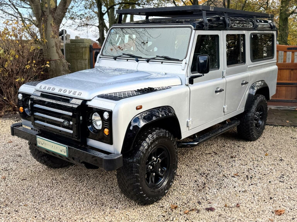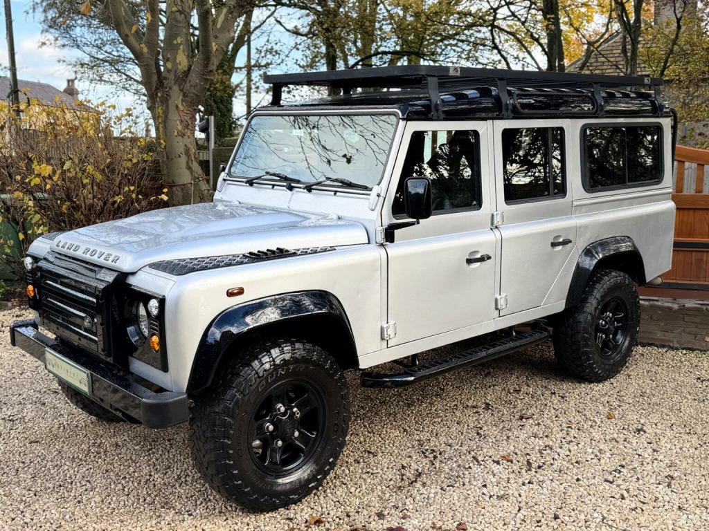 This 2011 61 Land Rover Defender 110 County Station Wagon 2.4TDCi finished in Indus silver with Corbeau front sport seats with low profile seat bases, Rax roof rack, Boost alloy wheels, KBX Grilles, NAS rear step, tubular side steps, this Land Rover offers robust capability and a proven track record. Powered by a reliable 2.4 litre TDCi diesel engine and featuring a capable Four Wheel Drive system, this manual transmission vehicle is built for adventure. It comes equipped with full size driver and passenger airbags for added safety. The Defender 110 stands out with its impressive 3500 kg towing weight, making it an excellent choice for those needing to transport heavy loads or trailers. Its durable construction and legendary off road prowess ensure it can handle challenging terrains, setting it apart from many other vehicles in its class. This model represents a practical and dependable option for work or leisure.