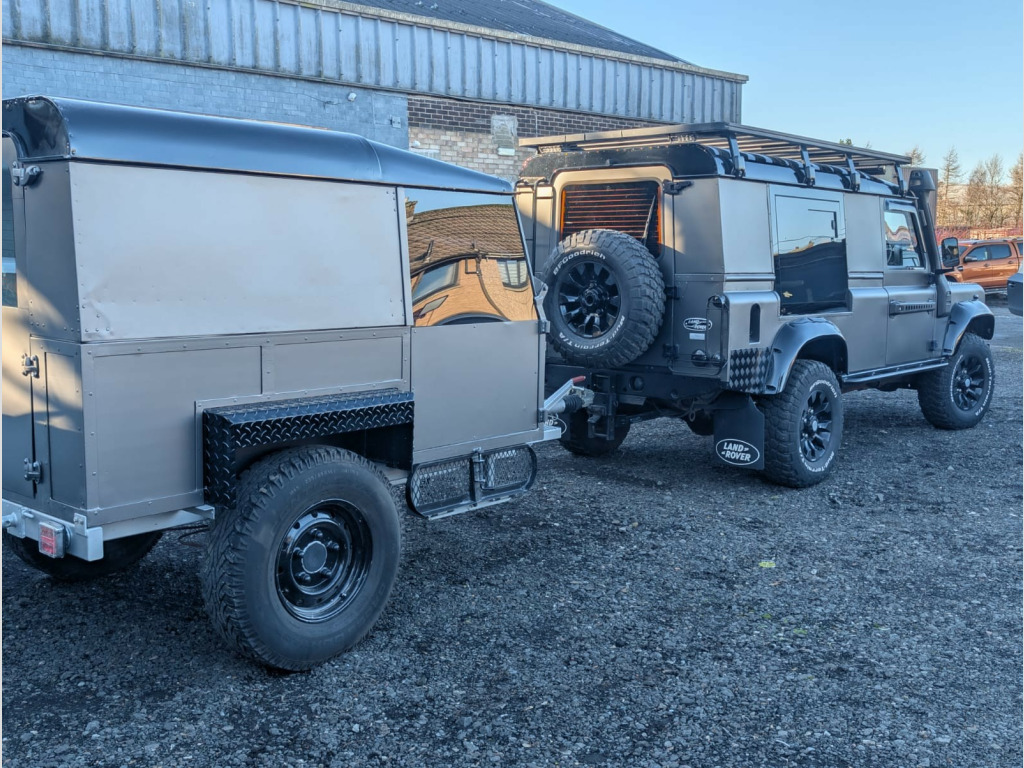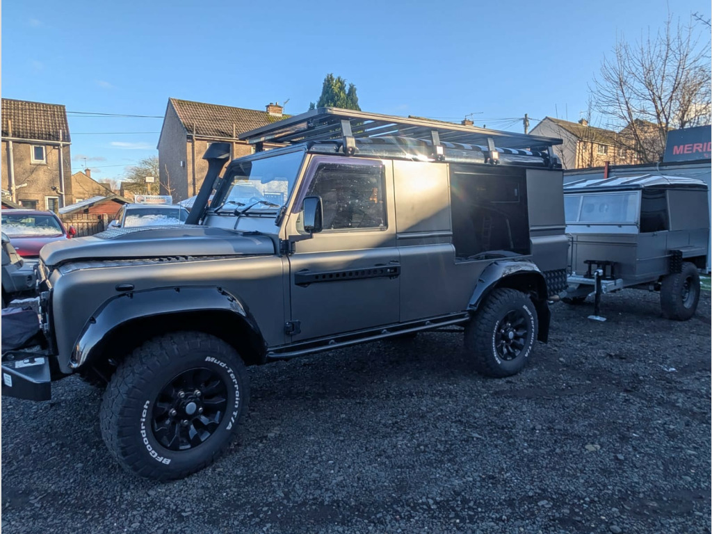 Land Rover Defender 110 Van - 58 Plate - 2.4 TDCiIf you're after a real head-turner, look no further. This outstanding Defender 110 has had over £25,000 spent on it in the last year alone and receives compliments everywhere it goes. The quality of this build speaks for itself.ExteriorFresh £12,000 professional paint job in a custom one-off satin metallic greyChassis in excellent condition - no weldingOptimill hinges all round, including Optimill wing mirrors and fuel cap (£1,800)Sawtooth alloy wheelsBrand new lights all roundNew wheel arch kitSnorkelRhino roof rackRamsey winchOpening side windows with half-slide ventilationInterior (£6,000 retrim)Fully retrimmed interior including:Front seatsDoor cardsCubby boxSun visorsRear tilt-and-turn seatsWalnut acoustic roof panelsBarley carpetingAll visible interior trimsAdditional features:Astrali detachable steering wheel with Optimill boss and steering lockCentral lockingBrand new Apple CarPlay & Android Auto head unitExpedition SetupTuff Trek expedition roof tent and awning (£1,700) - used onceTrailer (£6,000 - Including with vehicle)Brand new build, only used once for deliveryPlated trailer - tows perfectlyBuilt-in hitch lockTwo new jerry cans mounted at the frontOverhead storage with main lighting and warm ambient lightingBrand new wheels and tyresFreshly servicedWill come with 12 months MOTRuns and drives greatA truly unique Defender that's ready for shows, overland adventures, or daily use. in steel wheels, 16in steel wheels - michelin latitude cross tubeless tyre, goodyear mt & r tyres, heated rear screen and rear wash wipe, michelin xpc 750x16 tyres, rear mudflaps, step - rear, cargo space lashing rings, low line cubby box, perimetric/volumetric alarm with immobilisation, power assisted steering, radio pre-wiring