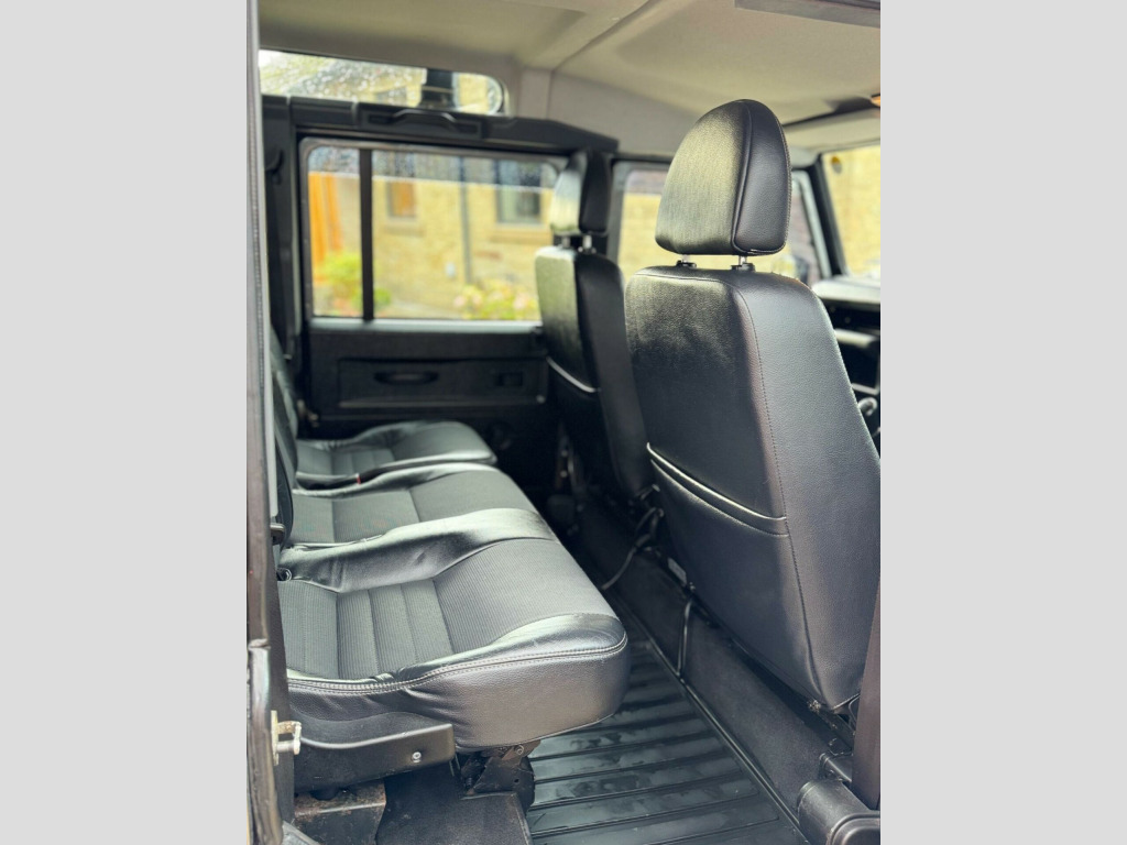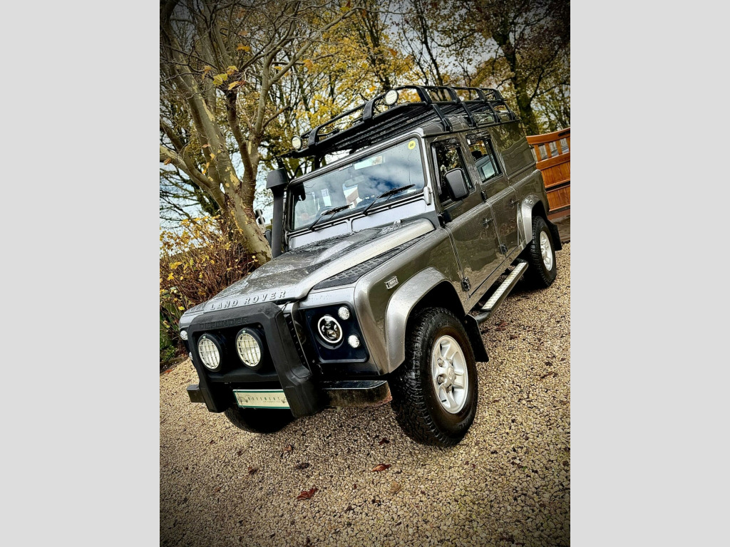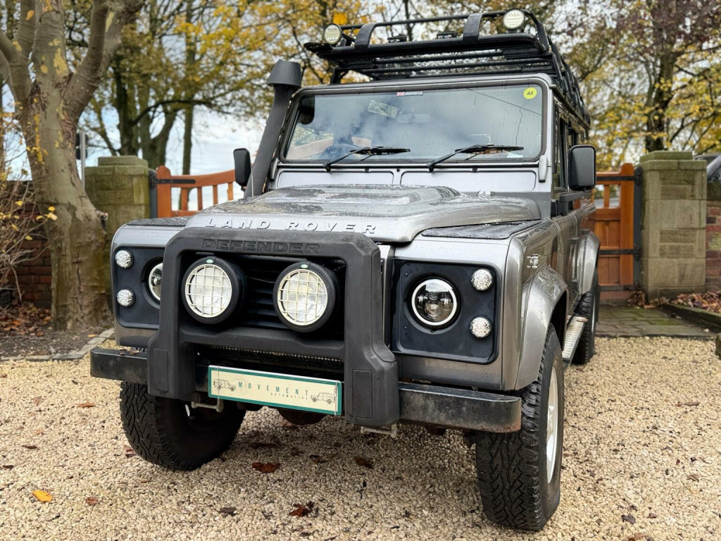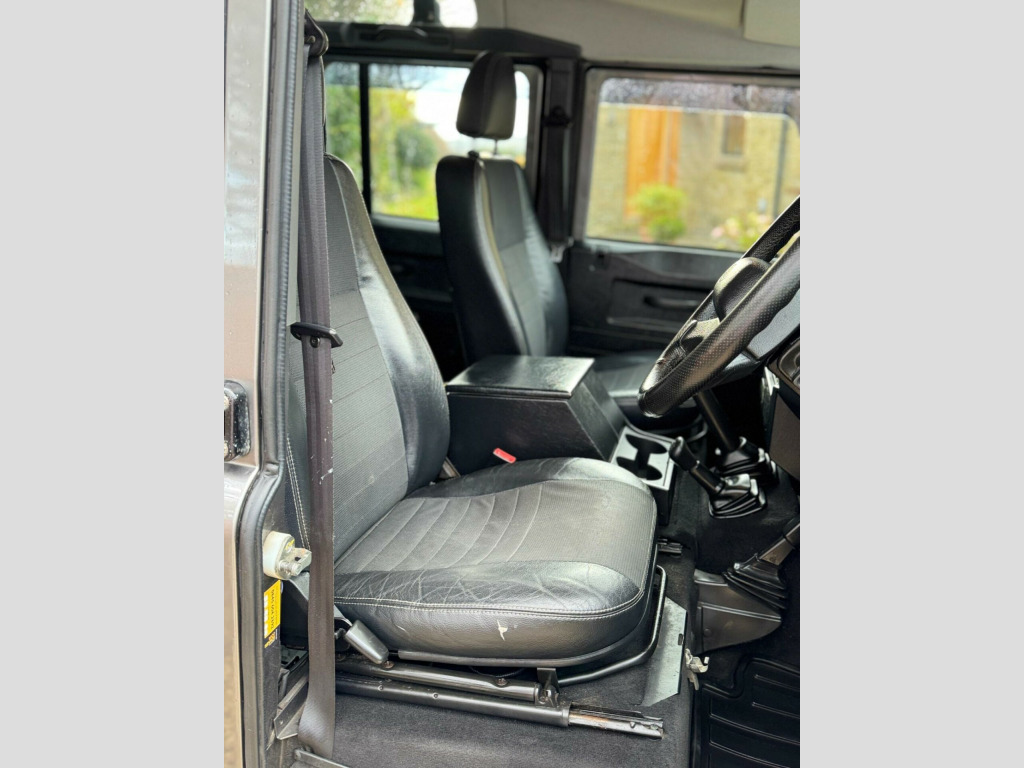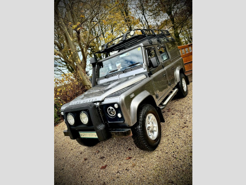 2008 08 Land Rover Defender 110 2.4TDCi XS Utility station wagon finished in metallic Corris Grey with black XS half leather interior, air con, heated seats, electric windows, roof rack, front A bar with spots, many extras, desirable model that has the versatility of working and carrying 5 passengers, side steps, snorkel, Boost alloys, LED lights