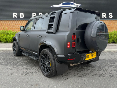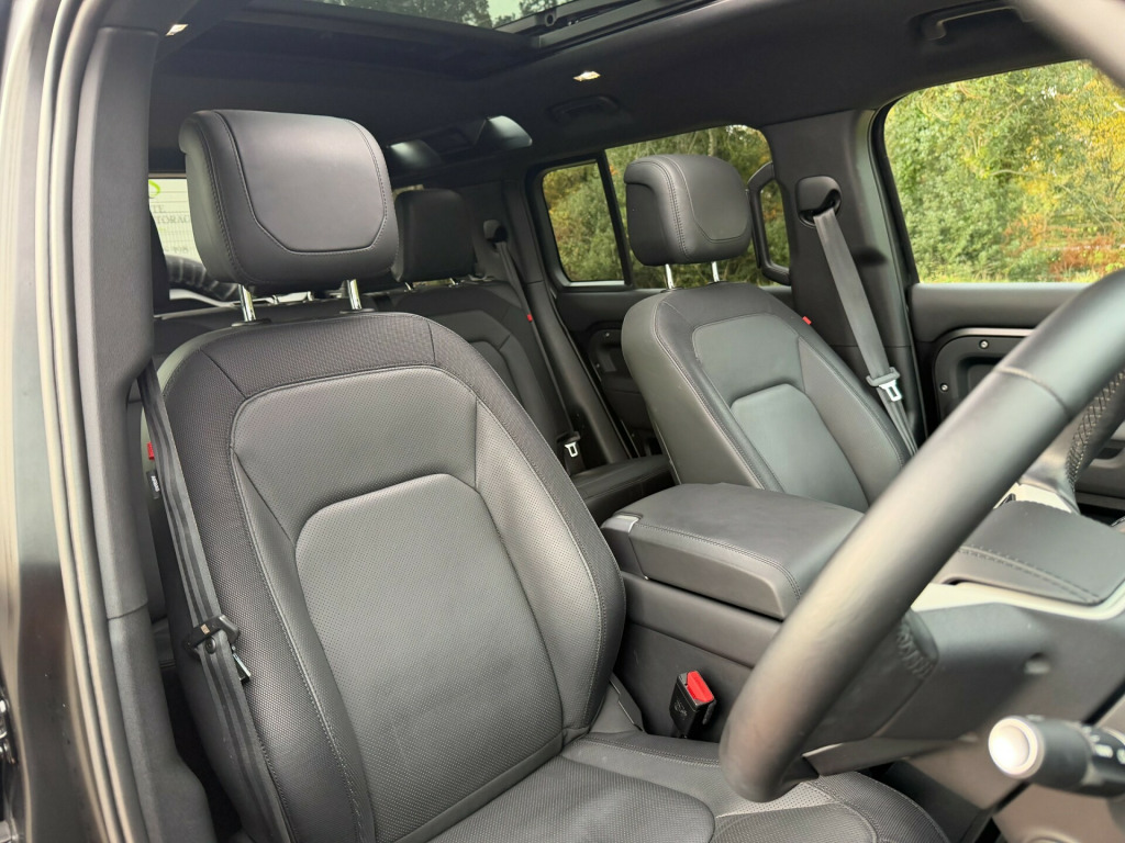 Introducing the latest arrival to RB Prestige, the Land Rover Defender 110 X-Dynamic HSE! Finished in Santorini Black with exterior satin black wrap along lot of visually enhancing extras thanks to URBAN. This car has Full Land Rover Service History and remainder of manufacturer warranty until December 2025. With URBAN high power light bar, URBAN Best of British gloss black side vent and bonnet vent set, URBAN Rear Spoiler, URBAN Wheel Cover, painted extended heel arches, black side steps and Genuine Land Rover mudflaps and 22'' Forged Alloy Wheels with URBAN Centre Caps and all-terrain tyres, this practical machine retains the Defender look while improving it perfectly. While transporting your weekly shop, dogs, or hay bales, you can enjoy the luxurious cabin which includes heated and cooled seats, heated steering wheel, 360 camera, opening panoramic roof, digital dashboard and the usual technology and comfort associated with Land Rover today. The best of both worlds in one brilliant vehicle!Service History: 20/12/2022 at 10 miles - 13/10/2023 at 5,248 miles - 07/04/2025 at 20,029 miles. Call 01202 878188 for more information today or for bespoke finance quotes! RB Prestige offer nationwide delivery, as well as competitive finance packages to fit your budget and needs. Call 01202 878188 for more information today or for bespoke finance quotes! All our cars are inspected before delivery/collection. .4in touchscreen, 12v socket in loadspace, android auto, apple carplay, digital audio broadcast radio - dab, meridian sound system, meridian surround sound system, online pack with data plan, pivi pro - connected, remote, secure tracker (12 month subscription from new), 14-way heated and cooled electric memory front seats with 4-way manual headrests, 2-zone automatic climate control, 40-20-40 folding rear seats with centre armrest, alpine lights, assisted tailgate with soft close, black exposed rear recovery eyes, carpet mats, centre console with armrest, clearsight interior rear view mirror, cross car beam in light grey powder coat brushed finish, durable rubber cabin flooring, durable rubber loadspace flooring, electric cabin pre-conditioning, electrically adjustable steering column, extended leather upgrade, footwell lights - front, glovebox storage, headlining - ebony morzine, heated steering wheel, interactive driver display, less wireless charger, leather gearshift, loadspace cover, loadspace hooks, non smokers pack, premium cabin lighting, push button start, rear reading lights, seats - rear centre head restraint, side-hinged tailgate, standard leather steering wheel, standard seating configuration - 5 seats, sun visors - illuminated vanity mirrors, twin front cupholders with cover, x-dynamic treadplates, 20in alloy wheels - style 5098 - 5 spoke - satin dark grey, 20in full size spare wheel, all season tyres, black contrast roof, black roof rails, electric windows with one-touch open-close and anti-trap, heated electric power fold door mirrors with approach lights and auto-dimming driver side, heated rear window with timer, heated windscreen, locking wheel nuts, privacy glass, rear fog lights, signature graphic - with interior storage, sliding panoramic roof, x-dynamic badge, x-dynamic exterior pack, 360 degree parking aid, 3d surround camera, acc - adaptive cruise control, blind spot assist, brake pad wear indicator, coil suspension, driver condition monitor, epas - electric power assisted steering, rear collision monitor, tpms - tyre pressure monitoring system, terrain response, traffic sign recognition and adaptive speed limiter, trip computer, twin speed transfer box - high-low range, abs - anti lock braking system, airbags - driver, airbags - front passenger, brake hold, cbc - cornering brake control, customer configurable autolock, dsc - dynamic stability control, eba - emergency brake assist, ebd - electronic brake-force distribution, etc - electronic traction control, electric parking brake, emergency braking, front airbags with passenger seat occupant detector, front passenger seat isofix, hdc - hill descent control, hill launch assist, intrusion sensor, keyless entry, lane keep assist, low traction launch, power operated child locks, rsc - roll stability control, rear isofix, rear traffic monitor, rear wash wiper, seat belt reminder, tsa - trailer stability assist, wade sensing, ahba - auto high beam assist, automatic headlight levelling, automatic headlights and rain sensing wipers, centre high mounted stop light, follow me home lighting, front fog lights, led tail lights, premium led headlights with signature drl, puddle lights