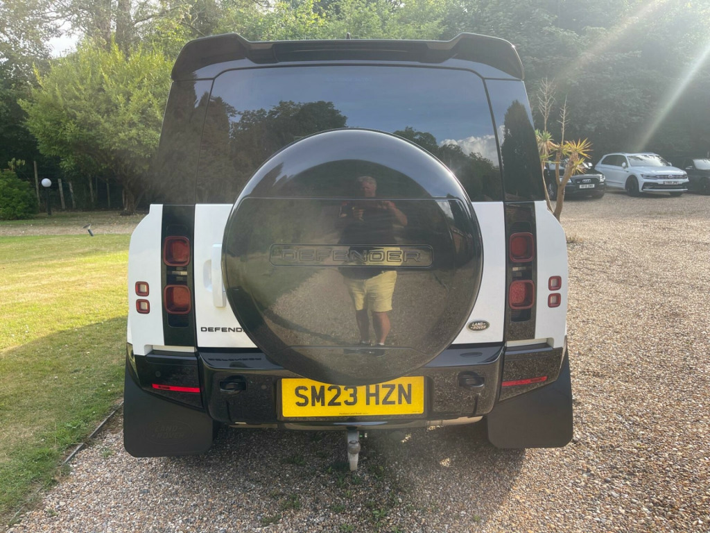 A very Good example with full service history. Recent Full service, Front Tyres, Brake pads and discs. Finished in White with Black Leather and Black Exterior design pack. Side Steps, Opening Panoramic sunroof, Reverse Camera, SAT NAV, Heated Seats, Black Tailgate spoiler etc. This 2023 Land Rover Defender 110 D250 X-Dynamic SE is a modern vehicle ready for whatever you need. The X-Dynamic SE trim complements the robust design of this four-wheel-drive vehicle. It features a 3.0L diesel engine and meets Euro 6 emission standards. The exterior is enhanced with an extended black exterior pack and 20-inch alloy wheels in a six-spoke gloss black design. The towing pack, including a tow bar, means it's equipped to tow up to 3500 kg. Inside, enjoy the convenience of 2-zone automatic climate control and seamless smartphone integration with Apple CarPlay.The Land Rover Defender 110 offers a swift 0-60mph acceleration time of just 7.9 seconds, making it quicker off the mark than similar vehicles. It also falls into a low insurance group, potentially saving you money on premiums when compared to other vehicles in its class. Plus, the large boot space offers practicality, providing more room for your belongings than you might find in comparable models. in touchscreen, 12-way heated - electric memory front seats with 2-way manual headrests, 12v socket in loadspace, 2-zone automatic climate control, 20in alloy wheels - style 5094 - 5 spoke - satin dark grey, 20in full size spare wheel, 360 degree parking aid, 3d surround camera, 40-20-40 folding rear seats with centre armrest, abs - anti lock braking system, acc - adaptive cruise control, ahba - auto high beam assist, airbags - driver, airbags - front passenger, all season tyres, alpine lights, android auto, apple carplay, assisted tailgate with soft close, auto-dimming interior rear view mirror, automatic headlight levelling, automatic headlights and rain sensing wipers, black contrast roof, black exposed rear recovery eyes, black roof rails, blind spot assist, brake hold, brake pad wear indicator, cbc - cornering brake control, carpet mats, centre console with armrest, centre high mounted stop light, coil suspension, cross car beam in light grey powder coat brushed finish, customer configurable autolock, dsc - dynamic stability control, digital audio broadcast radio - dab, driver condition monitor, durable rubber cabin flooring, durable rubber loadspace flooring, eba - emergency brake assist, ebd - electronic brake-force distribution, epas - electric power assisted steering, etc - electronic traction control, electric cabin pre-conditioning, electric parking brake, electric windows with one-touch open-close and anti-trap, emergency braking, follow me home lighting, footwell lights - front, front airbags with passenger seat occupant detector, front fog lights, front passenger seat isofix, glovebox storage, hdc - hill descent control, headlining - ebony morzine, heated electric power fold door mirrors with approach lights and auto-dimming driver side, heated rear window with timer, heated windscreen, hill launch assist, interactive driver display, intrusion sensor, keyless entry, led tail lights, less wireless charger, lane keep assist, loadspace cover, loadspace hooks, locking wheel nuts, low traction launch, manually adjustable steering column, meridian sound system, non smokers pack, online pack with data plan, pivi pro - connected, power operated child locks, premium cabin lighting, premium led headlights with signature drl, premium non-leather steering wheel, privacy glass, puddle lights, push button start, rsc - roll stability control, rear fog lights, rear isofix, rear reading lights, rear traffic monitor, rear wash wiper, remote, resist gearshift, seat belt reminder, seats - rear centre head restraint, secure tracker - 12 month subscription, side-hinged tailgate, signature graphic - with interior storage, sliding panoramic roof, standard interior, standard seating configuration - 5 seats, sun visors - illuminated vanity mirrors, tpms - tyre pressure monitoring system, tsa - trailer stability assist, terrain response, traffic sign recognition and adaptive speed limiter, trip computer, twin front cupholders, twin speed transfer box - high-low range, wade sensing, x-dynamic badge, x-dynamic exterior pack, x-dynamic treadplates, 11.4in touchscreen, sound system, 20in alloy wheels - style 6011- 6 spoke - gloss black, extended black exterior pack, spare wheel cover - body coloured, towing pack