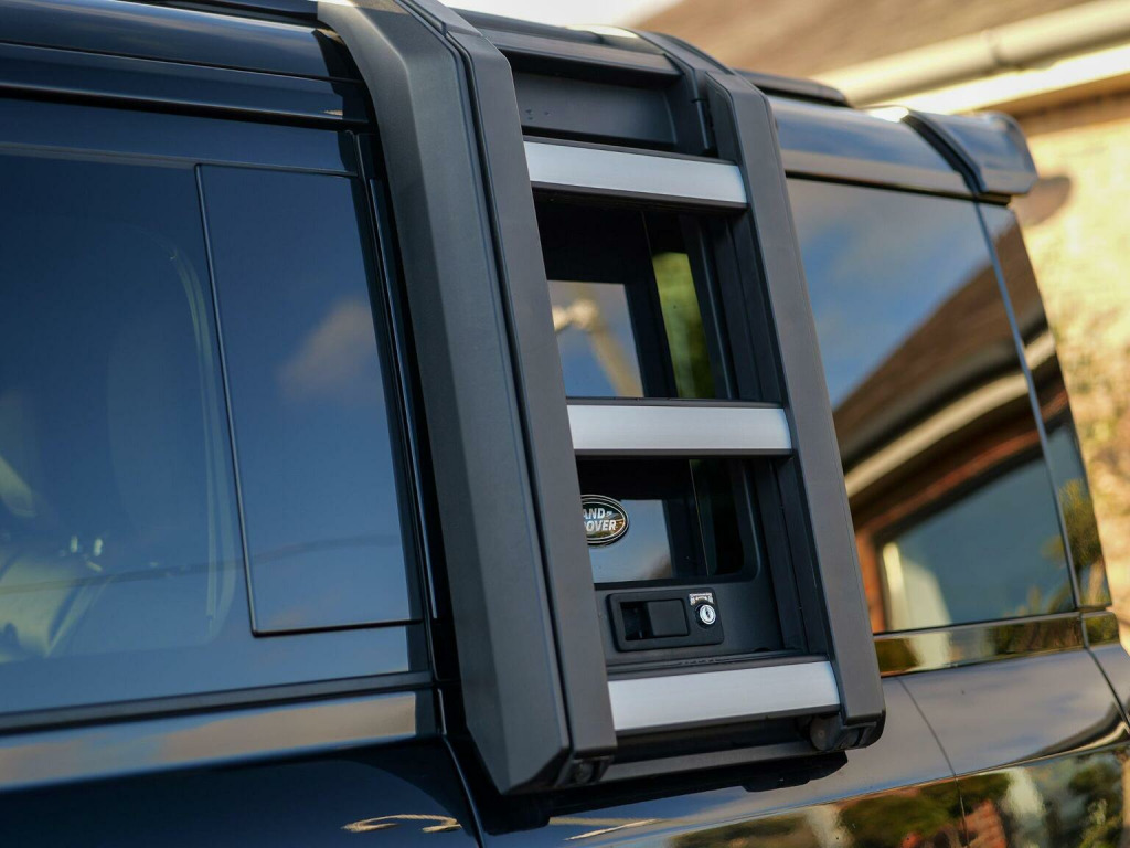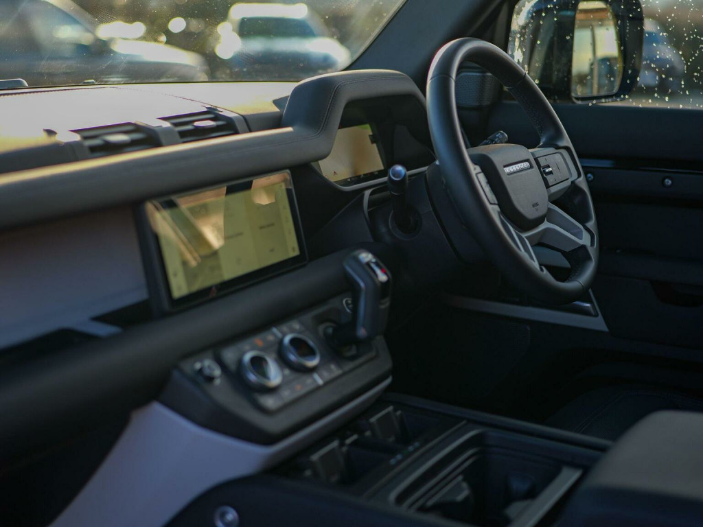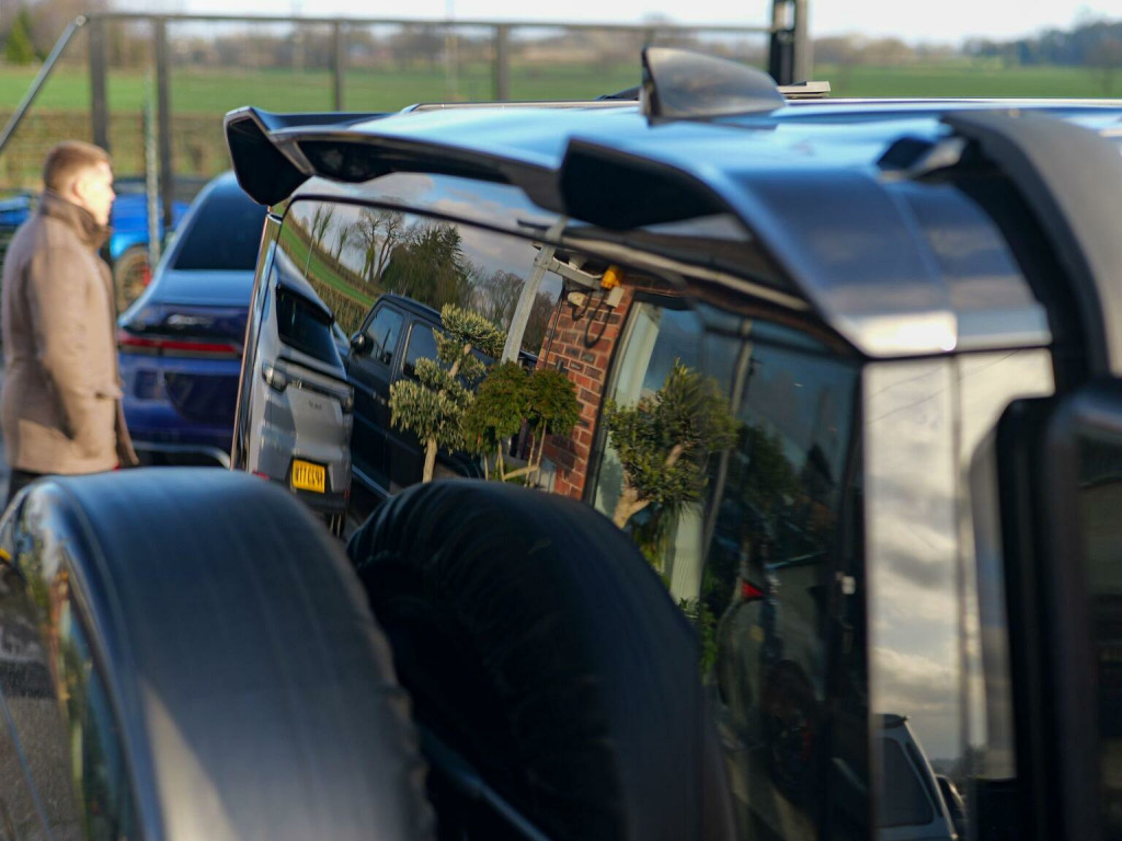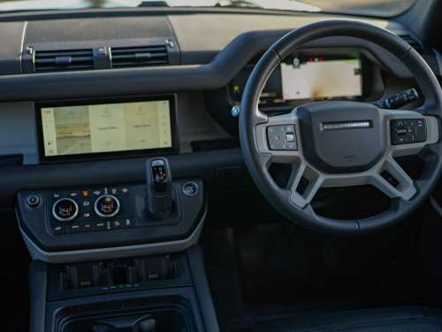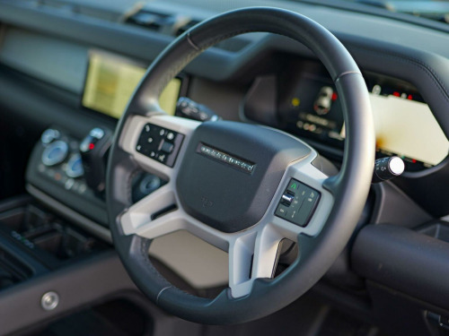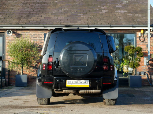 Warford Cars are proud to present stunning Land Rover Defender 110 D250 X-Dynamic SE in Santorini Black with Ultimate Black Interior. The car is optioned Extended Black Exterior Pack, Body Coloured Roof and 22-Inch Full Size Spare Wheel. Key features on the car include Wire Apple CarPlay / Android Auto, Opening Sunroof with Powered Blind, Heated Electric Memory Front Seats, Meridian Sound System, Front & Rear Sensors with 360 Camera, Fixed Side Steps, Dual Zone Climate Control, Cruise Control, Heated Front & Rear Windscreens, Privacy Glass and Power Folding Wing Mirrors. The car also features additional exterior extras from Riviera including 23-Inch Black Wheels, Carbon Effect Roof Pod Light Bar, Side Box and Lip Spoiler. The car has had its first service at Land Rover Knutsford on 05/02/2026 at 22395 miles and comes with Manufacturers Warranty until March 2027. Viewings Strictly by Appointment Only. Competitive Finance Options Available. Extended Warranty Available. Professional GTechniq Accredited Detailing Available. Call directly to arrange a viewing on 07537 165874