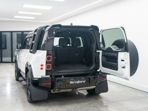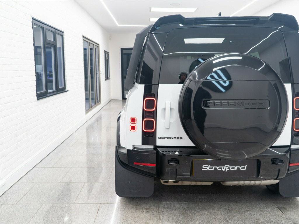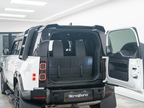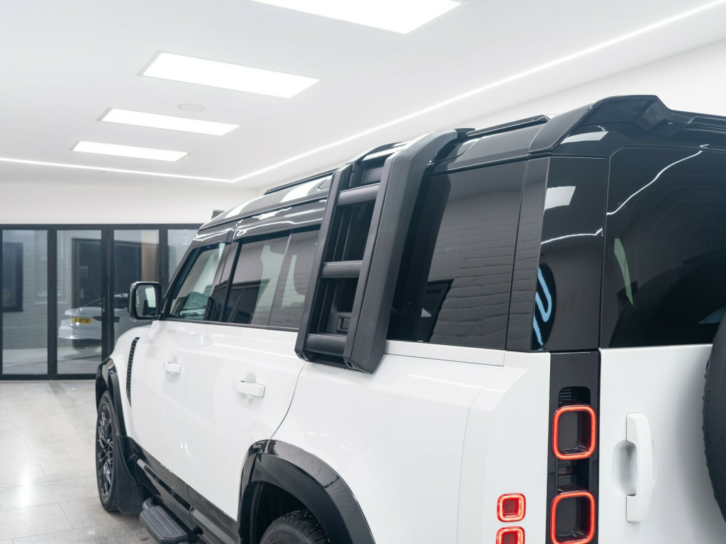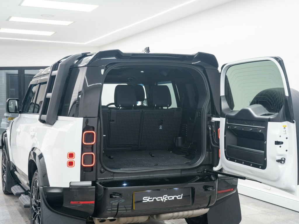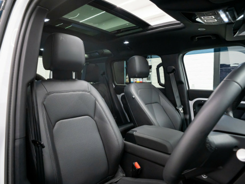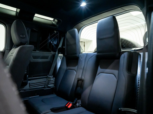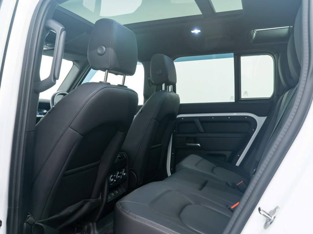 x usb-c - power only - 1 x usb-c - power and data in row 1 - 2 x usb-c in row 2 and 2 x usb-c in row 3, 11.4in touchscreen, 12v power sockets in row 1 and load space, android auto, apple carplay, digital audio broadcast radio - dab, meridian sound system, online pack with data plan, pivi pro - connected, remote, wireless device charging, 12-way heated - electric memory front seats with 2-way manual headrests, 2-zone automatic climate control, 40-20-40 folding rear seats with centre armrest, alpine lights, auto-dimming interior rear view mirror, black exposed rear recovery eyes, carpet mats, centre console with armrest, configurable cabin lighting, cross car beam in light cloud powder coat finish, durable rubber cabin flooring, durable rubber loadspace flooring, electric cabin pre-conditioning, footwell lights - front, glovebox storage, headlining - ebony morzine, illuminated metal treadplates with brand-name script, interactive driver display, loadspace cover, loadspace hooks, manually adjustable steering column, no flat load floor storage, non smokers pack, premium non-leather steering wheel, push button start, rear reading lights, resist gearshift, seats - rear centre head restraint, side-hinged tailgate, standard interior, standard seating configuration, sun visors - illuminated vanity mirrors, twin front cupholders, 20in alloy wheels - style 5094 - 5 spoke - satin dark grey, 20in full size spare wheel, all season tyres, black contrast roof, black roof rails, body coloured bonnet, electric windows with one-touch open-close and anti-trap, heated electric power fold door mirrors with approach lights and auto-dimming driver side, heated rear window with timer, heated windscreen, locking wheel nuts, privacy glass, rear fog lights, signature graphic - with interior storage, sliding panoramic roof, standard tail door, 360 degree parking aid, 3d surround camera, acc - adaptive cruise control, blind spot assist, brake pad wear indicator, coil suspension, driver condition monitor, epas - electric power assisted steering, rear collision monitor, tpms - tyre pressure monitoring system, terrain response, traffic sign recognition and adaptive speed limiter, trip computer, twin speed transfer box - high-low range, abs - anti lock braking system, brake hold, cbc - cornering brake control, customer configurable autolock, dsc - dynamic stability control, eba - emergency brake assist, ebd - electronic brake-force distribution, etc - electronic traction control, electric parking brake, emergency braking, front airbags with passenger seat occupant detector, front passenger seat isofix, hdc - hill descent control, hill launch assist, intrusion sensor, keyless entry, lane keep assist, low traction launch, power operated child locks, rsc - roll stability control, rear isofix, rear traffic monitor, rear wash wiper, seat belt reminder, secure tracker pro, tsa - trailer stability assist, ahba - auto high beam assist, automatic headlight levelling, automatic headlights and rain sensing wipers, centre high mounted stop light, follow me home lighting, led headlights with signature drl, led tail lights, puddle lights
