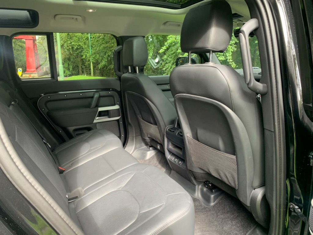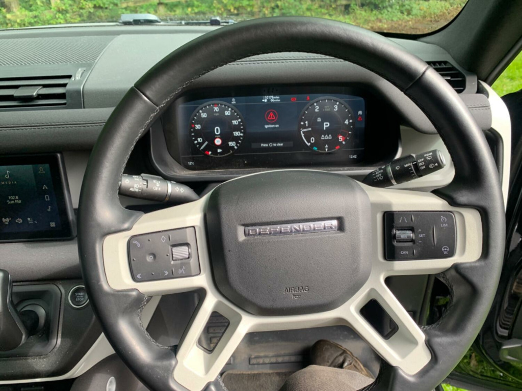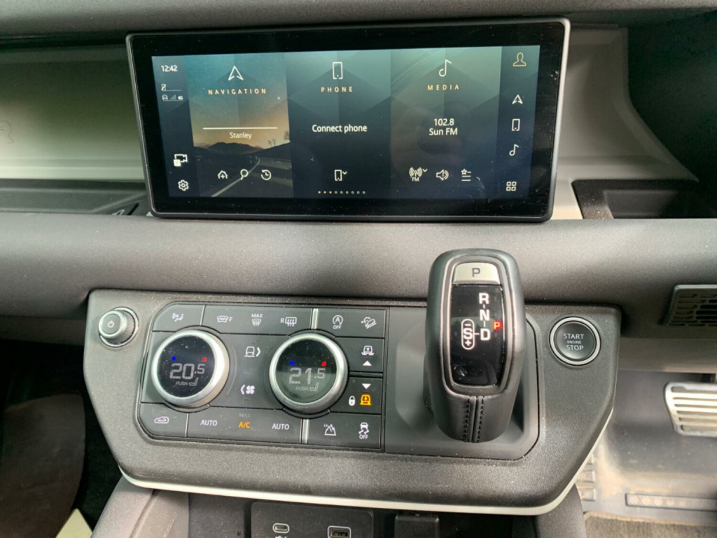 , , 10 touch screen, 360 degree parking aid, 3D Surround Camera with 360 View, 180 Rear View, Front Traffic Detection, Forward Vehicle Guidance, Tow Hitch Assist and clear sight Ground View, Android Auto, Apple CarPlay, Blind spot assist, Bluetooth system, Clear exit monitor, Click and go integrated base unit, Connected navigation pro, Driver condition monitor, Interactive driver display, Lane keep assist, PAS, Pivi Pro connected navigation system with upgraded Infotainment, Rear traffic monitor, Traffic sign recognition with adaptive speed limiter, Trip computer, Wade Sensing, Adaptive dynamics, Electronic air suspension, DAB Radio (Digital Audio Broadcasting), Meridian 400w sound audio system with 11 speakers and subwoofer, Auto high beam assist, Automatic headlight levelling, Automatic headlights, ClearSight interior rear view mirror, Front fog lights, Heated windscreen, LED tail lights, Power fold, auto-dimming, heated door mirrors with memory and approach lights, Premium LED headlights with signature DRL, Puddle lights, Rain sensing windscreen wipers, Signature graphic (with interior storage), Standard tread plates, Air quality sensor, Cabin air ionisation, Carpet mats, Electric reach + rake adjustable steering column, Front passenger isofix child seat attachment, Loadspace cover, Morzine headlining, Multifunction steering wheel, Rear headrests, Rear ISOFIX, Sunvisors with illuminated vanity mirrors, Three-zone Climate Control with Rear Cooling Assist, Twin front cupholders with cover, Online pack with data plan - Defender, ABS, Driver and passenger airbags, Emergency braking, ESP + traction control, TPMS (Tyre pressure monitoring system), Alarm, Immobiliser, Intrusion sensor, Keyless entry and go, Locking wheel nuts, Remote locking, , ,