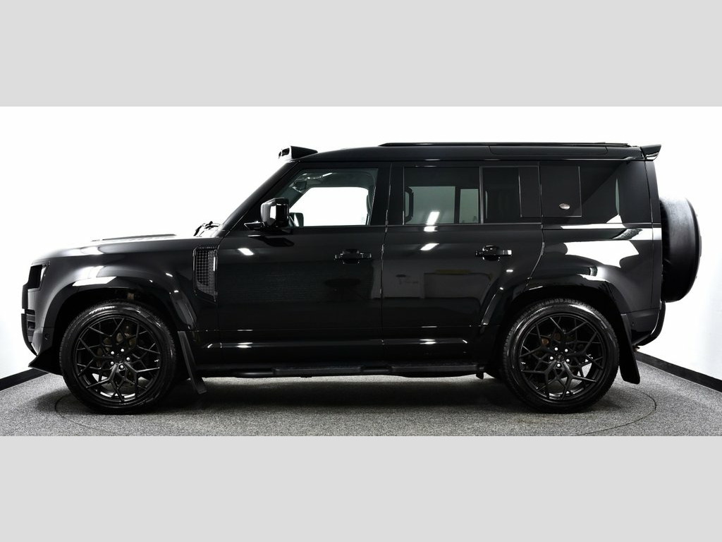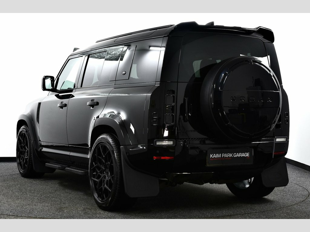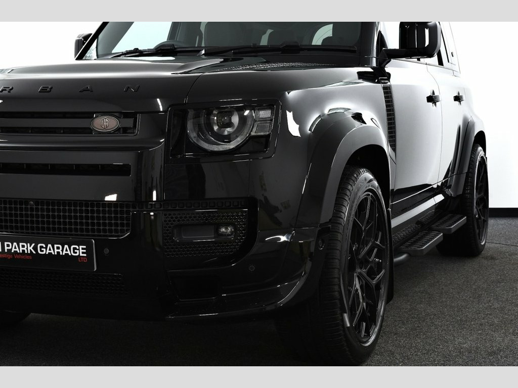 Santorini Black metallic with Perforated Grained Leather Interior - Ebony, 1 Owner from New covered only 12k miles, We are delighted to offer to the market this Stunning 110 Defender with URBAN styling finished in the beautiful colour combo and boasting Massive Spec including £16,500 Extra's! SPECIFICATION INCLUDES - Exterior Design Pack - (Rear spoiler in Gloss black, Black shadow side steps, URBAN Premium spare wheel protector, LR Extended wheel arch set and Canards, Extended black styling to exterior, Classic mud flaps, URBAN badge kit, Rear light covers), 22" URBAN UC-5 alloy wheels in Satin black finish on Pirelli tyres, Quad LED roof light pod, Panoramic glass sunroof - electric tilt/slide, Matrix LED headlights with signature DRL, 3D Surround Camera with 360 View, 180 Rear View, Front Traffic Detection, Forward Vehicle Guidance, Tow Hitch Assist and clear sight Ground View, Assisted tailgate with soft close, ClearSight interior rear view mirror, Illuminated metal tread plates with brand name script, XS Edition exterior pack, Blind spot assist, Privacy glass, Driver condition monitor, Lane keep assist, Traffic sign recognition with adaptive speed limiter, Adaptive dynamics, Electronic air suspension, Puddle lights, Heated windscreen, Electric heated/power fold door mirrors with approach lights and auto dimming driver side, Keyless entry and go, 12 way heated and cooled electric memory front seats with 2 way manual headrests, Electric cabin pre conditio Exterior Design Pack - (Rear spoiler in , 22" URBAN UC-5 alloy wheels in Sati, Quad LED roof light pod