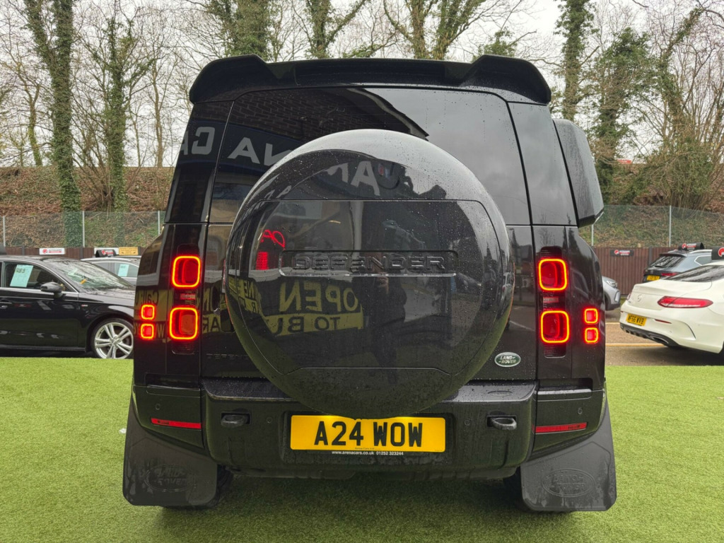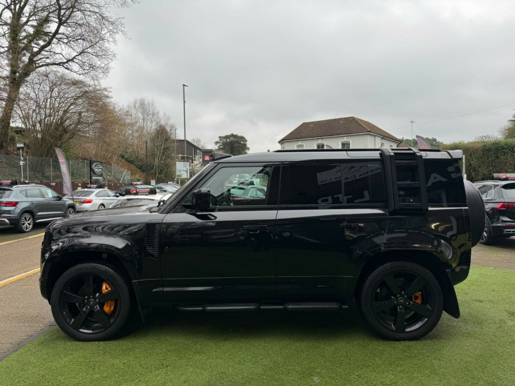 Just been serviced at Landrover Guildford.With only 8299 miles on the clock, this 2023 Land Rover Defender 110 D300 X-Dynamic HSE is practically brand new. This four-wheel drive car is powered by a 3.0L diesel engine and meets Euro 6 emission standards. The vehicle's X-Dynamic HSE trim includes desirable features such as 22in Alloy Wheels in Gloss Black, a heated steering wheel, and 14-way heated and cooled electric memory front seats. For added security, it comes with Secure Tracker Pro, and for connectivity, it offers Wi-Fi with a data plan. Rest assured, this Defender has a clear vehicle history check and an MOT valid until April 2026.This Defender 110 stands out with its impressive towing capacity of 3500 kg, making it suitable for various tasks. The large boot space is a real plus, offering ample room for luggage, equipment, or shopping. Furthermore, the vehicle accelerates from 0-60mph in just 6.6 seconds, demonstrating its responsive performance on the road.. 12V Socket in Loadspace, 14-Way Heated and Cooled Electric Memory Front Seats with 4-Way Manual Headrests, 2-Zone Automatic Climate Control, 360 Degree Parking Aid, 3D Surround Camera, 40-20-40 Folding Rear Seats with Centre Armrest, ABS - Anti Lock Braking System, ACC - Adaptive Cruise Control, AHBA - Auto High Beam Assist, Adaptive Dynamics, Airbags - Driver, Airbags - Front Passenger, All Season Tyres, Alpine Lights, Android Auto, Apple CarPlay, Assisted Tailgate with Soft Close, Auto-Dimming Interior Rear View Mirror, Automatic Headlight Levelling, Automatic Headlights and Rain Sensing Wipers, Black Contrast Roof, Black Exposed Rear Recovery Eyes, Black Roof Rails, Blind Spot Assist, Brake Hold, Brake Pad Wear Indicator, CBC - Cornering Brake Control, Carpet Mats, Centre Console with Armrest, Centre High Mounted Stop Light, Clear Exit Monitor, Click and Go Integrated Base Unit, Cross Car Beam in Light Grey Powder Coat Brushed Finish, Customer Configurable Autolock, D300 Badge, DSC - Dynamic Stability Control, Digital Audio Broadcast Radio - DAB, Driver Condition Monitor, Durable Rubber Cabin Flooring, Durable Rubber Loadspace Flooring, EBA - Emergency Brake Assist, EBD - Electronic Brake-Force Distribution, EPAS - Electric Power Assisted Steering, ETC - Electronic Traction Control, Electric Cabin Pre-conditioning, Electric Parking Brake, Electric Windows with One-Touch Open-Close and Anti-Trap, Electrically Adjustable Steering Column, Electronic Air Suspension, Emergency Braking, Extended Leather Upgrade, Follow Me Home Lighting, Footwell Lights - Front, Front Airbags with Passenger Seat Occupant Detector, Front Fog Lights, Front Passenger Seat ISOFIX, Glovebox Storage, HDC - Hill Descent Control, Headlining - Ebony Morzine, Heated Electric Power Fold Door Mirrors with Approach Lights and Auto-dimming Driver Side, Heated Rear Window with Timer, Heated Steering Wheel, Heated Windscreen, Hill Launch Assist, Illuminated X-Dynamic Treadplates, Interactive Driver Display, Intrusion Sensor, Keyless Entry, LED Tail Lights, LESS Wireless Charger, Lane Keep Assist, Leather Gearshift, Loadspace Cover, Loadspace Hooks, Locking Wheel Nuts, Low Traction Launch, Meridian Sound System, Non Smokers Pack, Online Pack with Data Plan, Overhead Stowage for Sunglasses, Pivi Pro - Connected, Power Operated Child Locks, Premium Cabin Lighting, Premium LED Headlights with Signature DRL, Privacy Glass, Puddle Lights, Push Button Start, RSC - Roll Stability Control, Rear Collision Monitor, Rear Fog Lights, Rear ISOFIX, Rear Reading Lights, Rear Traffic Monitor, Rear Wash Wiper, Remote, Seat Belt Reminder, Seats - Rear Centre Head Restraint, Secure Tracker - 12 Month Subscription, Side-Hinged Tailgate, Signature Graphic - with Interior Storage, Sliding Panoramic Roof, Sun Visors - Illuminated Vanity Mirrors, TPMS - Tyre Pressure Monitoring System, TSA - Trailer Stability Assist, Terrain Response, Traffic Sign Recognition and Adaptive Speed Limiter, Trip Computer, Twin Front Cupholders with Cover, Twin Speed Transfer Box - High-Low Range, Wade Sensing, X-Dynamic Badge, X-Dynamic Exterior Pack, Leather Steering Wheel, Secure Tracker Pro - 12 Month Subscription, 22in Alloy Wheels - Style 5098 - 5 Spoke - Gloss Black, Wi-Fi Enabled with Data Plan, 22in Full Size Spare Wheel, Roof Lightbar, Rear Spoiler, Side Steps, Orange Brake Calipers, Side Ladder, Side Storage Box, Rear Privacy Glass, Larger Touch Screen, Spare Wheel Cover - Body Coloured, Cabin Pre-Conditioning, Ambient Lighting - Various Colours. Full service history