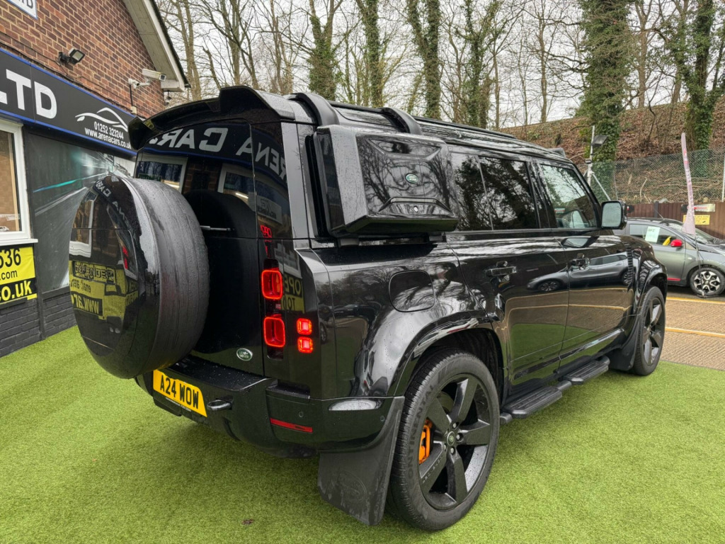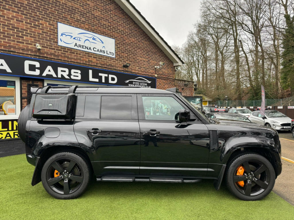 Just been serviced at Landrover Guildford.With only 8299 miles on the clock, this 2023 Land Rover Defender 110 D300 X-Dynamic HSE is practically brand new. This four-wheel drive car is powered by a 3.0L diesel engine and meets Euro 6 emission standards. The vehicle's X-Dynamic HSE trim includes desirable features such as 22in Alloy Wheels in Gloss Black, a heated steering wheel, and 14-way heated and cooled electric memory front seats. For added security, it comes with Secure Tracker Pro, and for connectivity, it offers Wi-Fi with a data plan. Rest assured, this Defender has a clear vehicle history check and an MOT valid until April 2026.This Defender 110 stands out with its impressive towing capacity of 3500 kg, making it suitable for various tasks. The large boot space is a real plus, offering ample room for luggage, equipment, or shopping. Furthermore, the vehicle accelerates from 0-60mph in just 6.6 seconds, demonstrating its responsive performance on the road. ather steering wheel, secure tracker pro - 12 month subscription, 22in alloy wheels - style 5098 - 5 spoke - gloss black, wi-fi enabled with data plan, 22in full size spare wheel, roof lightbar, rear spoiler, side steps, orange brake calipers, side ladder, side storage box, rear privacy glass, larger touch screen, spare wheel cover - body coloured, cabin pre-conditioning, ambient lighting - various colours, 12v socket in loadspace, 14-way heated and cooled electric memory front seats with 4-way manual headrests, 2-zone automatic climate control, 360 degree parking aid, 3d surround camera, 40-20-40 folding rear seats with centre armrest, abs - anti lock braking system, acc - adaptive cruise control, ahba - auto high beam assist, adaptive dynamics, airbags - driver, airbags - front passenger, all season tyres, alpine lights, android auto, apple carplay, assisted tailgate with soft close, auto-dimming interior rear view mirror, automatic headlight levelling, automatic headlights and rain sensing wipers, black contrast roof, black exposed rear recovery eyes, black roof rails, blind spot assist, brake hold, brake pad wear indicator, cbc - cornering brake control, carpet mats, centre console with armrest, centre high mounted stop light, clear exit monitor, click and go integrated base unit, cross car beam in light grey powder coat brushed finish, customer configurable autolock, d300 badge, dsc - dynamic stability control, digital audio broadcast radio - dab, driver condition monitor, durable rubber cabin flooring, durable rubber loadspace flooring, eba - emergency brake assist, ebd - electronic brake-force distribution, epas - electric power assisted steering, etc - electronic traction control, electric cabin pre-conditioning, electric parking brake, electric windows with one-touch open-close and anti-trap, electrically adjustable steering column, electronic air suspension, emergency braking, extended leather upgrade, follow me home lighting, footwell lights - front, front airbags with passenger seat occupant detector, front fog lights, front passenger seat isofix, glovebox storage, hdc - hill descent control, headlining - ebony morzine, heated electric power fold door mirrors with approach lights and auto-dimming driver side, heated rear window with timer, heated steering wheel, heated windscreen, hill launch assist, illuminated x-dynamic treadplates, interactive driver display, intrusion sensor, keyless entry, led tail lights, less wireless charger, lane keep assist, leather gearshift, loadspace cover, loadspace hooks, locking wheel nuts, low traction launch, meridian sound system, non smokers pack, online pack with data plan, overhead stowage for sunglasses, pivi pro - connected, power operated child locks, premium cabin lighting, premium led headlights with signature drl, privacy glass, puddle lights, push button start, rsc - roll stability control, rear collision monitor, rear fog lights, rear isofix, rear reading lights, rear traffic monitor, rear wash wiper, remote, seat belt reminder, seats - rear centre head restraint, secure tracker - 12 month subscription, side-hinged tailgate, signature graphic - with interior storage, sliding panoramic roof, sun visors - illuminated vanity mirrors, tpms - tyre pressure monitoring system, tsa - trailer stability assist, terrain response, traffic sign recognition and adaptive speed limiter, trip computer, twin front cupholders with cover, twin speed transfer box - high-low range, wade sensing, x-dynamic badge, x-dynamic exterior pack