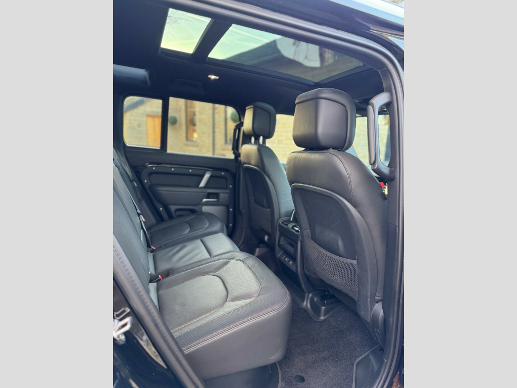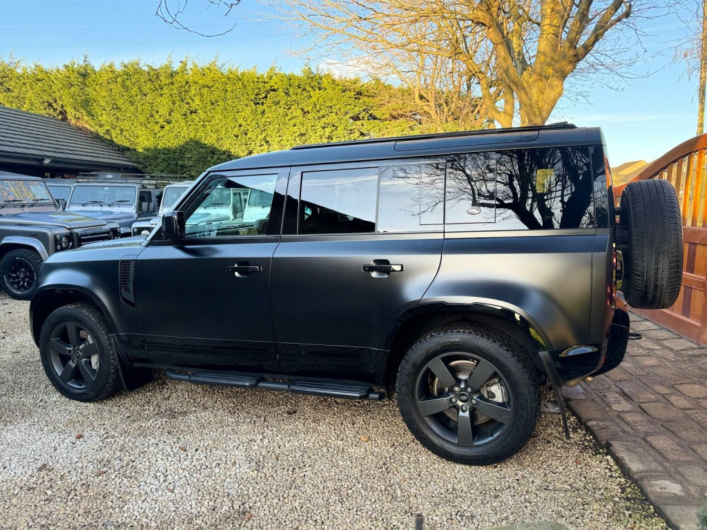This 2023 Land Rover Defender 110 D300 X Dynamic HSE is a superb example, having had only one owner since new. Huge factory spec including deployable towbar, center fridge, heated seats, pan roof, 360 cameras, heated steering wheel, air suspension, full satin PPF protection coating £7000, full Land Rover service history, It boasts a powerful 3.0 litre diesel engine paired with a robust Four Wheel Drive system, meeting Euro 6 emission standards. Inside, youll find a luxurious Meridian Surround Sound System to enhance your journeys, and the opening sliding panoramic roof brings the outside in. For comfort and convenience, it features 2 zone automatic climate control and keyless entry, while adaptive cruise control makes longer drives more relaxed. This Defender 110 offers impressive performance, accelerating from 0 to 60mph in just 6.6 seconds, demonstrating its capability. Its substantial towing weight of 3500 kg means its ready for any adventure or task. Furthermore, the generous boot space provides ample room for luggage or equipment, making it a practical choice. This particular model also benefits from a low insurance group, indicating it could be more economical to own compared to similar vehicles.