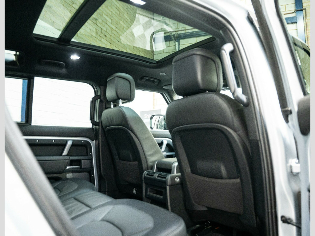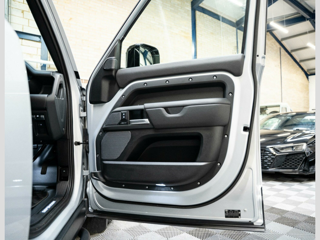 This 2024 Land Rover Defender 110 D300 X Dynamic HSE is a superb example, having had only one owner from new. This impressive four wheel drive vehicle is powered by a 3.0 litre diesel engine, meeting Euro 6 emission standards. It boasts a substantial towing weight of 3500 kg, making it highly capable. Notable features include striking 22 inch alloy wheels in both Gloss Sparkle Silver and Gloss Black, an Extended Black Exterior Pack for a commanding presence, and a Head Up Display for enhanced driver convenience. For added peace of mind, it comes with a Secure Tracker Pro subscription valid for 12 months from the date of first registration.The Defender 110 D300 X Dynamic HSE offers a compelling blend of performance and practicality. Its acceleration is noteworthy, reaching 0 to 60 mph in just 6.6 seconds, a testament to its powerful engine. This model also benefits from a low insurance group, which can help reduce running costs. Furthermore, the generous boot space ensures ample room for luggage, equipment, or shopping, making it an ideal choice for families and adventurers alike. These highlights demonstrate how this Defender 110 stands out from other vehicles in its class. ridian surround sound system, head up display, secure tracker pro (12 month subscription from new), black contrast signature graphic with interior storage, electrically deployable towbar, extended black exterior pack, air suspension pack, cabin pre-conditioning, 11.4in touchscreen, 12v socket in loadspace, 14-way heated and cooled electric memory front seats with 4-way manual headrests, 2-zone automatic climate control, 20in alloy wheels - style 5098 - 5 spoke - satin dark grey, 20in full size spare wheel, 360 degree parking aid, 3d surround camera, 40-20-40 folding rear seats with centre armrest, abs - anti lock braking system, acc - adaptive cruise control, ahba - auto high beam assist, airbags - driver, airbags - front passenger, all season tyres, alpine lights, android auto, apple carplay, assisted tailgate with soft close, automatic headlight levelling, automatic headlights and rain sensing wipers, black contrast roof, black exposed rear recovery eyes, black roof rails, blind spot assist, brake hold, brake pad wear indicator, cbc - cornering brake control, carpet mats, centre console with armrest, centre high mounted stop light, clearsight interior rear view mirror, coil suspension, cross car beam in light grey powder coat brushed finish, customer configurable autolock, dsc - dynamic stability control, digital audio broadcast radio - dab, driver condition monitor, durable rubber cabin flooring, durable rubber loadspace flooring, eba - emergency brake assist, ebd - electronic brake-force distribution, epas - electric power assisted steering, etc - electronic traction control, electric cabin pre-conditioning, electric parking brake, electric windows with one-touch open-close and anti-trap, electrically adjustable steering column, emergency braking, extended leather upgrade, follow me home lighting, footwell lights - front, front airbags with passenger seat occupant detector, front fog lights, front passenger seat isofix, glovebox storage, hdc - hill descent control, headlining - ebony morzine, heated electric power fold door mirrors with approach lights and auto-dimming driver side, heated rear window with timer, heated steering wheel, heated windscreen, hill launch assist, interactive driver display, intrusion sensor, keyless entry, led tail lights, less wireless charger, lane keep assist, leather gearshift, loadspace cover, loadspace hooks, locking wheel nuts, low traction launch, meridian sound system, non smokers pack, online pack with data plan, pivi pro - connected, power operated child locks, premium cabin lighting, premium led headlights with signature drl, privacy glass, puddle lights, push button start, rsc - roll stability control, rear collision monitor, rear fog lights, rear isofix, rear reading lights, rear traffic monitor, rear wash wiper, remote, seat belt reminder, seats - rear centre head restraint, secure tracker (12 month subscription from new), side-hinged tailgate, signature graphic - with interior storage, sliding panoramic roof, standard leather steering wheel, standard seating configuration - 5 seats, sun visors - illuminated vanity mirrors, tpms - tyre pressure monitoring system, tsa - trailer stability assist, terrain response, traffic sign recognition and adaptive speed limiter, trip computer, twin front cupholders with cover, twin speed transfer box - high-low range, wade sensing, x-dynamic badge, x-dynamic exterior pack, x-dynamic treadplates