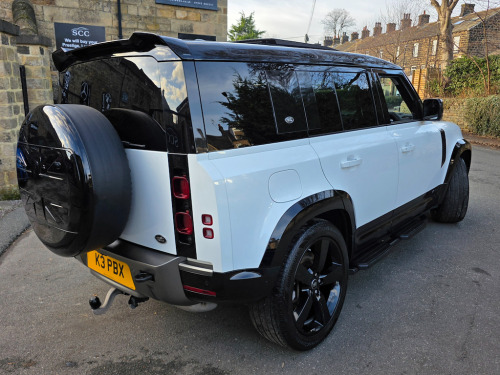 Experience the ultimate in luxury and performance with this stunning Land Rover Defender 110. Obviously apart from the Landrover std specification and its nice list of options the standout feature is how this looks. Gloss black wide arch kit makes those huge 22inch V8 wheels look just right. Incorporated with the look is a full stealth kit with gloss black roof and black badging. The rear tailgate spoiler, side steps and spare wheel carrier complete the look! This exceptional SUV boasts a powerful 3.0L diesel engine and an 8-speed automatic transmission, but it also features 22in Alloy Wheels - Style 5098 - 5 Spoke - Gloss Black, adding a touch of sophistication and style to its formidable presence on the road. Step inside to enjoy the comfort of 14-Way Heated and Cooled Electric Memory Front Seats, designed with 4-Way Manual Headrests for your convenience. This feature ensures that every journey is a pleasurable experience, whether you're commuting or adventuring off the beaten path. The vehicle's advanced 10in Touchscreen allows for seamless connectivity and control over your driving experience, enhancing the overall enjoyment and ease of use. Safety is paramount, and this Defender comes equipped with a 360 Degree Parking Aid, providing you with confidence and peace of mind when navigating tight spaces. Additionally, the ABS - Anti Lock Braking System and AHBA - Auto High Beam Assist further enhance your safety on the road, ensuring that you can drive with assurance in any conditions. Service history is pictured and boasts specialist history with JD Automotive in Cheshire - one of the countries leading independent LR specialist centre. Don't miss the chance to own this remarkable vehicle. Contact us to book a test drive today or call 01943884551 for more information. 10in Touchscreen,12V Socket in Loadspace,14-Way Heated and Cooled Electric Memory Front Seats with 4-Way Manual Headrests,20in Full Size Spare Wheel,360 Degree Parking Aid,3D Surround Camera,40-20-40 Folding Rear Seats with Centre Armrest,ABS - Anti Lock Braking System,ACC - Adaptive Cruise Control,AHBA - Auto High Beam Assist,Adaptive Dynamics,Airbags - Driver,Airbags - Front Passenger,All Season Tyres,Android Auto,Apple CarPlay,Assisted Tailgate with Soft Close,Automatic Headlight Levelling,Automatic Headlights and Rain Sensing Wipers,Black Exposed Rear Recovery Eyes,Blind Spot Assist,Body Coloured Roof,Cabin Lighting,Carpet Mats,Centre Console with Armrest,Clear Exit Monitor,ClearSight Interior Rear View Mirror,Click and Go Integrated Base Unit,Cross Car Beam in Light Grey Powder Coat Brushed Finish,D240 Badge,D300 Badge,DAB - Digital Audio Broadcast,Door Mirrors - Heated - Power Fold with Approach Lights and Auto-Dimming,Driver Condition Monitor,Electrically Adjustable Steering Column,Electronic Air Suspension,Emergency Braking,Extended Leather Upgrade,Front Fog Lights,Front Passenger Seat ISOFIX,HSE Badge,Headlining - Ebony Morzine,Heated Steering Wheel,Heated Windscreen,Hill Launch Assist,Illuminated Metal Treadplates with Brand-Name Script,Interactive Driver Display,Intrusion Sensor,Keyless Entry,LED Tail Lights,LESS CE Device Charging,LESS Roof Rack or Rails,Lane Keep Assist,Leather Gearshift,Leather Steering Wheel,Loadspace Cover,Loadspace Hooks,Locking Wheel Nuts,Matrix LED Headlights with Signature DRL,Meridian Sound System,Non Smokers Pack,Online Pack with Data Plan,Pivi Pro - Connected,Power Assisted Steering,Privacy Glass,Puddle Lights,Rear Collision Monitor,Rear Fog Lights,Rear ISOFIX,Rear Traffic Monitor,Remote,Secure Tracker (12 Month Subscription From New),Signature Graphic - with Interior Storage,Sliding Panoramic Roof,Sound System,Sun Visors - Illuminated Vanity Mirrors,TPMS - Tyre Pressure Monitoring System,TSA - Trailer Stability Assist,TVBB - Torque Vectoring by Braking,Terrain Response,Traffic Sign Recognition and Adaptive Speed Limiter,Wade Sensing,Windows - Electric Front,X-Dynamic Badge,X-Dynamic Exterior Pack,22in Alloy Wheels - Style 5098 - 5 Spoke - Gloss Black,Black Contrast Roof,Towing Pack,Fuji White,Detachable Towbar,Head Up Display