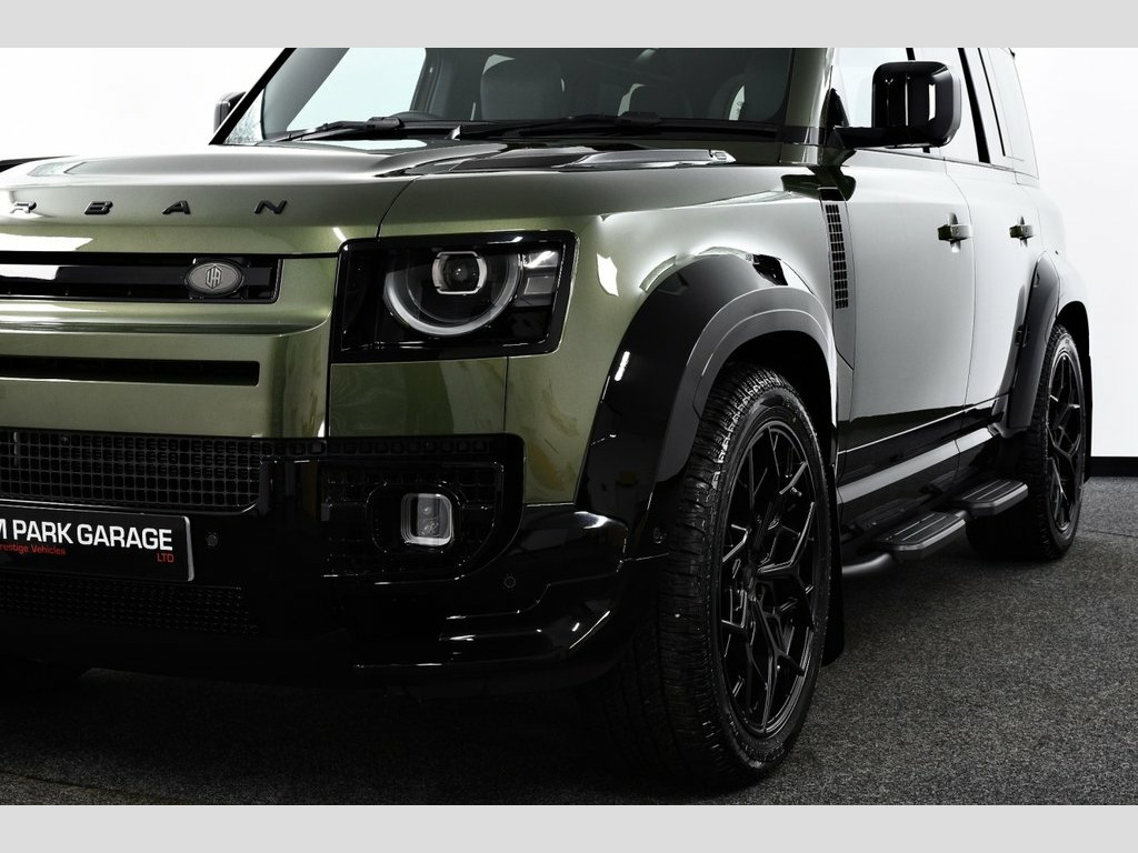 Woolstone Green metallic with Windsor Leather - Ebony, Ebony/Ebony colourway, Ebony morzine headlining, Delivery miles, 2026 model year car, Absolutely Gorgeous New model 110 with URBAN styling, finished in the new desirable colour combo and boasting the Air Suspension pack! THIS 110 COMES WITH THE FOLLOWING £23,420 EXTRA'S - URBAN Widetrack Exterior Pack - (Rear spoiler/Side steps/Premium spare wheel cover/Widetrack wheel arch set and canards/Extended black styling/URBAN branding//Classic Mud flaps/Square LED's/Bonnet vents/Black calipers), 22" URBAN UC-5 alloy wheels in Satin black finish on Yokohama tyres, Quad LED roof light pod, Air Suspension Pack, Electrically Deployable Towbar, Metallic - Woolstone Green, Cross car beam in dark grey powder coat brushed finish. STANDARD X-DYNAMIC HSE FEATURES INCLUDE - Sliding Panoramic glass sunroof, Privacy glass, 3D Surround Camera with 360 View, 180 Rear View, Front Traffic Detection, Forward Vehicle Guidance, Tow Hitch Assist and clear sight Ground View, Assisted tailgate with soft close, Blind spot assist, Matrix LED headlights with signature DRL, Driver condition monitor, Lane keep assist, Adaptive cruise control, Wade Sensing, Traffic sign recognition with adaptive speed limiter, X-Dynamic exterior pack, Adaptive dynamics, Illuminated metal tread plates with brand name script, Puddle lights, Heated windscreen, Electric heated/power fold door mirrors with approach lights and auto dimming driver side, Keyl URBAN Widetrack Exterior Pack - (Rear sp, 22" URBAN UC-5 alloy wheels in Sati, Quad LED roof light pod, Air Suspension Pack, Electrically Deployable Towbar, Metallic - Woolstone Green, Cross car beam in dark grey powder coat