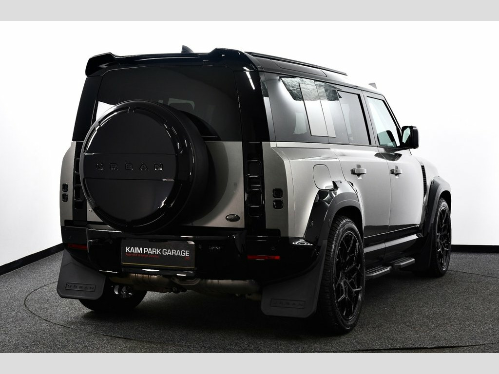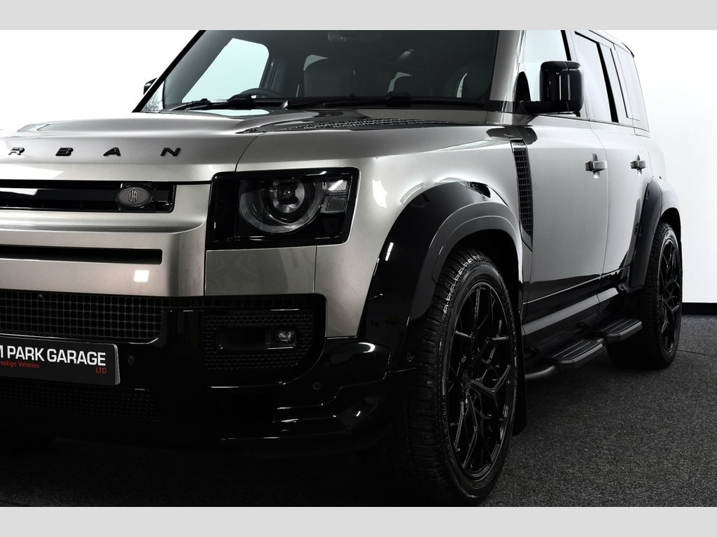 Silicon Silver metallic with Windsor Perforated Leather - Ebony, Covered only 12k miles, We are delighted to offer to the market this top of the range Gorgeous 110 with Massive Spec including the URBAN Widetrack styling and the desirable new D350 engine! THIS 110 COMES WITH THE FOLLOWING £26,270 EXTRA'S - Exterior Design Pack - (Rear spoiler, Black shadow side steps, URBAN Premium spare wheel protector, URBAN Widetrack wheel arch set and canards, Extended black styling to exterior, URBAN branding/badge kit, Rear Light covers, URBAN Mud flaps), 22" Urban UC-5 alloy wheels in Satin black finish on Yokohama tyres, Quad LED roof light pod, Air Suspension Pack, Contrast roof - Black, Electrically Deployable Towbar, Silicon Silver paint option, Family Pack (7 seats), Three-Zone Climate Control. STANDARD X-DYNAMIC HSE FEATURES INCLUDE - Sliding Panoramic glass sunroof, Privacy glass, 3D Surround Camera with 360 View, 180 Rear View, Front Traffic Detection, Forward Vehicle Guidance, Tow Hitch Assist and clear sight Ground View, Assisted tailgate with soft close, Blind spot assist, Matrix LED headlights with signature DRL, Driver condition monitor, Lane keep assist, Adaptive cruise control, Wade Sensing, Traffic sign recognition with adaptive speed limiter, X-Dynamic exterior pack, Adaptive dynamics, Illuminated metal tread plates with brand name script, Puddle lights, Heated windscreen, Electric heated/power fold door mirrors with approach lights and auto dimmin Exterior Design Pack - (Rear spoiler, Bl, 22" Urban UC-5 alloy wheels in Sati, Quad LED roof light pod, Air Suspension Pack, Contrast roof - Black, Electrically Deployable Towbar, Silicon Silver, Family Pack, Three-Zone Climate Control