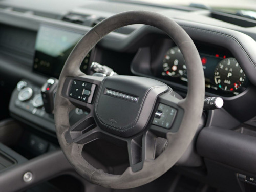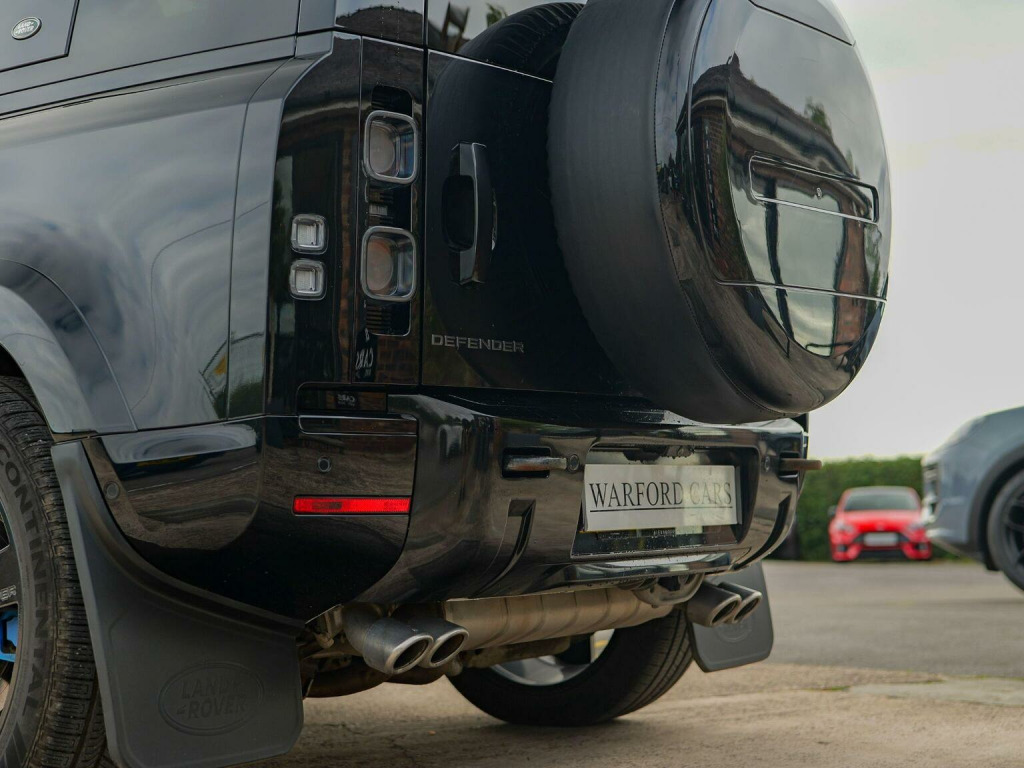 Warford Cars are proud to present this stunning Land Rover Defender 110 P525 V8 in Santorini Black with Ebony Leather Interior. Options on the car include Electric Deployable Towbar, Fixes Side Steps, Extended Black Exterior Pack, 22-Inch Gloss Black Wheels, Ebony Windsor Leather, Body Coloured Roof, 20-Inch Spare Wheel and Body Coloured Spare Wheel Cover. Key features include Opening Glass Panoramic Roof with Powered Blind, Meridian Surround Sound System, Wireless Apple CarPlay / Android Auto, ClearSight Rear View Mirror, Front & Rear Parking Sensors with 360 Cameras, Electric Memory Front Seats, Wireless Phone Charging, Heated Front & Rear Seats, Heated Steering Wheel, Cruise Control, Dual Zone Climate Control, Heated Front & Rear Windscreens, Fridge Cooled Centre Armrest Compartment, Quad Tailpipe Exhausts, Rear Privacy Glass, Power Folding Wing Mirrors, Land Rover Mud Flap Kit and Boot Lip Spoiler. The car comes with Full Land Rover Service History having been done 19/03/2024 at 6557 miles and 01/10/2025 at 15,873 miles. Viewings Strictly by Appointment Only. Competitive Finance Options Available. Extended Warranty Available. Professional GTechniq Accredited Detailing Available. Call directly to arrange a viewing on 07537 165874