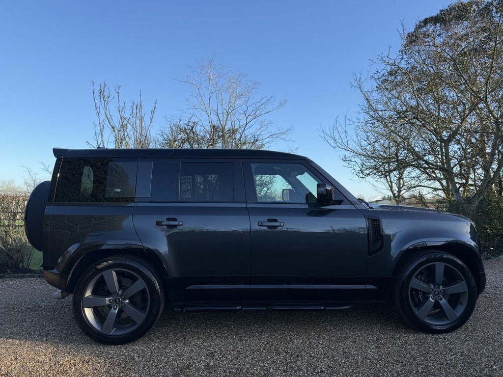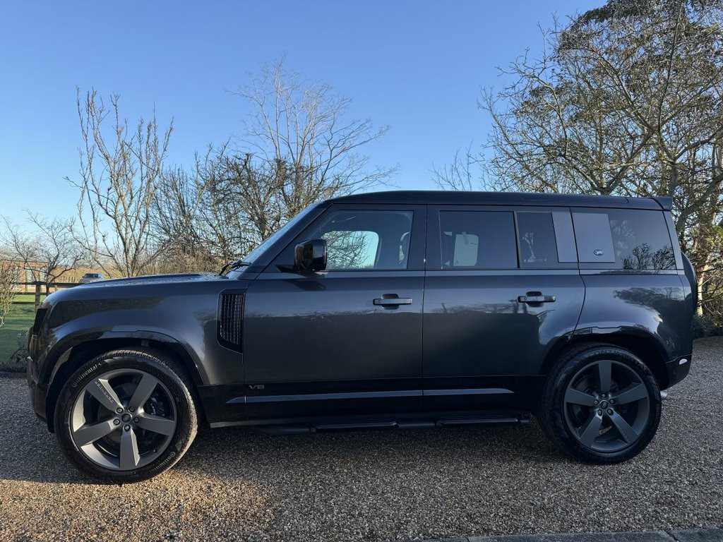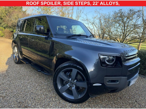 Whytehall are delighted to offer this stunning 1 owner high specification full dealer history VAT QUALIFYING DEFENDER 110 P525 V8 CARPATHIAN EDTION SUV 5DR PETROL AUTO 4WD EURO 6 (SS) (525) Factory extras include Carpathian grey metallic, gloss black contrast roof, roof spoiler and body cladding, panoramic roof with sun protection, black leather with extra leather package, 18 way hot and cold climate seats with lumbar, 40-20-40 heated rear seats with arm rest, heated steering wheel, electric steering column, ambient interior lighting, Air suspension, advance tow assist, electric deployable tow-bar, heads up display. Matrix LED signature headlights, front fog lamps, bright metal pedals, solar attenuating windscreen, privacy glass, air quality sensing, 11.4 media navigation centre with pivi pro apple car play, 360 3D surround view etc wireless charging, heated washer jets, adaptive cruise with start stop, electronic active differential with torque vectoring, Side steps, 22' alloy wheels, painted rear wheel cover, gloss tracker, carpet mats, domestic plug sockets. Stunning condition. Price includes VAT, great value if VAT registered or exporting. Part exchange welcome, same day low rate finance, global delivery available. Please call for further information.