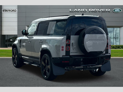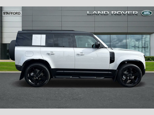 The Brand new Land Rover Defender 110 3.0 D250 MHEV X-Dynamic HSE finished in stunning Borasco Grey with a Black Contrast Roof, upgraded 22" Gloss Black alloys, and the Extended Black Exterior Pack for a commanding road presence. Here at Stafford Land Rover you will find this high-spec model features the desirable Air Suspension Pack, electrically deployable towbar, fixed side steps, classic mudflaps, and a body-coloured spare wheel cover with a matching 22" full-size spare.