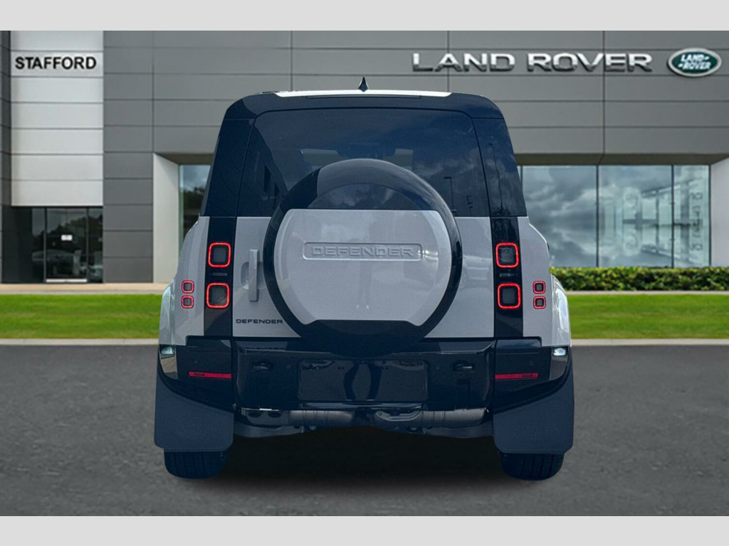 The Brand new Land Rover Defender 110 3.0 D250 MHEV X-Dynamic HSE finished in stunning Borasco Grey with a Black Contrast Roof, upgraded 22" Gloss Black alloys, and the Extended Black Exterior Pack for a commanding road presence. Here at Stafford Land Rover you will find this high-spec model features the desirable Air Suspension Pack, electrically deployable towbar, fixed side steps, classic mudflaps, and a body-coloured spare wheel cover with a matching 22" full-size spare.