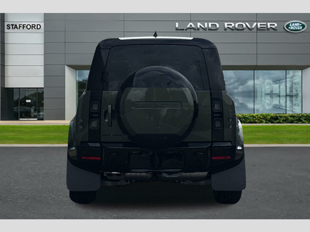 The Brand new Land Rover Defender 110 3.0 D250 MHEV X-Dynamic HSE finished in a new colour for the Defender Woolstone Green with a Black Contrast Roof, upgraded 22" Gloss Black alloys, and the Extended Black Exterior Pack for a commanding road presence. Here at Stafford Land Rover you will find this high-spec model features the desirable Air Suspension Pack, electrically deployable towbar, fixed side steps, classic mudflaps, and a body-coloured spare wheel cover with a matching 22" full-size spare.