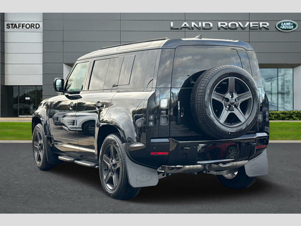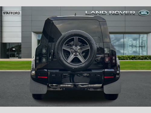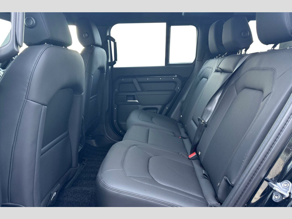 Finished in the iconic and premium Santorini Black, this Land Rover Defender 110 3.0 D250 MHEV X-Dynamic SE offers a bold, stealthy presence matched with exceptional capability. This example benefits from the sought-after Extended Black Exterior Pack, giving it a distinctive and assertive look with darkened detailing, black exterior elements and the striking 20" Style 5094 satin dark grey alloy wheels, paired with a 20" full-size spare. The body-coloured bonnet, body-coloured roof and privacy glass enhance its premium appearance, while Alpine lights, LED headlights with signature DRL, darkened LED tail lights, side-hinged tailgate and black exposed recovery eyes retain the Defender’s unmistakable character. An electrically deployable towbar adds further practicality for towing or carrying adventure equipment.