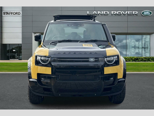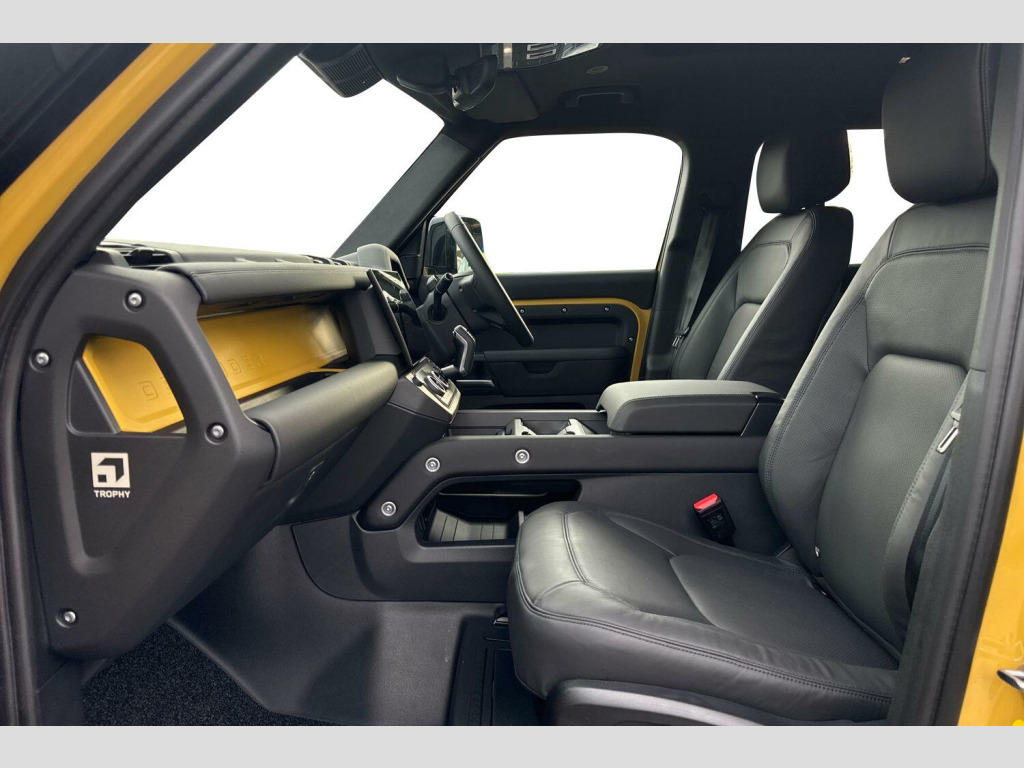 This brand new Defender 110 Trophy Edition is more than an SUV – it’s an invitation to explore without limits. Rare, distinctive and ready for adventure, it’s the ultimate choice for those who demand capability, character and modern refinement in one iconic package. Electrically Deployable Towbar, Electrically Adjustable Steering Column, 1 x USB-C - Power Only - 1 x USB-C - Power and Data in Row 1 - 2 x USB-C in Row 2 and 2 x USB-C in Row 3, 12V Power Sockets in Row 1 and Load Space, 13.1in Touchscreen, 14-Way Heated and Cooled Electric Memory Front Seats with 4-Way Manual Headrests, 2-Zone Automatic Climate Control, 20in Alloy Wheels - Style 9013 - Gloss Black, 20in Full Size Spare Wheel, 360 Degree Parking Aid, 3D Surround Camera, 40-20-40 Folding Rear Seats with Centre Armrest, ABS - Anti Lock Braking System, ACC - Adaptive Cruise Control, AHBA - Auto High Beam Assist, Adaptive Dynamics, All-Terrain Tyres, Alpine Lights, Android Auto, Apple CarPlay, Auto-Dimming Interior Rear View Mirror, Automatic Headlights and Rain Sensing Wipers, Black Brake Calipers, Black Contrast Bonnet, Black Contrast Roof, Black Contrast Signature Graphic with Interior Storage, Black Exposed Rear Recovery Eyes, Black Roof Rails, Blind Spot Assist, Brake Hold, Brake Pad Wear Indicator, CBC - Cornering Brake Control, Carpet Mats, Centre Console with Armrest, Centre High Mounted Stop Light, Configurable Cabin Lighting, Cross Car Beam in Deep Sandglow Yellow, Customer Configurable Autolock, DSC - Dynamic Stability Control, Dark Rear Scuff Plate, Darkened LED Tail Lights, Digital Audio Broadcast Radio - DAB, Driver Attention Monitor, Driver Condition Monitor, Durable Rubber Cabin Flooring, Durable Rubber Loadspace Flooring, EBA - Emergency Brake Assist, EBD - Electronic Brake-Force Distribution, EPAS - Electric Power Assisted Steering, ETC - Electronic Traction Control, Electric Cabin Pre-conditioning, Electric Parking Brake, Electric Windows with One-Touch Open-Close and Anti-Trap, Electronic Air Suspension, Emergency Braking, Follow Me Home Lighting, Footwell Lights - Front, Front Airbags with Passenger Seat Occupant Detector, Front Fog Lights, Front Passenger Seat ISOFIX, Gloss Black Front Undershield, Gloss Black Wheel Arch Protection, Glovebox Storage, HDC - Hill Descent Control, Headlining - Ebony Morzine, Heated Electric Power Fold Door Mirrors with Approach Lights and Auto-dimming Driver Side, Heated Rear Window with Timer, Heated Windscreen, Hill Launch Assist, Illuminated Metal Treadplates with Trophy Edition Branding, Interactive Driver Display, Intrusion Sensor, Keyless Entry, LED Headlights with Signature DRL, Lane Keep Assist, Loadspace Cover, Loadspace Hooks, Locking Wheel Nuts, Low Traction Launch, Manually Adjustable Steering Column, Meridian Sound System, No Flat Load Floor Storage, Non Smokers Pack, Online Pack with Data Plan, Pivi Pro - Connected, Power Operated Child Locks, Privacy Glass, Puddle Lights, Push Button Start, RSC - Roll Stability Control, Rear Collision Monitor, Rear Fog Lights, Rear ISOFIX, Rear Reading Lights, Rear Traffic Monitor, Rear Wash Wiper, Remote, Resist Gearshift, Seat Belt Reminder, Seats - Rear Centre Head Restraint, Secure Tracker Pro, Side-Hinged Tailgate, Sliding Panoramic Roof, Spare Wheel Lock, Standard Interior, Standard Non-Leather Steering Wheel, Standard Seating Configuration, Standard Tail Door, Sun Visors - Illuminated Vanity Mirrors, TPMS - Tyre Pressure Monitoring System, TSA - Trailer Stability Assist, Terrain Response, Traffic Sign Recognition and Adaptive Speed Limiter, Trip Computer, Trophy Edition Badge, Trophy Edition Bonnet Decal, Twin Front Cupholders, Twin Speed Transfer Box - High-Low Range, Wireless Device Charging